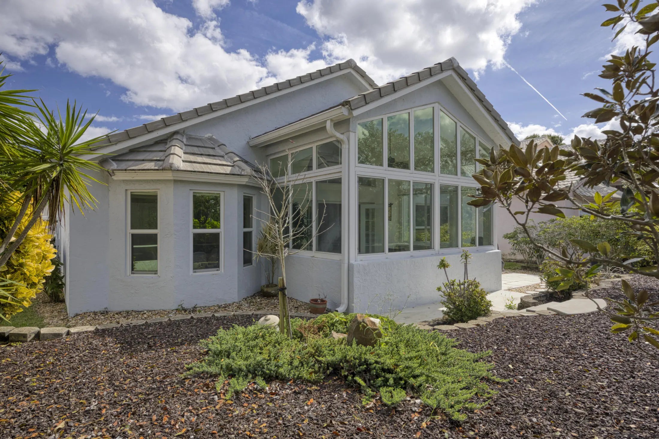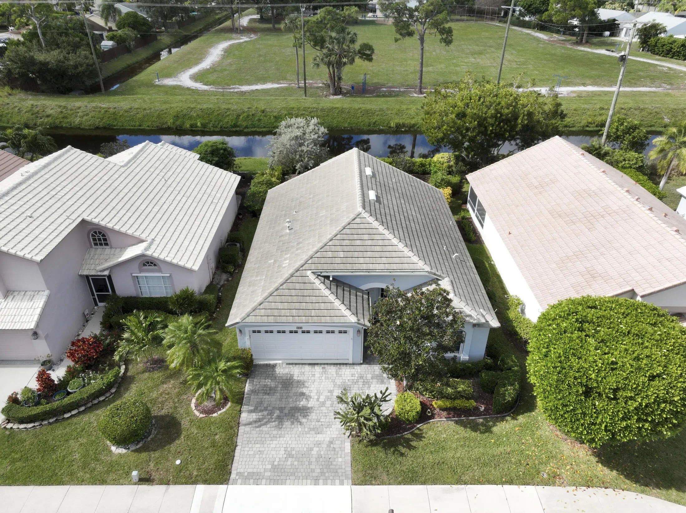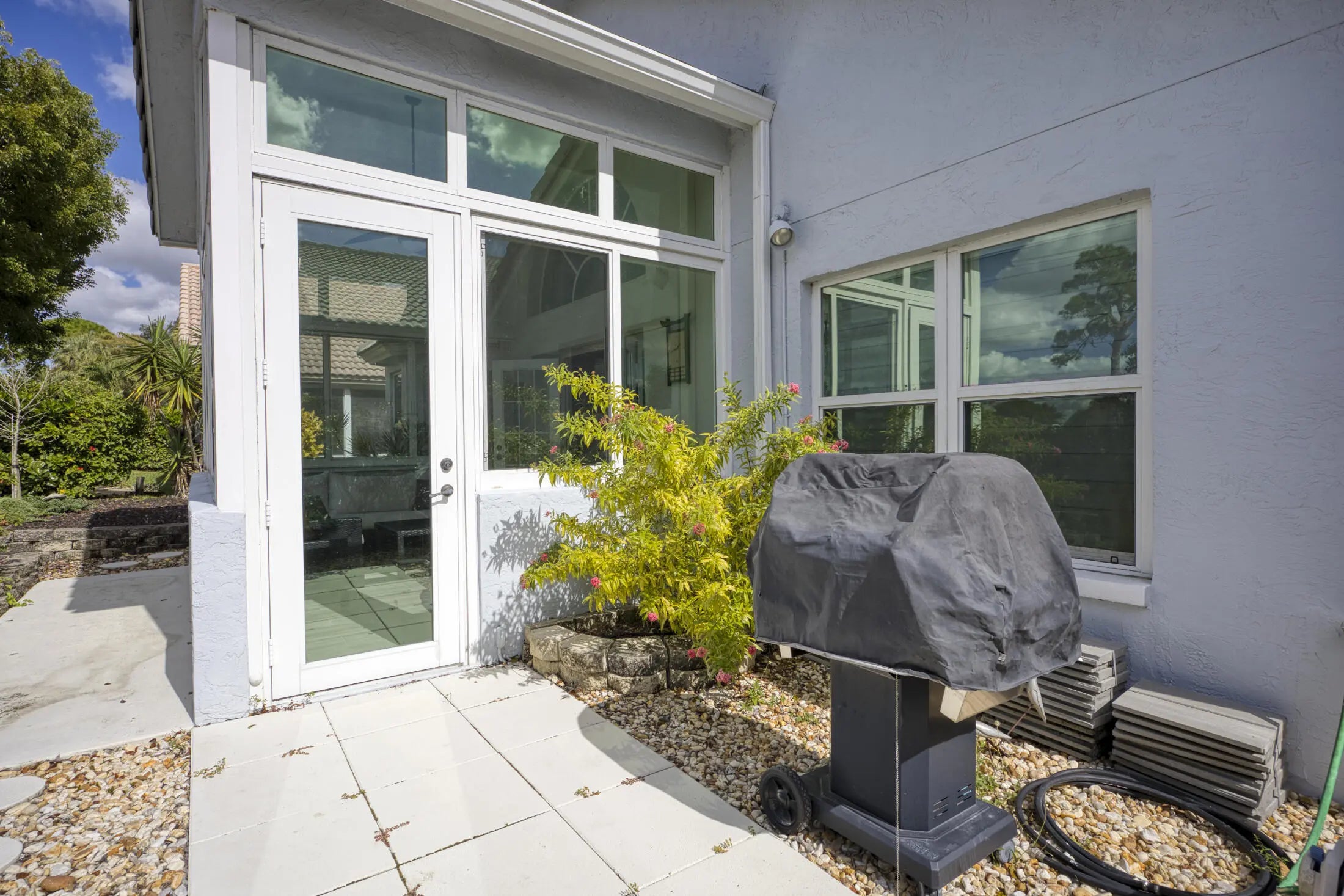 Come see this light and bright, one-story CBS home in the gated community of Egret Cove. This home features impact windows throughout, a new roof (2022), A/C (2023), and beautiful French doors that lead into a Sunroom with Impact glass and custom electric shades offering peace of mind and energy efficiency. The spacious kitchen is perfect for cooking and entertaining, complete with stainless steel appliances, a natural gas stove, Silestone countertops, a pantry, and a cozy breakfast nook overlooking in the backyard. There is also a natural gas hookup for your grill. This remodeled home offers a fantastic split floor plan with white porcelain tile in the living areas, both guest bedrooms, and carpet in the primary bedroom.