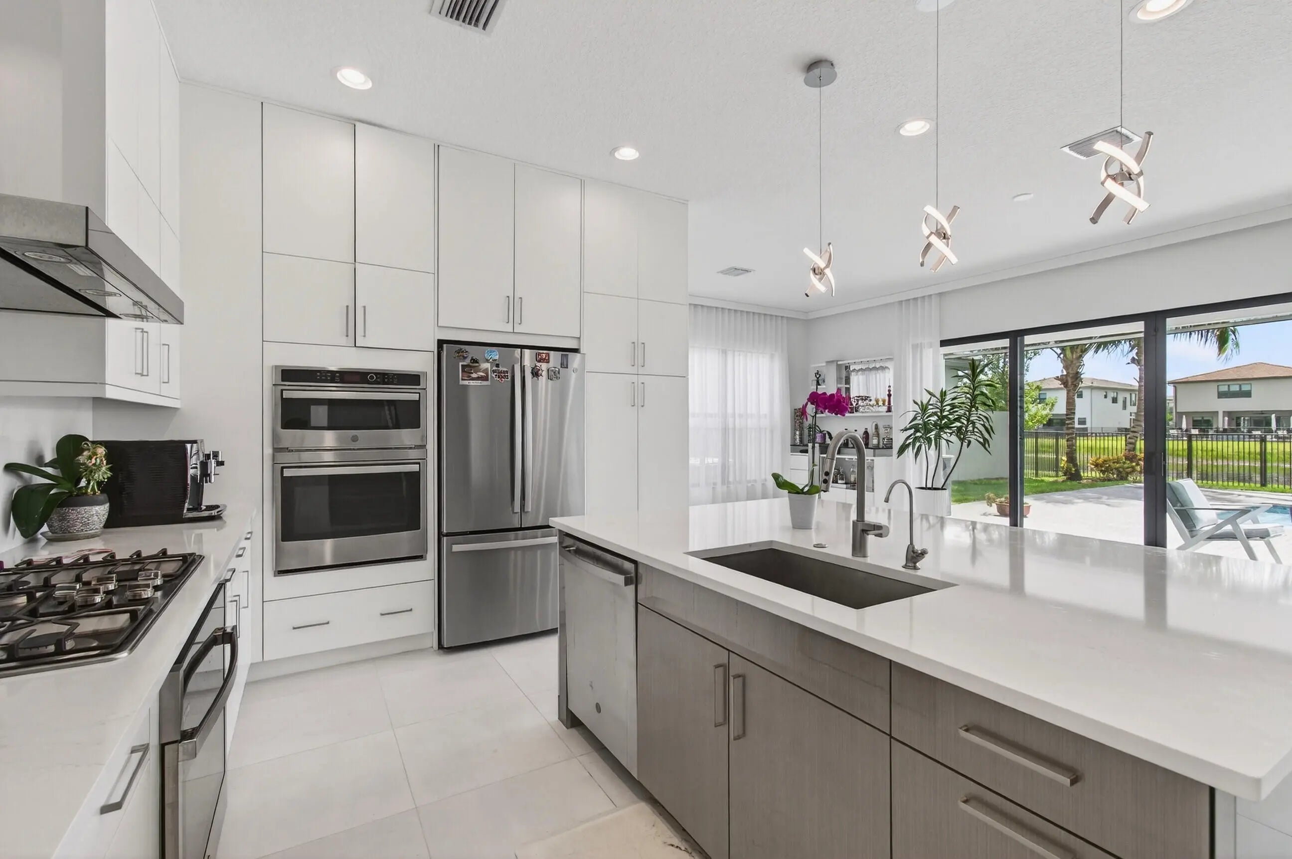 Must-see 5BR, 5BA lakefront residence in the prestigious guard-gated community of Lotus, Boca Raton. Built in 2022, this stunning two-story home offers 3,344 sq. ft. of refined living space with high-end finishes and an open-concept design that defines luxury South Florida living. The gourmet kitchen features a double-oven setup and flows seamlessly into expansive living and dining areas. A first-floor bedroom is perfect for guests. A spacious upstairs loft adds flexibility, while the primary suite boasts a private French-door balcony with a retractable screen overlooking the lake. Step outside to an incredible outdoor kitchen with retractable screen, a large pool and jacuzzi, and breathtaking lake views—ideal for entertaining. Residents enjoy world-class amenities, including a state-of-the-art fitness center, resort-style pools, a clubhouse, indoor basketball, an on-site restaurant, tennis and pickleball courts, a playground, a splash pad, and more.
