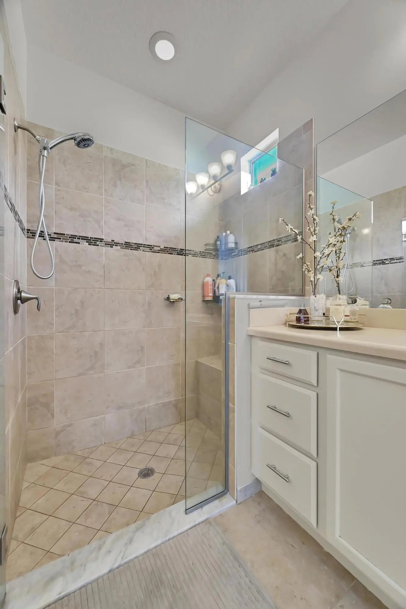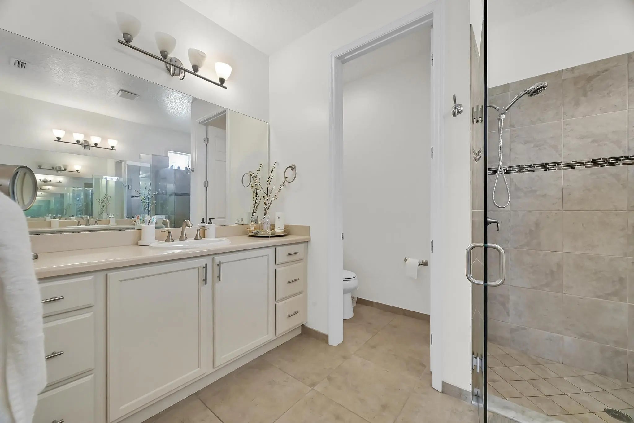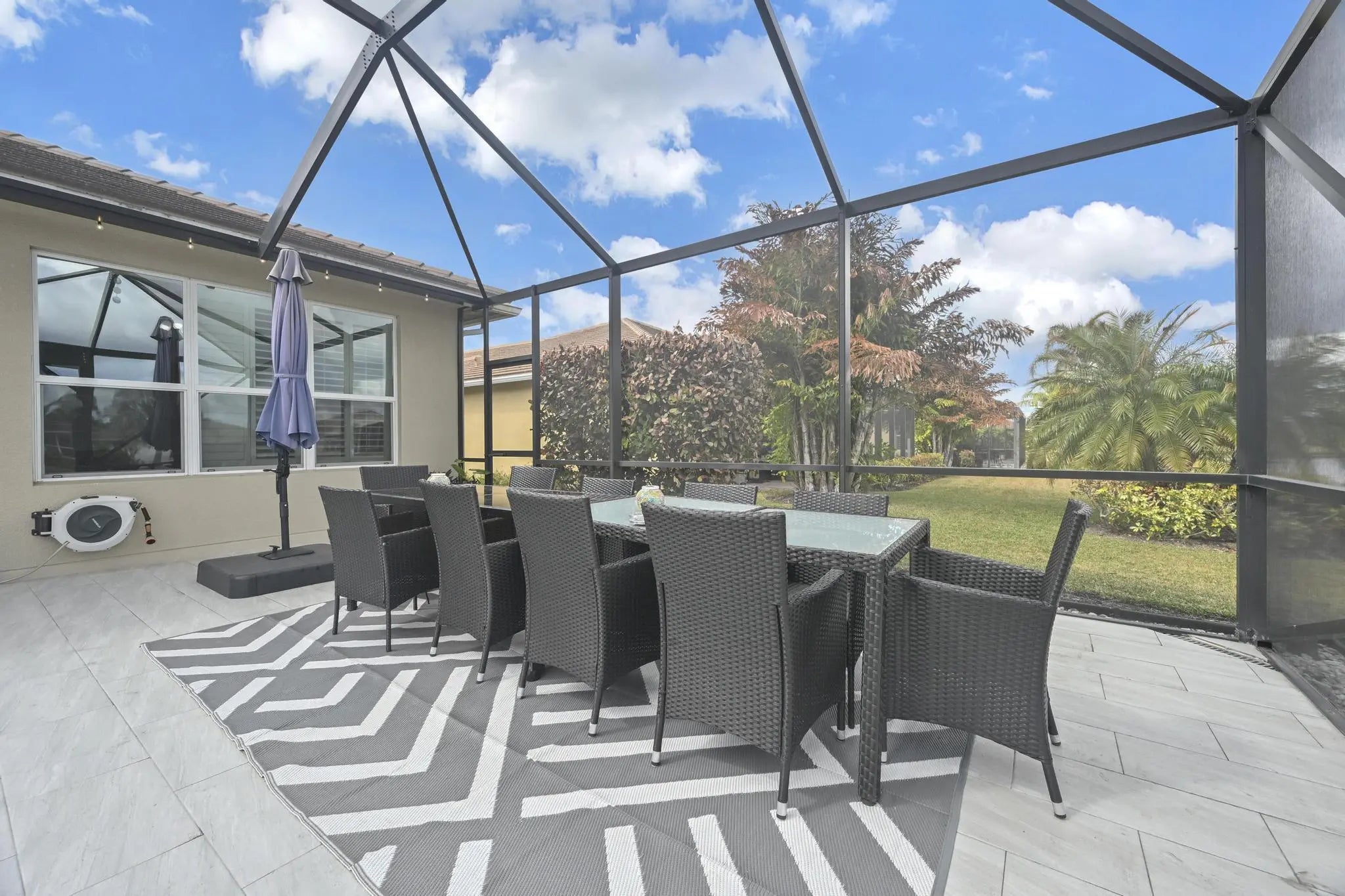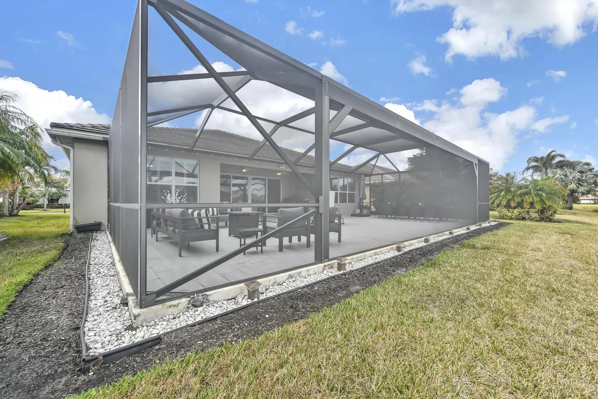 Welcome home to panoramic views and effortless living in this pristine lakefront residence located in a desirable 55+ community. This beautifully designed 3-bedroom + den, 3-bathroom home offers the perfect blend of comfort, space, and low-maintenance luxury. Whether you need room for visiting family, hobbies, or a dedicated home office, this flexible layout delivers. Featuring two spacious primary suites, each with walk-in closets and private baths with sleek glass shower doors — ideal for hosting guests with comfort and privacy. The kitchen shines shaker cabinetry, crown molding, an upgraded backsplash, touchscreen microwave, double oven and a Samsung Bespoke 4-Door Flex refrigerator — stylish and functional for everyday living or entertaining. Tile flooring flows throughout the home, complemented by sparkling chandeliers and a beautiful built-in fireplace in the family room. Step outside to your extended, tiled lanai with breathtaking, unobstructed panoramic lake views and a relaxing fountain the perfect setting for morning coffee, sunset watching, or simply enjoying the peaceful surroundings. Impact windows provide added peace of mind, and the home is wired for an electric vehicle charger for modern convenience. Resort-style living, stunning views, and a home designed for the next chapter this is more than a home, it's a lifestyle. So many ways to enjoy this open, light-filled space. This isn't just a home... it's a lifestyle.