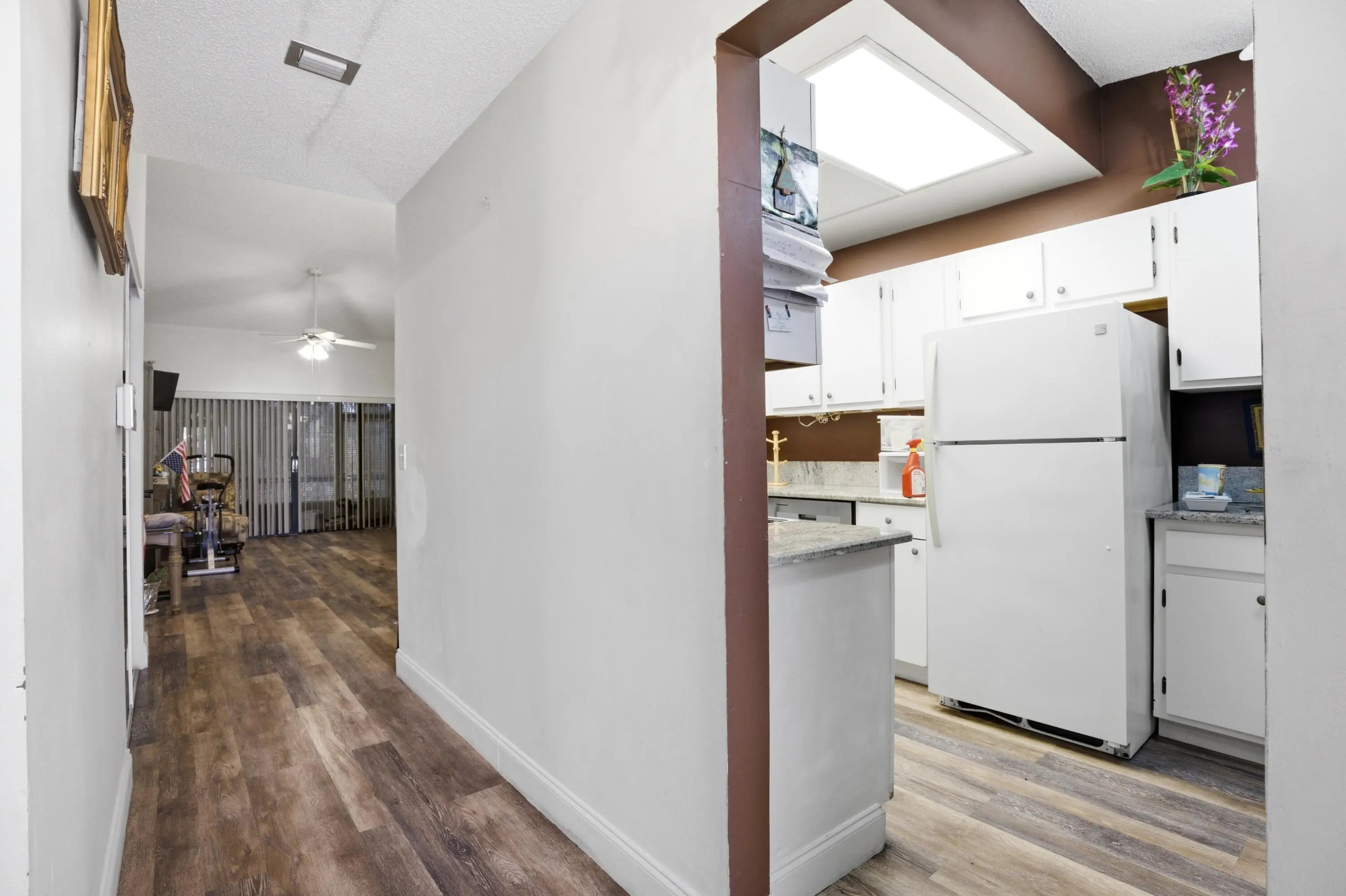 Move-in ready in a desirable 55+ community! Conveniently located near the Florida Turnpike, Wellington Mall, and major hospitals. This charming 2-bedroom, 2-bathroom villa sits on a quiet street and is ready for its new owner. Both bathrooms have been beautifully updated and brand-new flooring installed throughout the entire home. Enjoy the enclosed patio. The community offering two clubhouses, a variety of social and fitness activities, two pools, a hot tub, tennis courts, pickleball courts, and so much more.