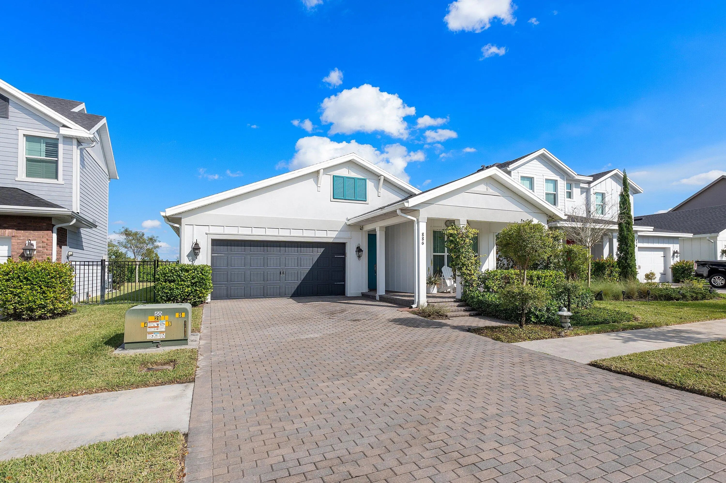 Charming and chic! This 3 bedroom,2 bath home offers the perfect blend of starter-home ease with elevated style. Thoughtfully upgraded lighting adds a designers touch throughout ,while nearby green space creates a serene, sought-after setting. Granite countertops, stainless steel appliances and an updated washer and dryer. Custom closet in the owners suite and screen patio. All this in the highly sought after Arden Community. Live here and you'll enjoy 3 resort style pools, hot tub and cabanas. Weekly food trucks and lawn events. 5 new pickleball courts,tennis and basketball. A soccer field and a 5 acre working farm that you receive a share of. A state of the art fitness center, 20 miles of fitness trails, a zip line, dog park and playgrounds