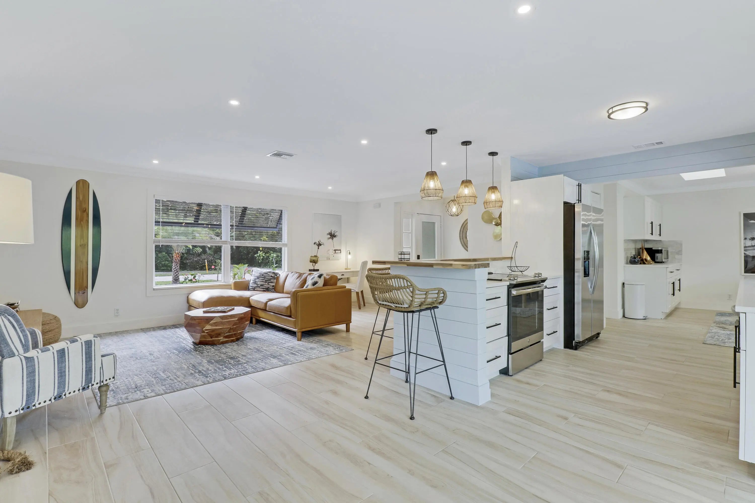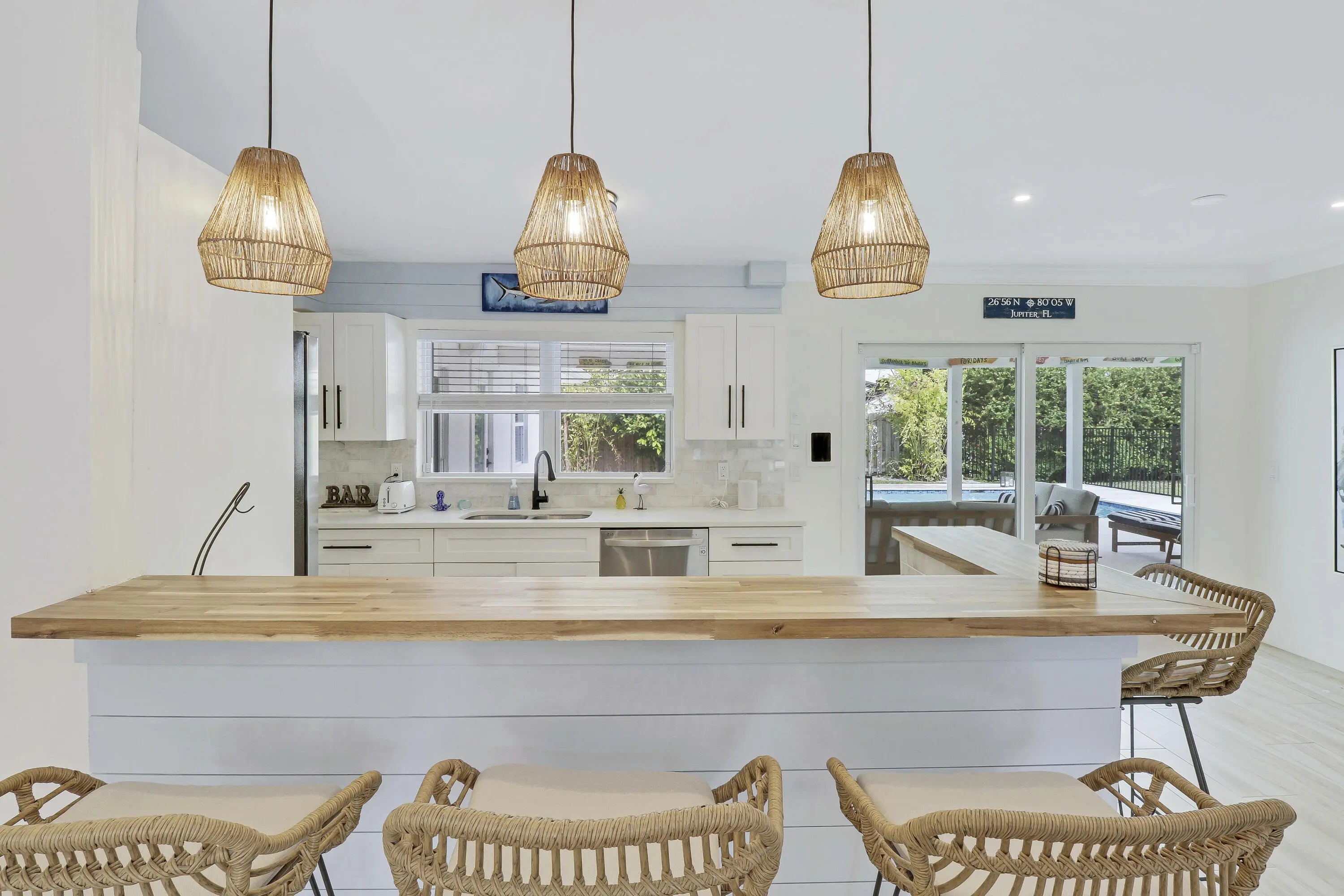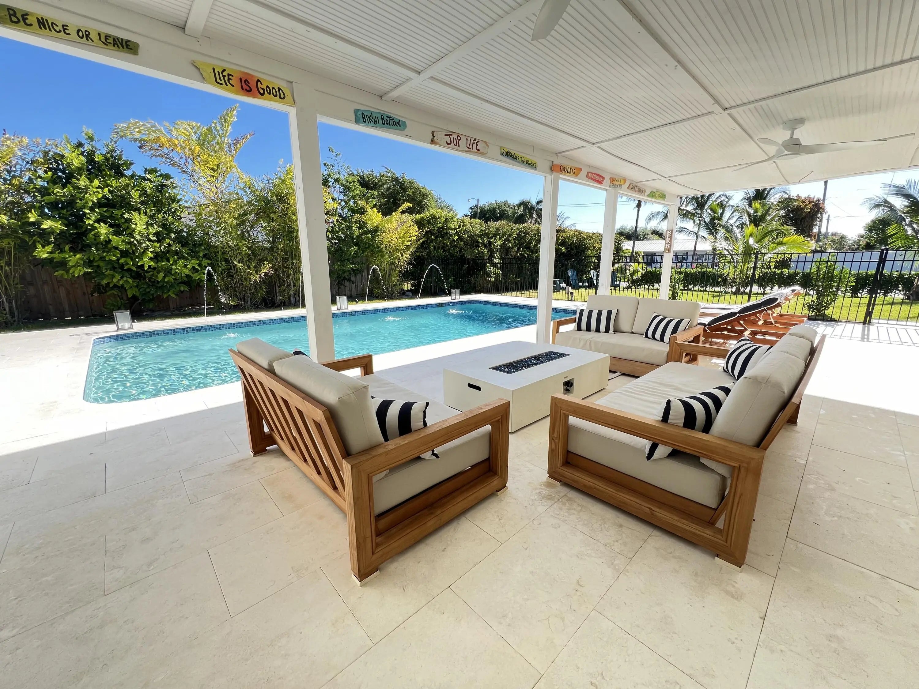 Discover refined coastal luxury in this fully furnished, upgraded 4 bedroom, 2 bathroom residence in the heart of Jupiter. Set on a private sunny fully fenced corner lot situated along prestigious W Riverside Drive, it is ideal for anyone looking to embrace the premier Jupiter lifestyle. Relax by your heated saltwater pool with shell white limestone pool deck, unwind under the covered lanai with a fire pit, or entertain at the custom tiki bar featuring an outdoor TV. This prime location--just minutes from pristine beaches, the iconic Jupiter Inlet and Lighthouse, and vibrant Love Street with acclaimed restaurants and upscale shops--defines luxury living at its finest!