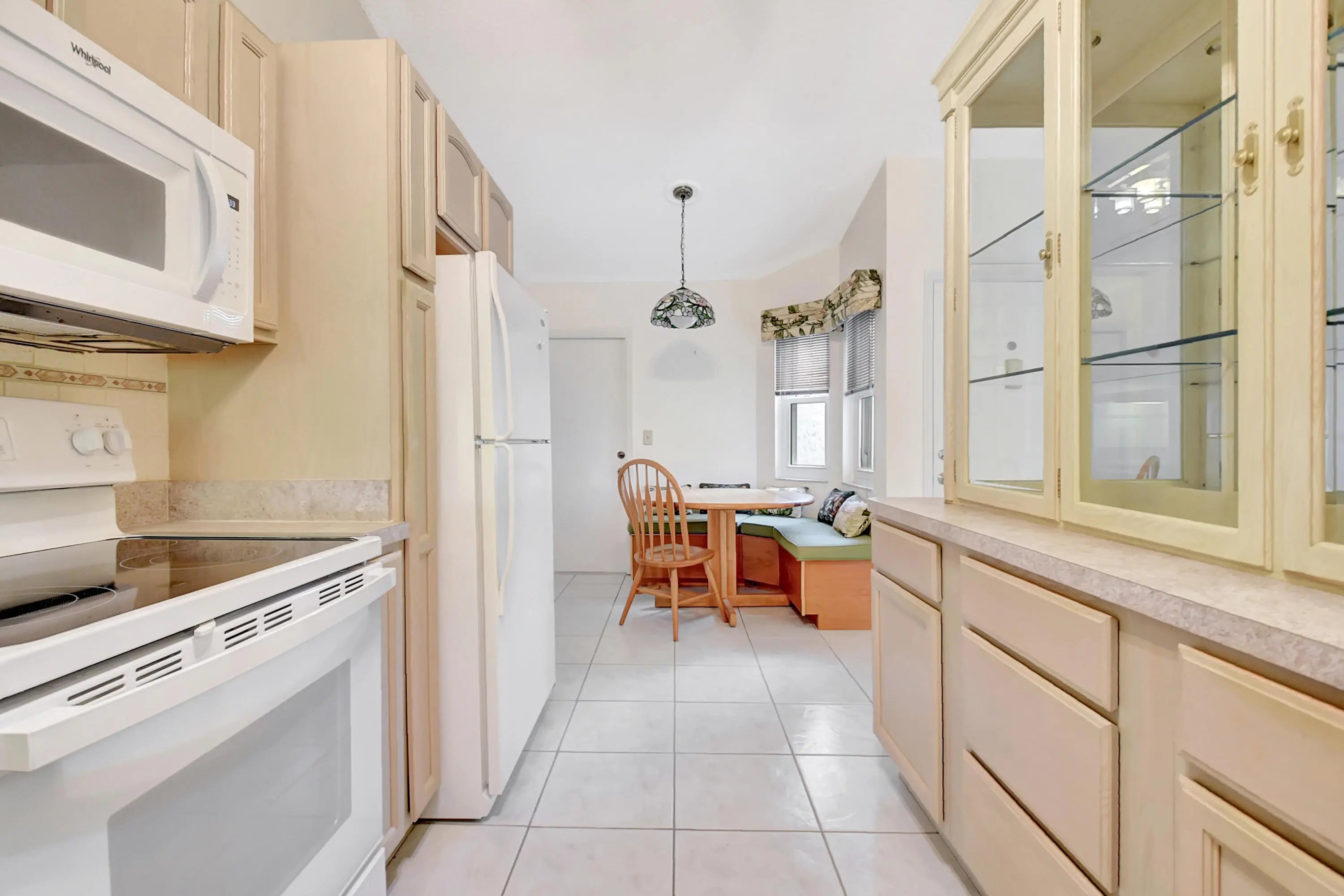 Two Bedroom two bath villa with a garage. Great location! Tile floors throughout create a clean, modern aesthectic, while the vaulted ceilings enhance the sense of openness and airness. The eat-in kitchen provides ample space for meal proparation and casual dining. All the kitchen cabinets have pull outs and lots of drawers. The primary bedroom bosts a large walk-in closet and a walk-in shower, offering privacy and convenience. The additional bedroom can be used as an office of multi-purpose room. The open front patio & the screened and covered rear patio offer opportunities for outdoor relaxation & enjoyment. Community amenities, include. clubhouse, pool, bocce court, tennis court, and clubs. Hoa includes exterior maintenance, roof & building painting along with cable & internet.