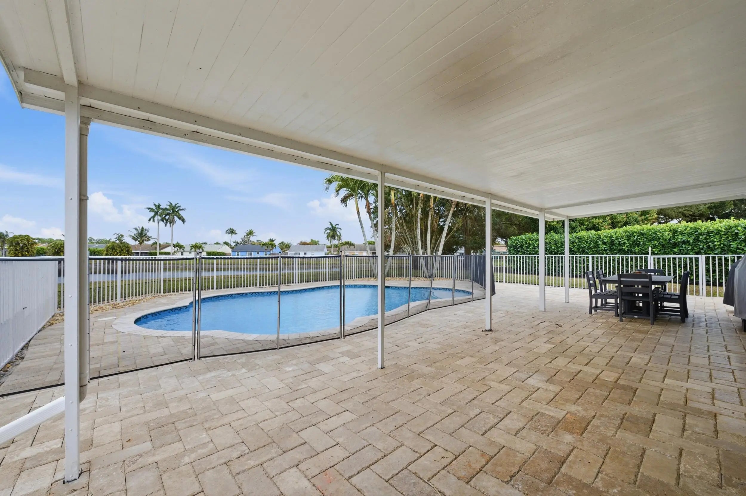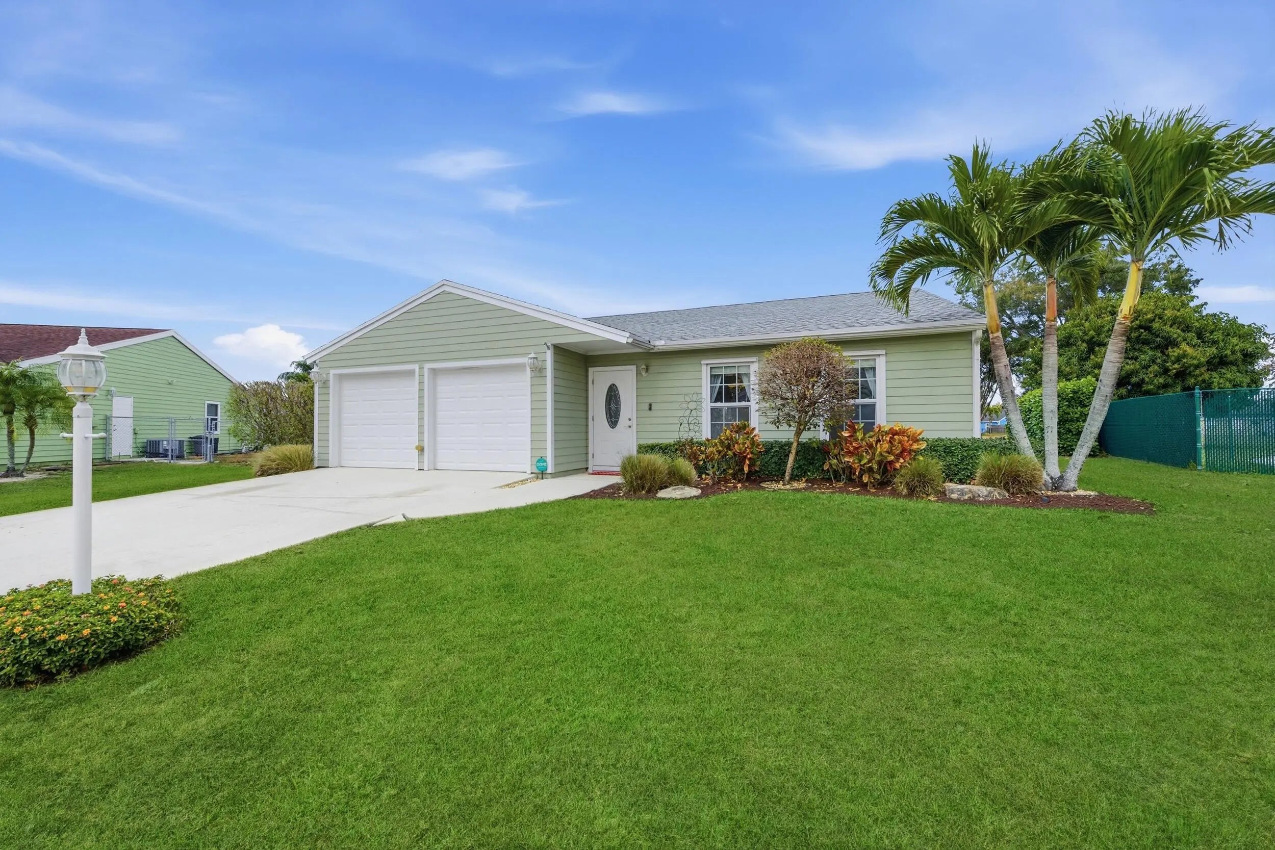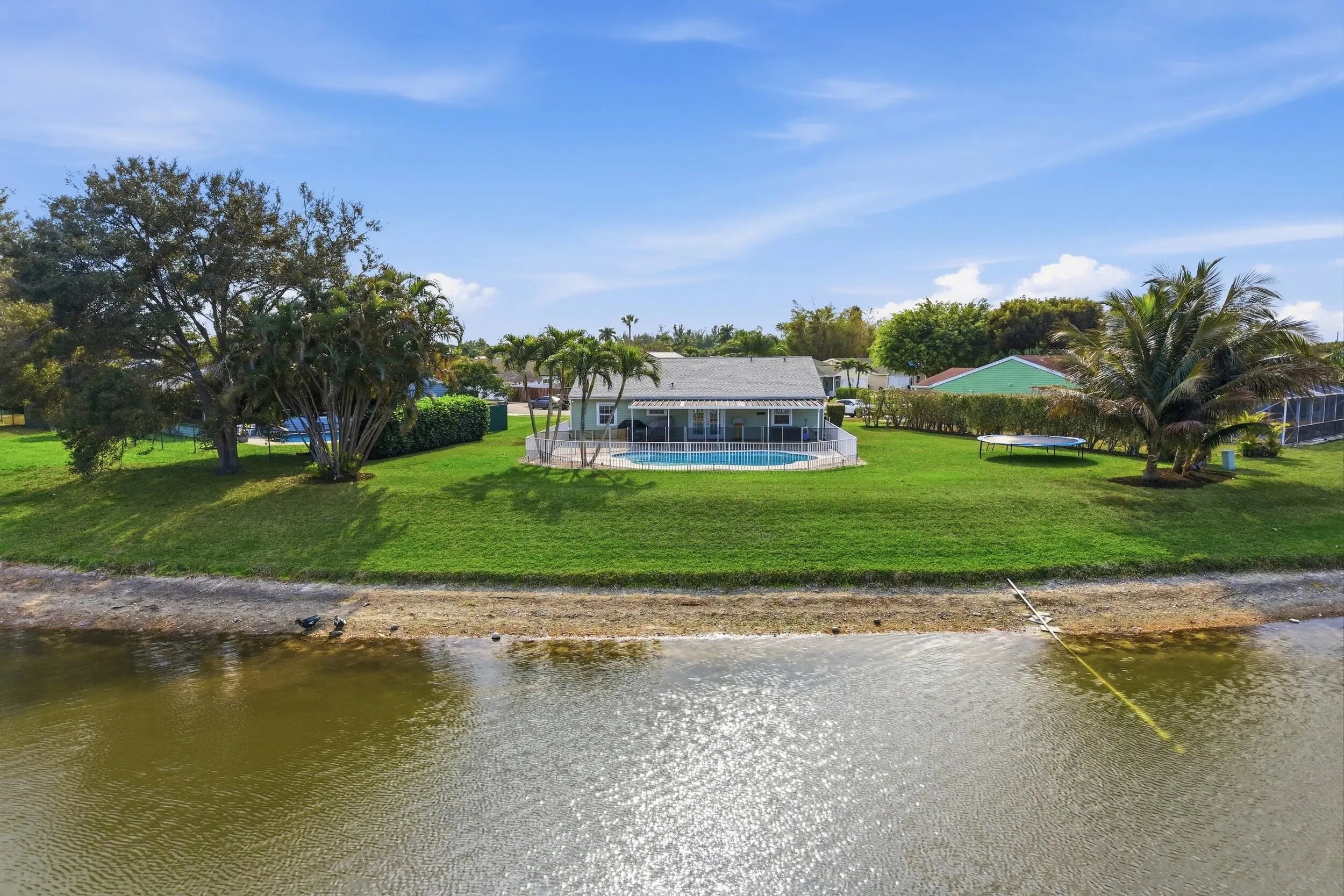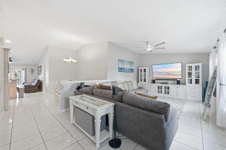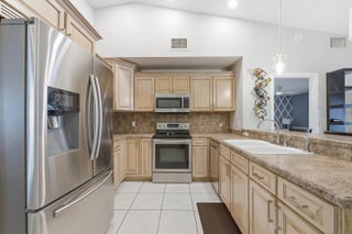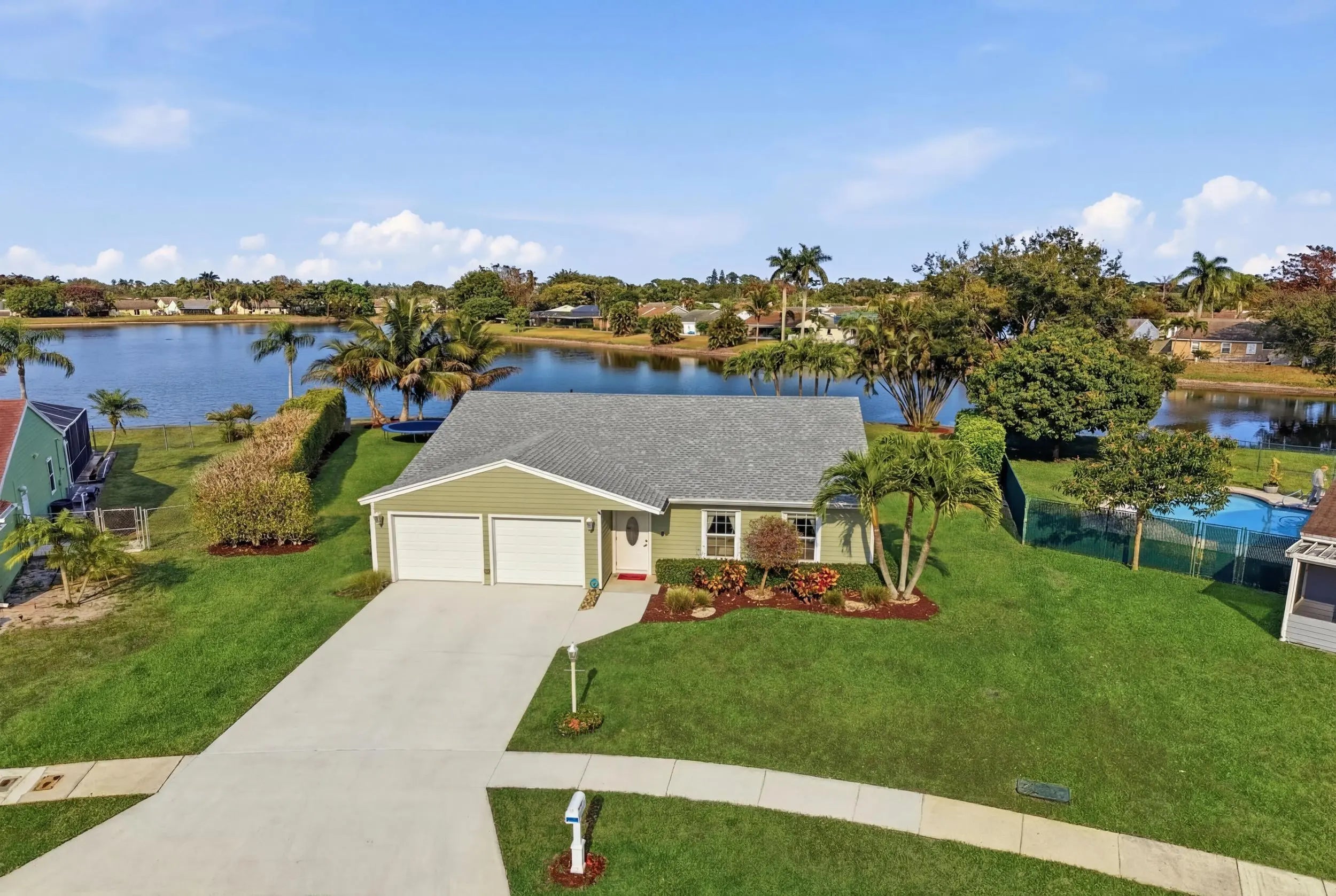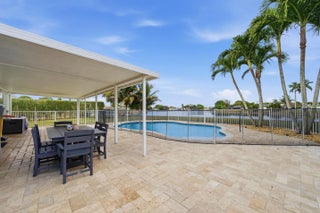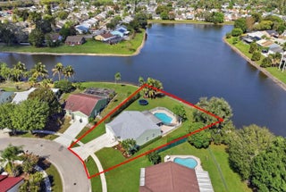 Welcome home to this beautifully updated three-bedroom, two-bathroom, two-car garage lakefront pool home, perfectly positioned on one of the largest lots in the neighborhood. The property offers extremely low HOA fees and is located within one of the county's top-rated school districts. Significant recent upgrades provide true peace of mind, including a brand-new roof and A/C system (2025) both with transferable warranties, a resurfaced pool (2023), a new hurricane-rated garage door, and fully remodeled bathrooms. A professional irrigation system draws water directly from the lake, helping to keep monthly water costs low. Inside, soaring cathedral ceilings and updated fixtures create a bright, open atmosphere throughout. The kitchen is thoughtfully designed with solid wood shaker cabinetry with crown molding, and updated stainless steel Samsung appliances. Additional features include a dual oversized sink with updated hardware and disposal, updated countertops with bar-top seating and pendant lighting, and stunning views of the pool and lake. The primary suite offers fresh paint, updated trim and fixtures, a massive walk-in closet, and tranquil water views. The en-suite bathroom is finished with a solid wood vanity topped with porcelain countertops and a floor-to-ceiling tiled walk-in shower with built-in shelving. Secondary bedrooms are generously sized and include wood-look flooring and built-in closets, while the renovated guest bathroom showcases quartz countertops and a fully tiled shower/tub combination with frameless glass. Step outside to an expansive brick-paver patio and covered lanai overlooking a large freeform salt-chlorinated pool. The fully fenced backyard, which sits on the second-largest lot in the neighborhood, offers one of the community's most desirable lake views and is ideal for both relaxation and entertaining. Conveniently located in a well-established area of Lake Worth, this central Palm Beach County home offers quiet residential streets, nearby shopping and dining, easy access to major roadways, and close proximity to Okeeheelee Park, local golf courses, and the Atlantic beaches.