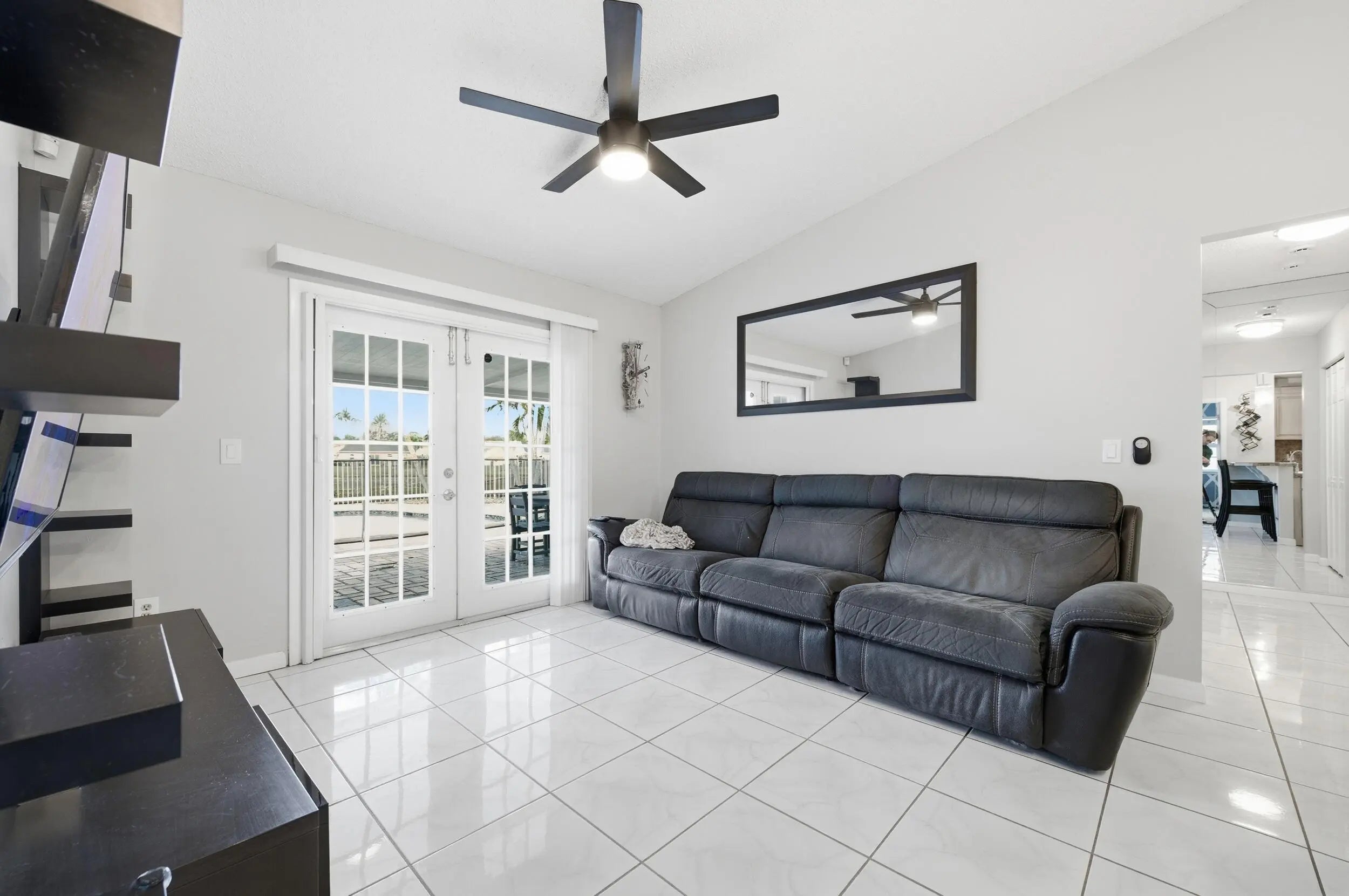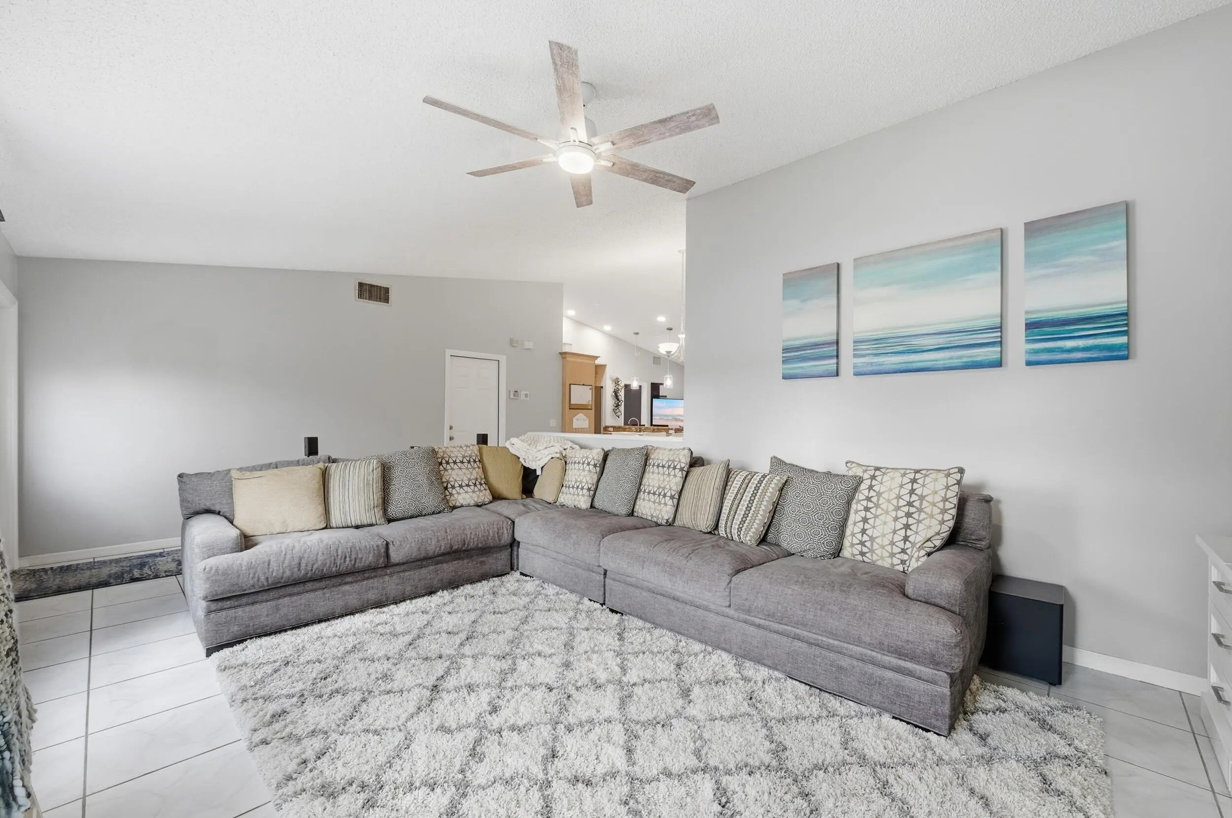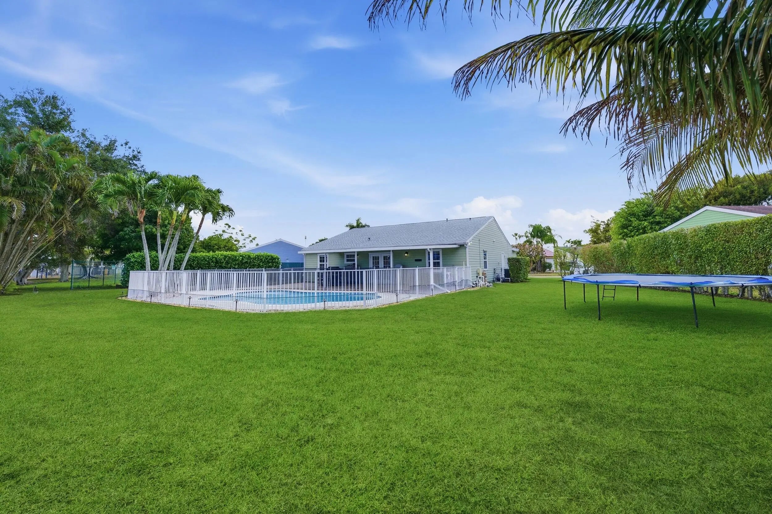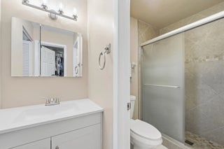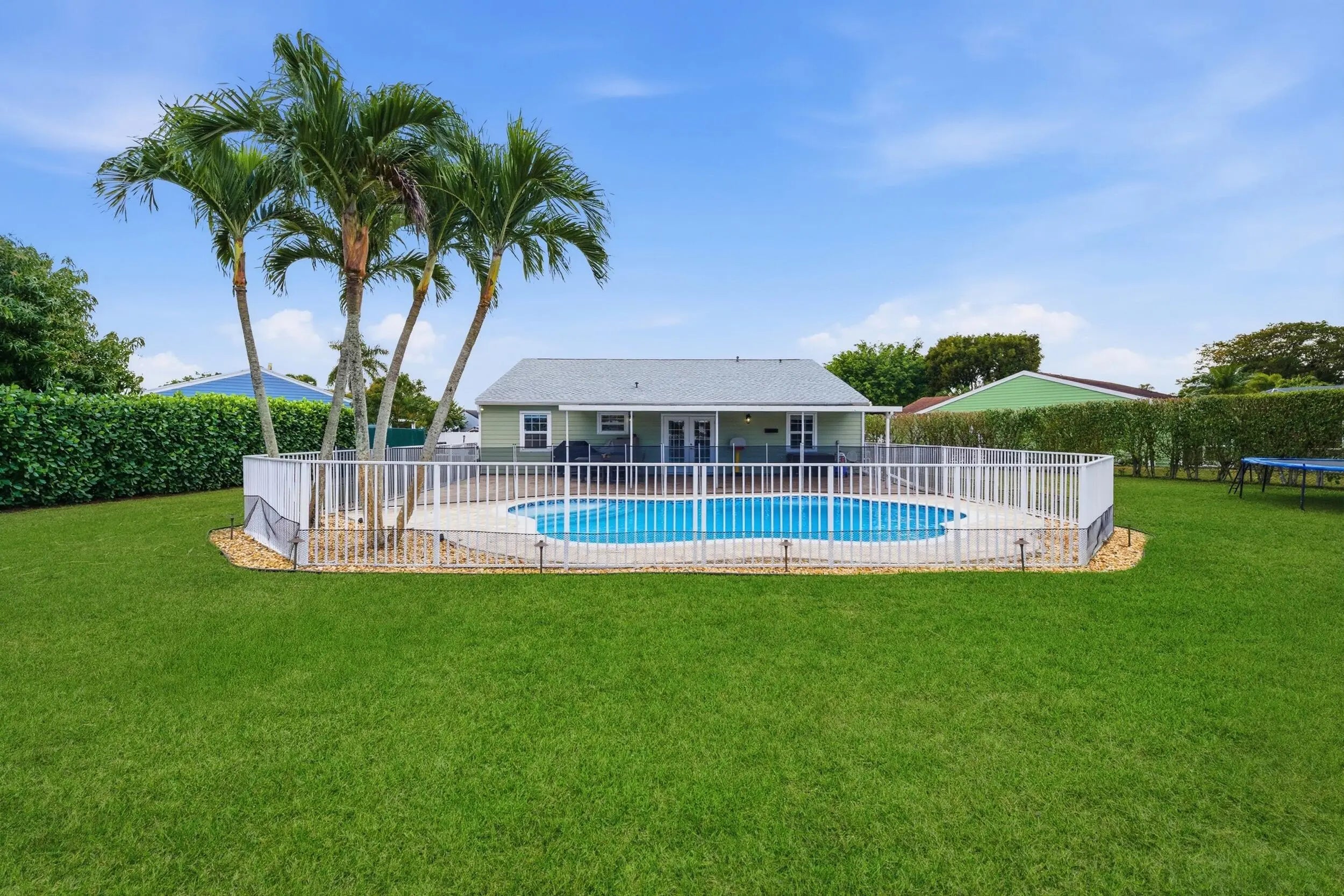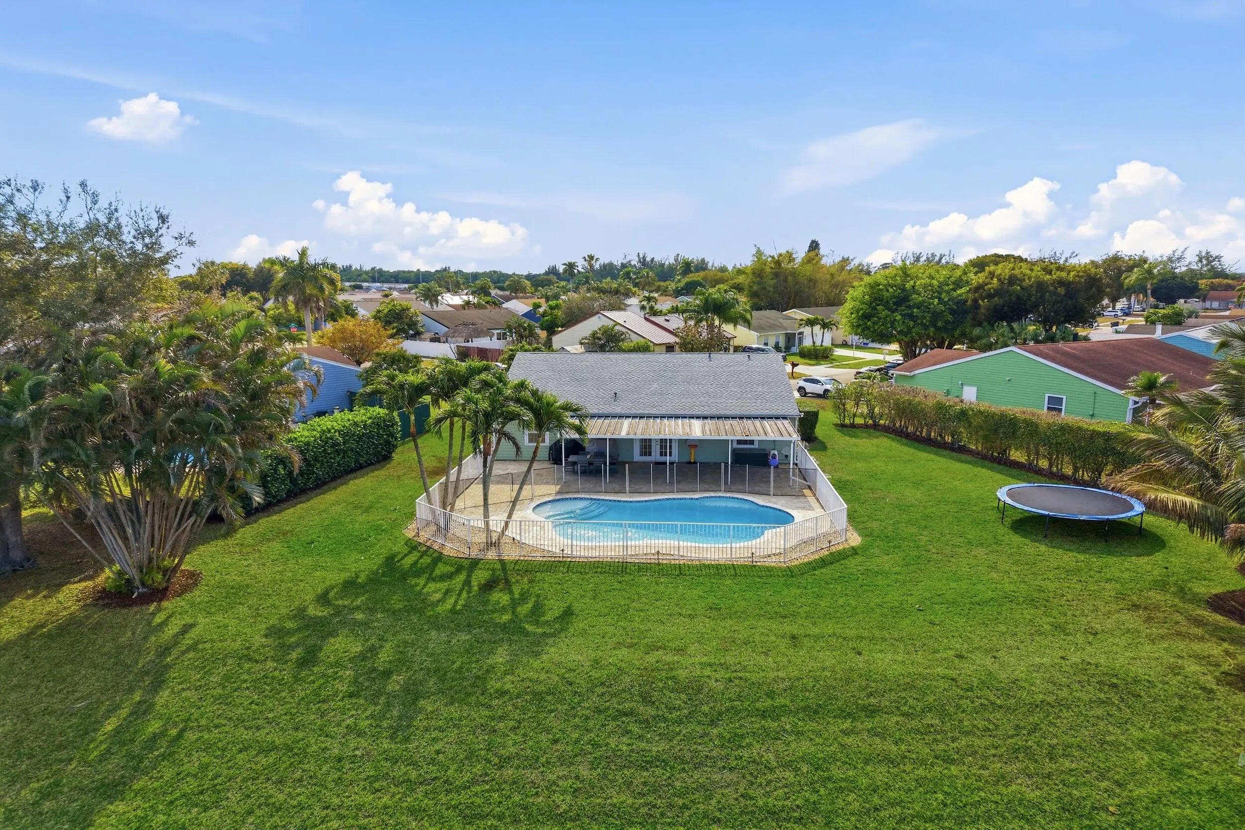 Welcome home to this beautifully updated three-bedroom, two-bathroom, two-car garage lakefront pool home, perfectly positioned on one of the largest lots in the neighborhood. The property offers extremely low HOA fees and is located within one of the county's top-rated school districts. Significant recent upgrades provide true peace of mind, including a brand-new roof and A/C system (2025) both with transferable warranties, a resurfaced pool (2023), a new hurricane-rated garage door, and fully remodeled bathrooms. A professional irrigation system draws water directly from the lake, helping to keep monthly water costs low. Inside, soaring cathedral ceilings and updated fixtures create a bright, open atmosphere throughout. The kitchen is thoughtfully designed with solid wood shaker cabinetry with crown molding, and updated stainless steel Samsung appliances. Additional features include a dual oversized sink with updated hardware and disposal, updated countertops with bar-top seating and pendant lighting, and stunning views of the pool and lake. The primary suite offers fresh paint, updated trim and fixtures, a massive walk-in closet, and tranquil water views. The en-suite bathroom is finished with a solid wood vanity topped with porcelain countertops and a floor-to-ceiling tiled walk-in shower with built-in shelving. Secondary bedrooms are generously sized and include wood-look flooring and built-in closets, while the renovated guest bathroom showcases quartz countertops and a fully tiled shower/tub combination with frameless glass. Step outside to an expansive brick-paver patio and covered lanai overlooking a large freeform salt-chlorinated pool. The fully fenced backyard, which sits on the second-largest lot in the neighborhood, offers one of the community's most desirable lake views and is ideal for both relaxation and entertaining. Conveniently located in a well-established area of Lake Worth, this central Palm Beach County home offers quiet residential streets, nearby shopping and dining, easy access to major roadways, and close proximity to Okeeheelee Park, local golf courses, and the Atlantic beaches.