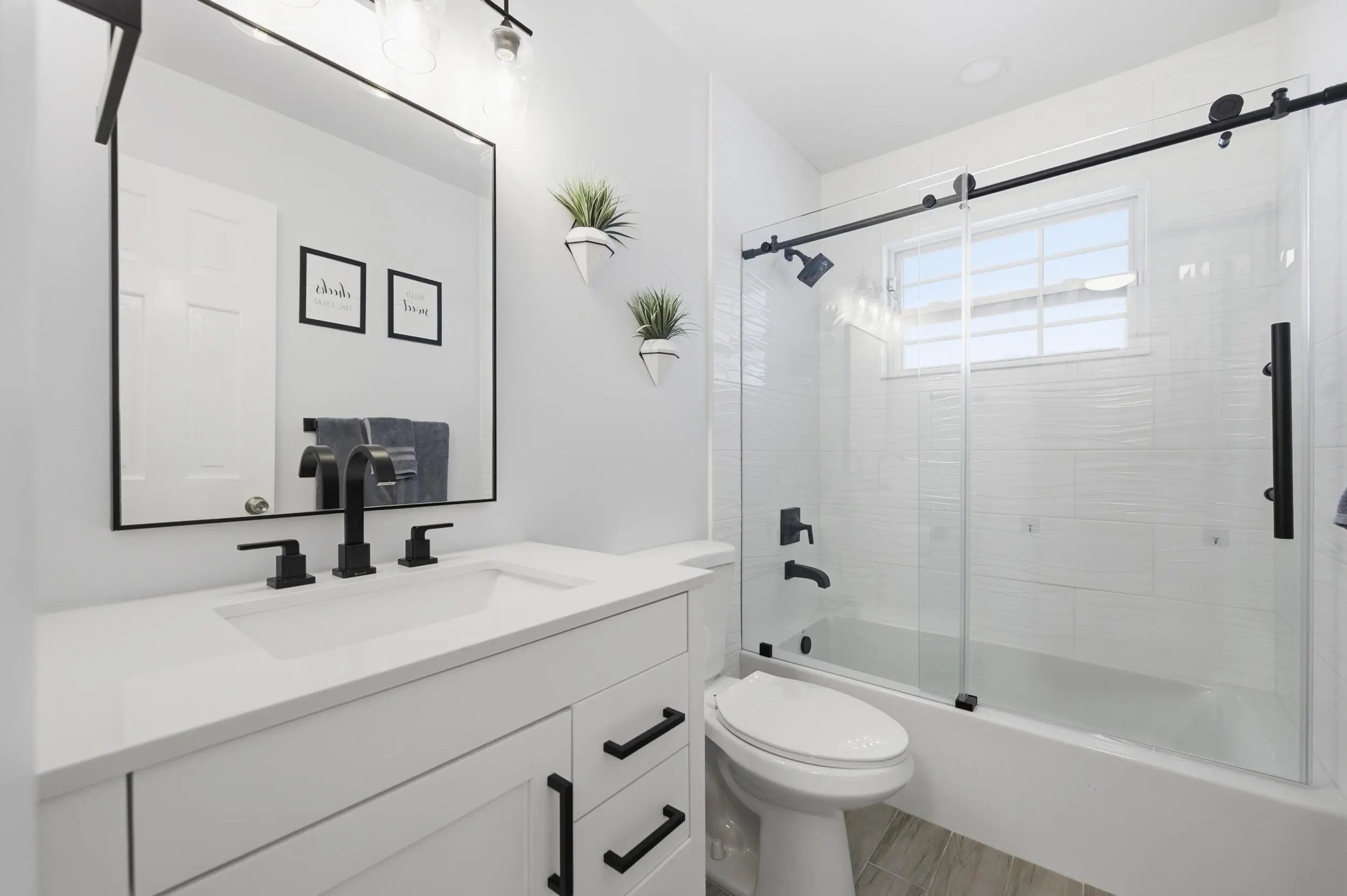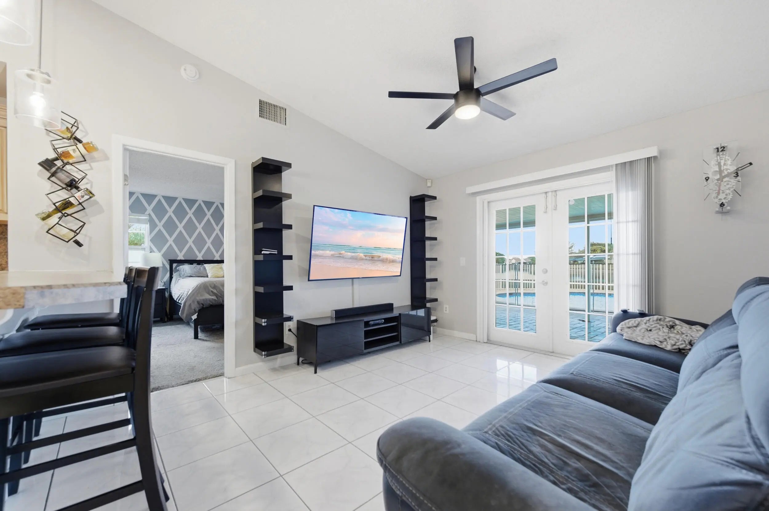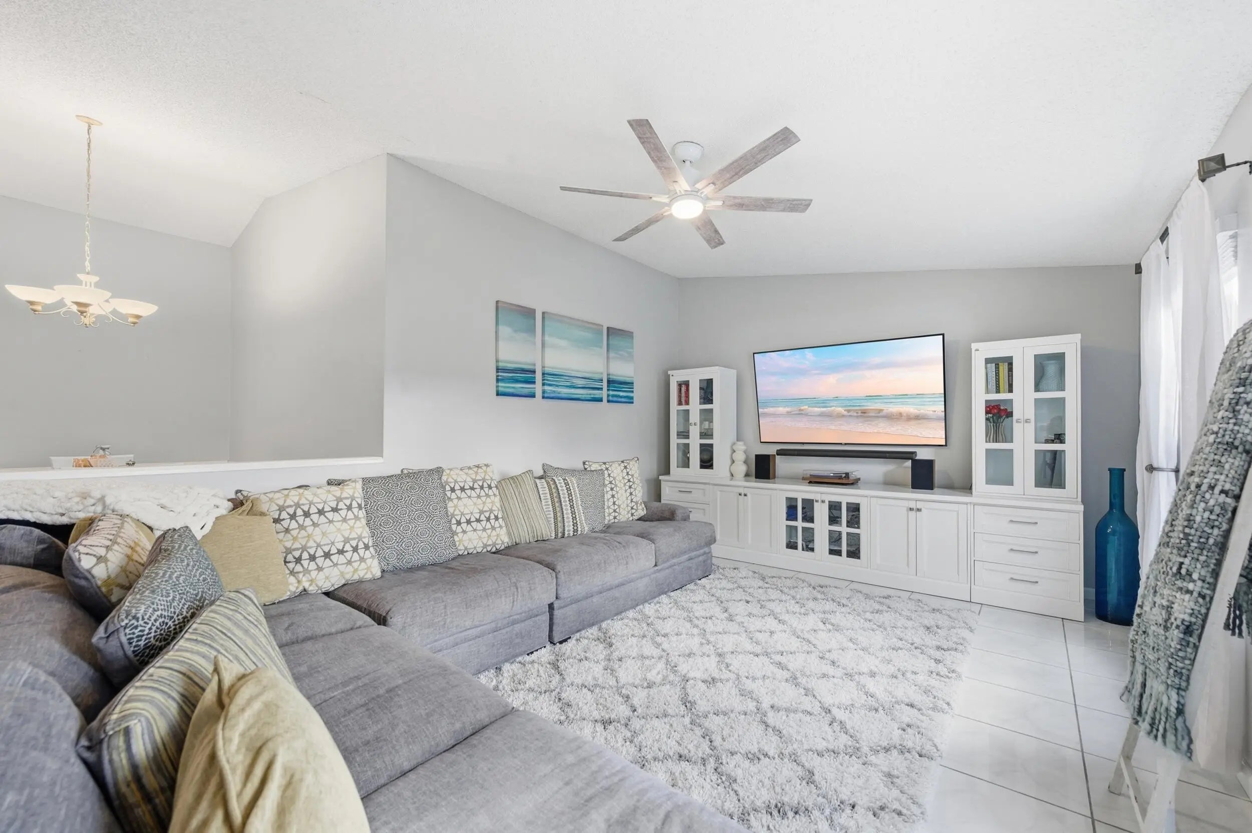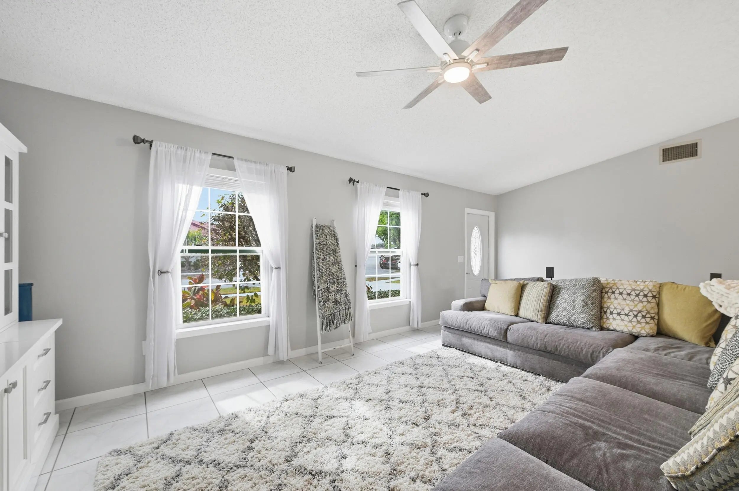 Welcome home to this beautifully updated three-bedroom, two-bathroom, two-car garage lakefront pool home, perfectly positioned on one of the largest lots in the neighborhood. The property offers extremely low HOA fees and is located within one of the county's top-rated school districts. Significant recent upgrades provide true peace of mind, including a brand-new roof and A/C system (2025) both with transferable warranties, a resurfaced pool (2023), a new hurricane-rated garage door, and fully remodeled bathrooms. A professional irrigation system draws water directly from the lake, helping to keep monthly water costs low. Inside, soaring cathedral ceilings and updated fixtures create a bright, open atmosphere throughout. The kitchen is thoughtfully designed with solid wood shaker cabinetry with crown molding, and updated stainless steel Samsung appliances. Additional features include a dual oversized sink with updated hardware and disposal, updated countertops with bar-top seating and pendant lighting, and stunning views of the pool and lake. The primary suite offers fresh paint, updated trim and fixtures, a massive walk-in closet, and tranquil water views. The en-suite bathroom is finished with a solid wood vanity topped with porcelain countertops and a floor-to-ceiling tiled walk-in shower with built-in shelving. Secondary bedrooms are generously sized and include wood-look flooring and built-in closets, while the renovated guest bathroom showcases quartz countertops and a fully tiled shower/tub combination with frameless glass. Step outside to an expansive brick-paver patio and covered lanai overlooking a large freeform salt-chlorinated pool. The fully fenced backyard, which sits on the second-largest lot in the neighborhood, offers one of the community's most desirable lake views and is ideal for both relaxation and entertaining. Conveniently located in a well-established area of Lake Worth, this central Palm Beach County home offers quiet residential streets, nearby shopping and dining, easy access to major roadways, and close proximity to Okeeheelee Park, local golf courses, and the Atlantic beaches.