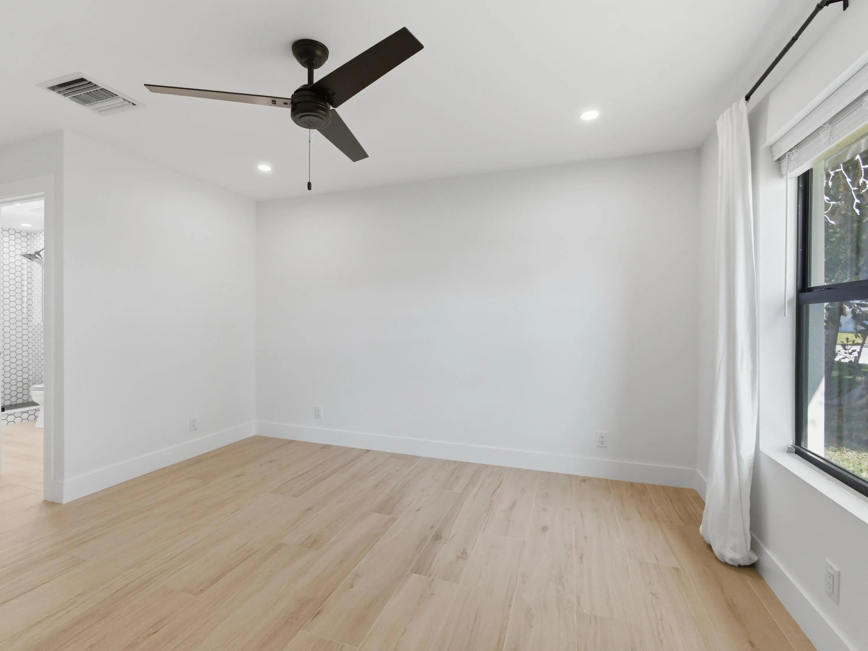 Fully remodeled in 2023, this Jupiter home feels like new construction. Major upgrades include a new metal roof, impact windows, new A/C, new stucco, updated kitchen, and porcelain wood-look floors throughout. Interior features all new drywall, trim, shaker doors, lighting, and fresh paint, plus expanded egress windows, mostly new framing, and all new plumbing and electrical. Exterior offers new sod and irrigation. Private backyard with two mango trees. Move-in ready in a desirable Jupiter location.