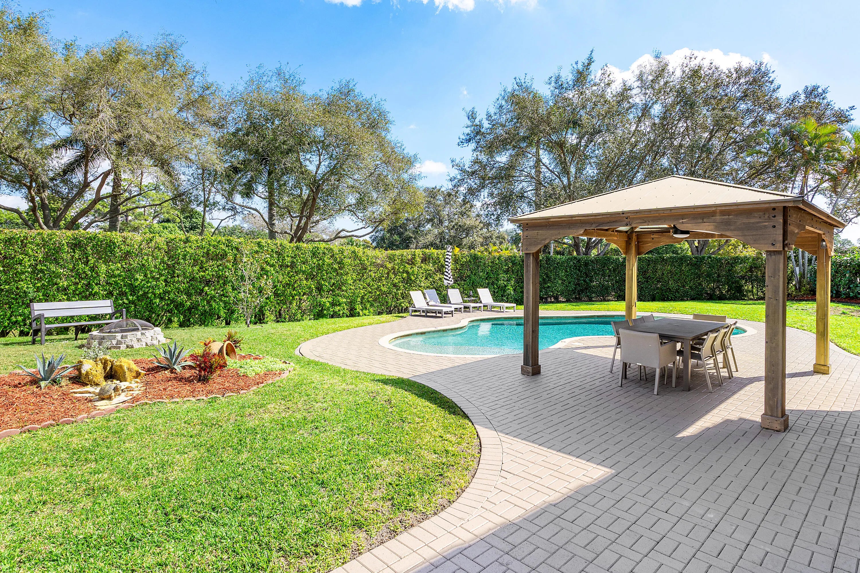 Welcome to Winston Trails! Where this beautiful 4 bedroom, 2.5 bath home is available. Light and bright this updated property has everything you could want from fully renovated Kitchen and bathrooms, new flooring, updated light fixtures and newer a/c unit 2021. When you walk threw the French doors you will notice the large gazebo that was added in 2022 for additional comfort when enjoying the pool on those hot summer days (with new pump and filter) and large backyard with plenty of room for entertaining. The community has a guard gate for security, pay as you play golf (no membership) the clubhouse boasts a restaurant, tiki bar and driving range. This home is a must see! Come and Enjoy all Winston Trails has to offer!