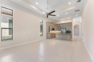 WELL MAINTAINED 3-BEDROOM HOME IN TESORO CLUB. Single-level living with an open floor plan, bright great room with 14-ft recessed tray ceiling, formal dining room, and private den with double doors. Chef's kitchen with double-stacked gray cabinets and stone countertops. Spacious primary suite with two closets, and bath with double vanities, garden tub and walk-in glass shower. Private backyard with mature plants. Convenient to the Turnpike, Publix, restaurants, and new Florida Coast Medical Center. Gated golf community with 24-hour manned gates; Annual lease; first, last & security required; no pets. Tenants may join Tesoro Club amenities via available memberships. Annual lease; first, last & security required; no pets. Lease includes cable, internet, security, and weekly yard service.