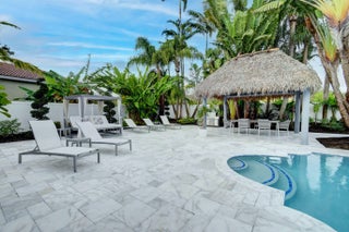 Look no further! This is the home you have been waiting for in the gated community of Winston Trails. This highly desired and completely upgraded home is on the largest lot in Winston Trails - .3644 acres, to be exact. This completely upgraded 4 bedroom 3 bathroom house has an oversized pool, beautiful custom master closet, luscious landscaping, Seminole built tiki hut and much more! This home offers everything plus some! Here are all the upgrades for this beautiful one-of-a-kind home! The entire inside of the home was completely gutted and every corner of the house is now squared off (not rounded) along with every entrance way to give the home a very modern feel. Brand new flooring in the garage with a brand-new garage door openers and Smart cameras (works off the app. Huge Tv in the backyard for entertaining. The driveway has brand new pavers. There are brand new wood floors throughout the entire house, new AC unit, washer and dryer was just installed in 2021. The interior of the house has custom railings, foyer lighting, custom living room with a brick fireplace. There are brand new custom closets in each room of the house with the master having his and her master bedroom closets. The 5th bedroom was renovated into a custom closet. All the bathrooms have been renovated. The kitchen cabinets are all brand new and the kitchen appliances are all Samsung Smart appliances. There is lots of shopping and dining nearby, and the house is zoned for all A rated schools- Manatee, Christa McAuliffe Middle and Park Vista! The community offers a large pool, tennis courts, multiple playgrounds, a non-membership golf course, Avantis Italian restaurant, and a fitness club.