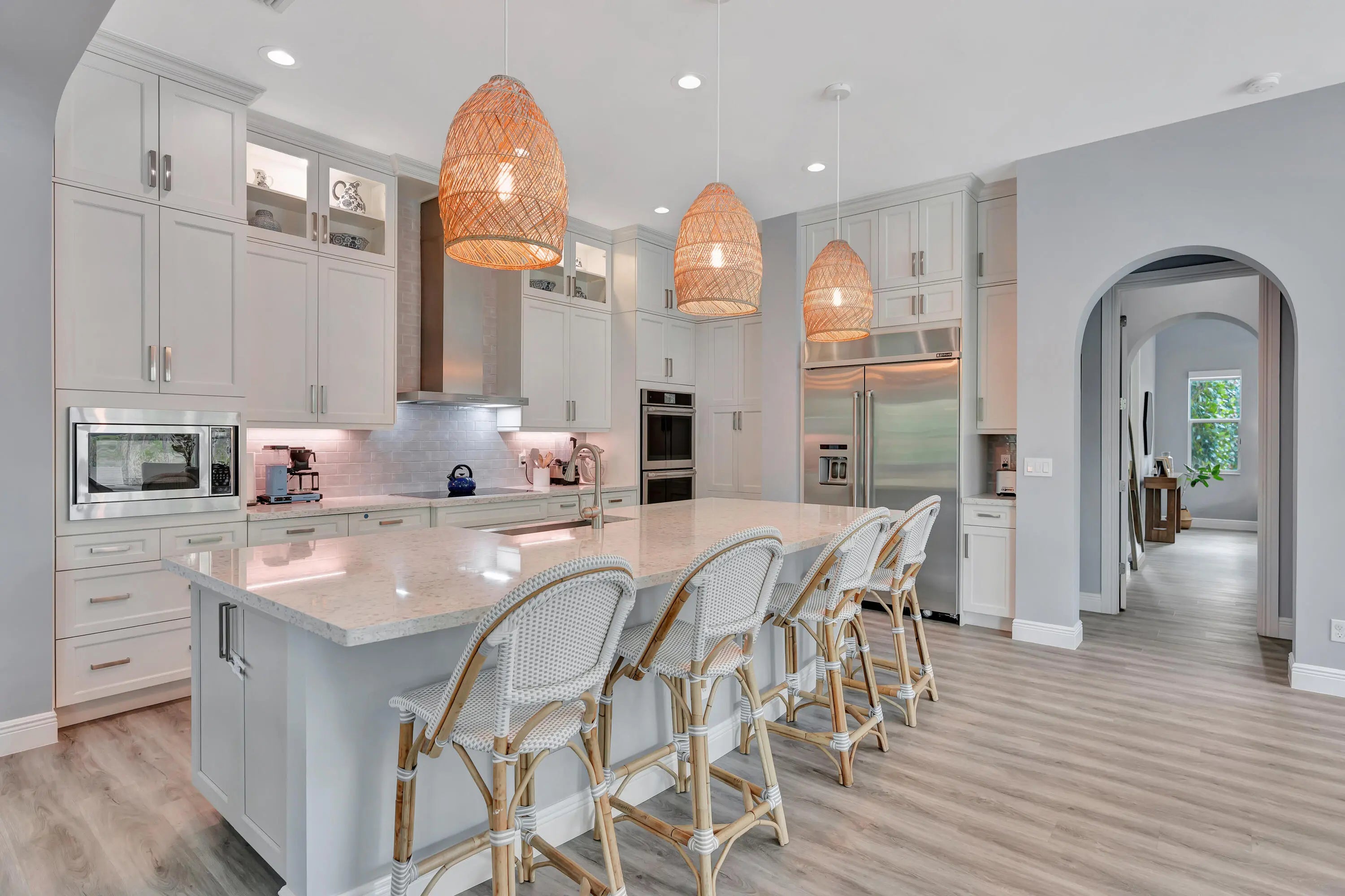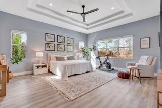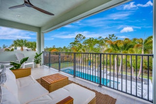 Tucked away in the exclusive gated community of Prado, this exceptional 5 bedroom estate offers space, privacy and the lifestyle Jupiter is known for! Located on a double cul-de-sac street sits 8150 SE Grassy Hollow Trail, a serene retreat situated on an expansive approx. 3/4-acre parcel backing up to a Nature Preserve with no rear neighbors. Built in 2017, this Coastal designed home offers over 5,000 square feet of living space, primary bedroom, 1 guest bedroom & den/office on main level, 5.5 baths including a full cabana bath with access to the salt-system pool & spa, plus 2nd level 'Junior suite' loft & 'bonus room' each with their own private balcony. The spacious kitchen features a walk-in pantry, high-end JennAIR stainless appliances including double ovens & induction cooktop.... white-wood cabinetry to ceiling & tile backsplash. The kitchen opens to generous living spaces designed for both everyday comfort and elegant entertaining! The extended main level primary suite features a large ensuite bathroom with soaking tub, seperate shower, dual vanities and custom outfitted his/her closets. Additional home features include Impact windows & doors throughout, upstairs/downstairs laundry room, neutral engineered wood-look flooring, 2017 metal roof & 3 car garage with extended pavered driveway. Prado has an ideal location just minutes to Jupiter's best beaches, restaurants, Golf & shopping yet secluded enough where homeowners enjoy expansive homesites and calm, natural surroundings where privacy comes first.