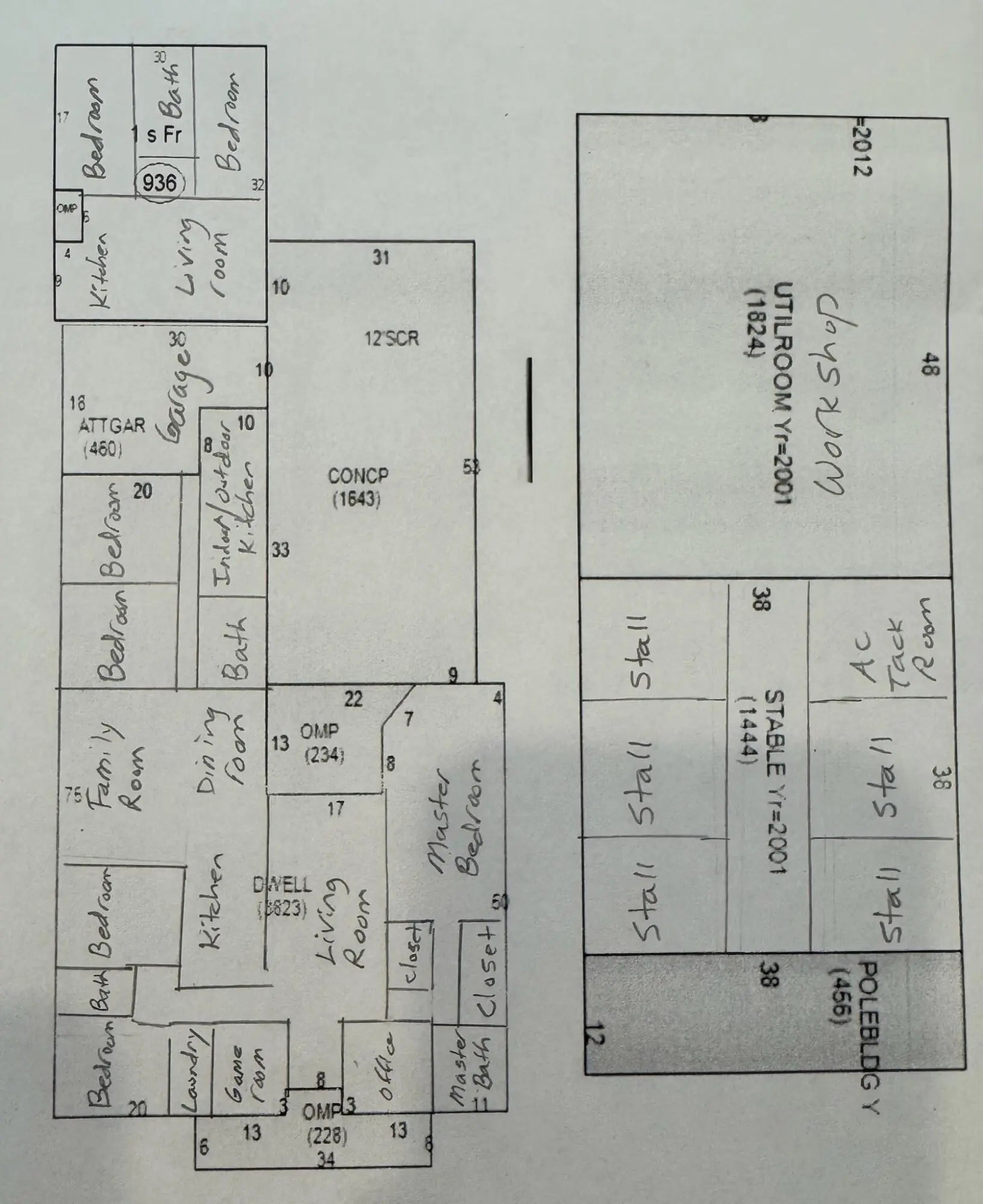 Looking for space for everyone? This renovated CBS multi-gen home features 5 bedrooms & 3 baths in main home PLUS an attached guest house with full kitchen + 2 bedrooms. Located on 3 picturesque acres with mature oaks, fenced yard and a massive 1,824 workshop. For equestrian enthusiasts, there's a 1,444 sq ft 5 stall barn with AC tack room & all new fencing with 3 paddocks in this premier guarded gated Equestrian community centrally located by I95 in Palm City and only 50 minutes to Wellington, the winter equestrian capital. Enjoy family time on the 1,000 sq of covered porches, in the outdoor kitchen that opens onto the enclosed pool area, or in the game room, family room, living room, or in the school office. Upgrades include all new flooring, new kitchen with stone quartzite counters, newly painted inside and out, all remodeled bathrooms, new pool enclosure, pool heater and pump, and new water heaters. There is a 25 acre vacant lot adjacent to the property as for sale. Combine this house with that lot for a truly remarkable equestrian property with trails and space for all of your animals. Golf & social memberships are available for the Cape Club