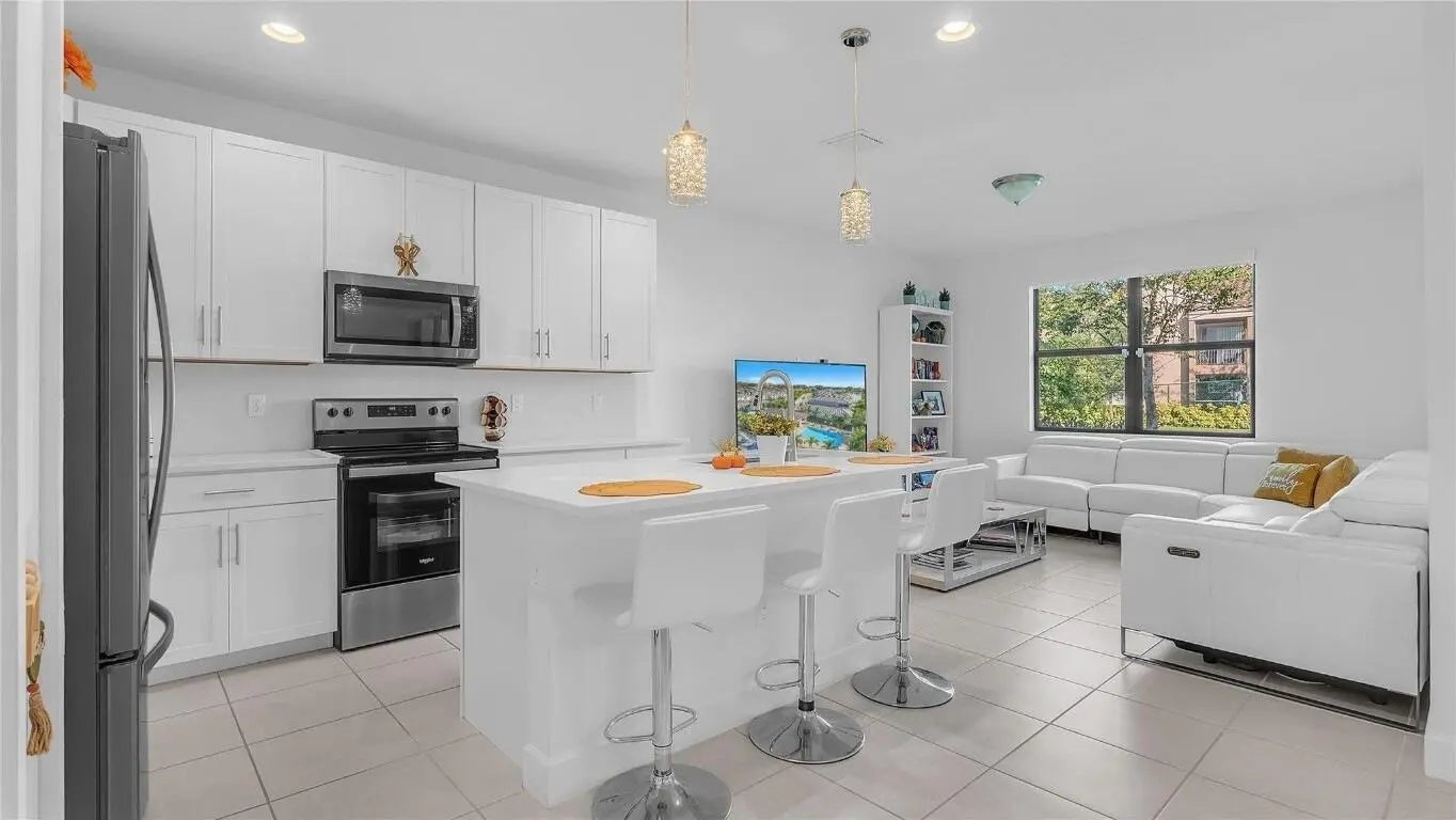 Rare 2021-built home in the gated community of Vantage featuring 3 bedrooms, 2.5 baths, and a 2-car garage. Open-concept layout with tile downstairs and carpet upstairs. The spacious primary suite offers a covered balcony, and the lanai functions as an outdoor living area. Kitchen and baths feature quartz countertops, with generous closet space throughout. Conveniently located near the Turnpike, I-95, and just minutes from the beach. Rent includes gated security, basic cable, high-speed internet, water, trash, lawn care, tot lot, and community pool -- tenant only pays electric.