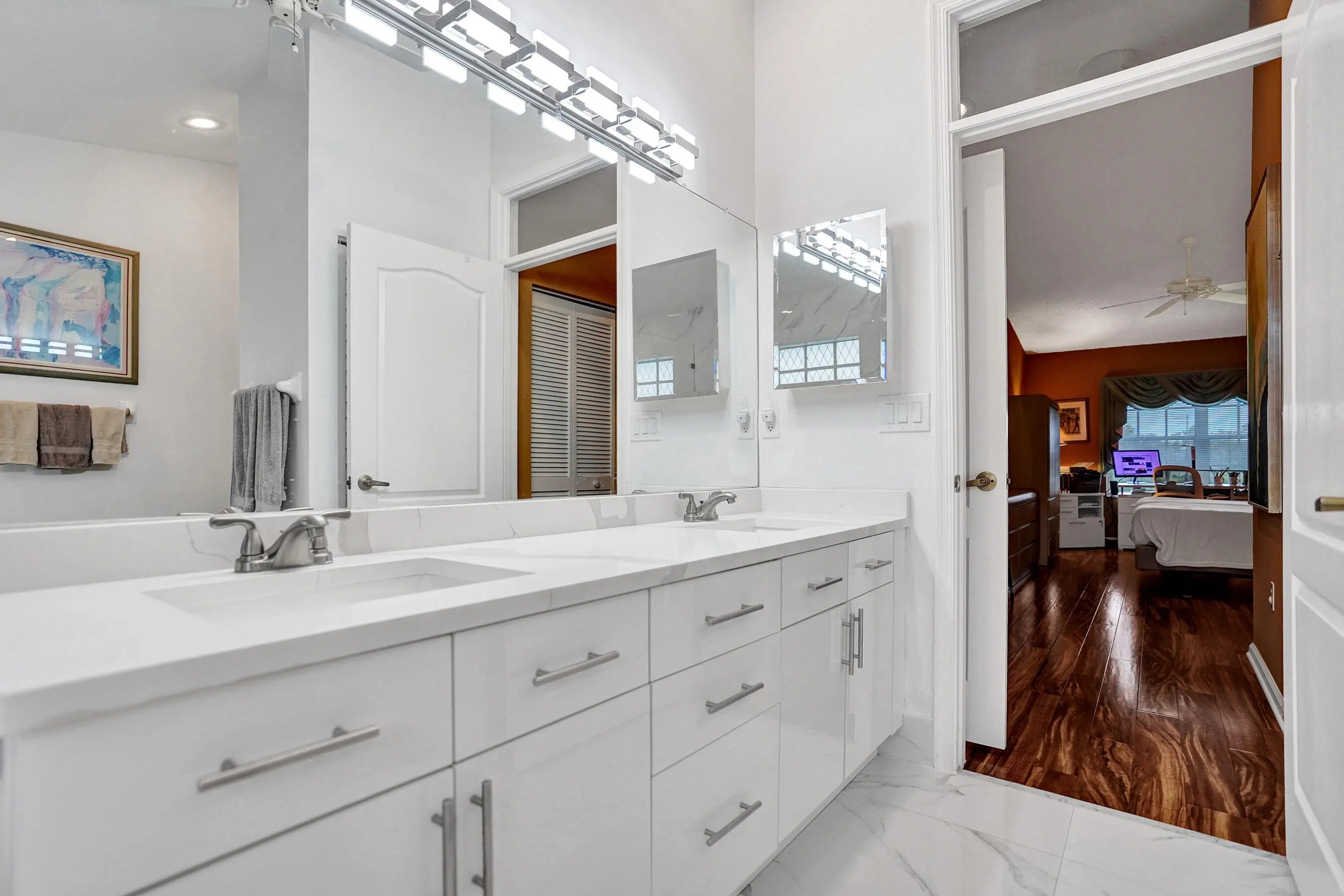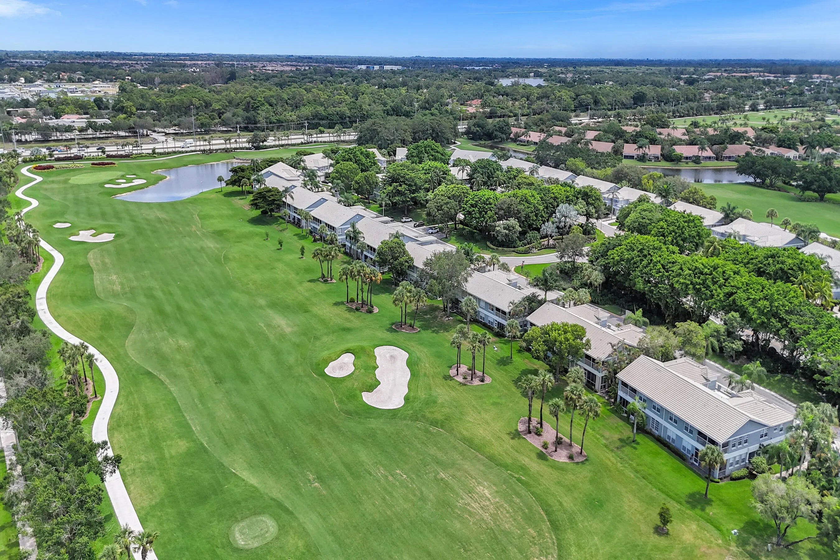 A perfect blend of refined elegance and relaxed comfort awaits in this true 3BR, 2BA condo with picturesque views of the newly renovated East Golf Course and serene lake. Spend your days living the country club dream, and come home to the spacious comfort this condo provides. Being on the 2nd floor offers not only spectacular views but also soaring ceilings that add light and volume to your home. The open floor plan lets you design the space your way, while the split-bedroom layout ensures privacy for all. The bathrooms have been luxuriously remodeled, with the primary suite boasting an oversized bedroom overlooking the golf course, and a spa-inspired bath with dual sinks, separate shower, and soaking tub. The 2nd bedroom features laminate flooring, while the 3rd bedroom doubles perfectly as a home office or guest room with its built-in Murphy bed. If entertaining is your style, the condo's layout is ideal , with an open kitchen that connects seamlessly to the formal dining room on one side and a cozy breakfast café on the other. The spacious living room flows naturally to the covered, screened balcony, where you'll unwind with serene views of the fairway and lake. At Wycliffe Country Club, your lifestyle is elevated with two 18-hole championship golf courses, 14 Har-Tru tennis courts, 8 pickleball courts, fine dining, a rejuvenating spa, entertainment, and so much more. You've worked hard , now it's time to play hard and live the dream you deserve. One of the best investments you will find in Palm Beach County's Country Clubs.