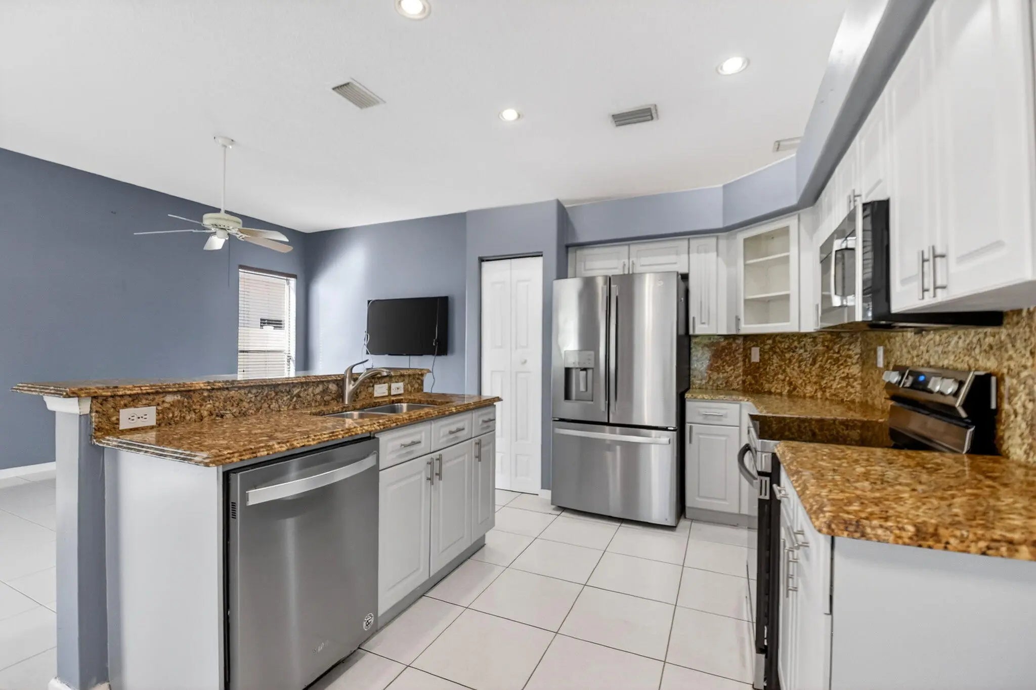 Welcome Home to this beautiful 4-bedroom, 2-bath single-family home in the highly desirable Winston Trails community. This home checks all the boxes with A BRAND NEW ROOF, renovated bathrooms, and tile and laminate flooring throughout for a clean, modern feel. The kitchen features granite countertops, stainless steel appliances, breakfast nook, perfect for everyday living and entertaining. Step outside to your screened patio and fully fenced backyard-ideal for gatherings, pets, or relaxing evenings at home. You'll also enjoy full hurricane protection with accordion and panel shutters for added peace of mind. Live in a community known for its resort-style amenities and top-A rated schools, all in one of the area's most desirable neighborhoods. This is the home you've been waiting for!
