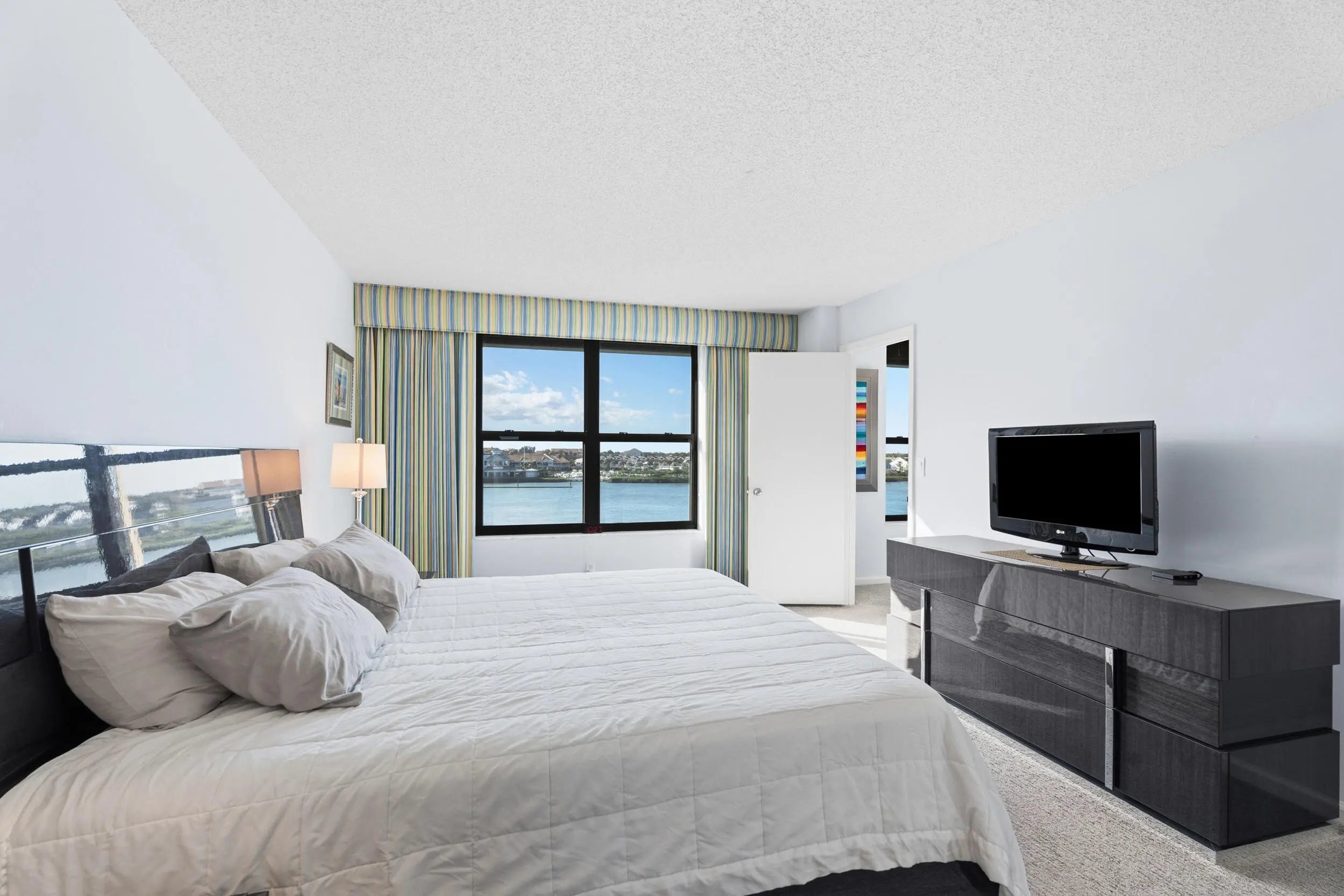 Welcome to your waterfront retreat in Jupiter Cove! This beautifully updated 2-bedroom, 2-bath condo captures the best of coastal living with sweeping views of the Intracoastal Waterway. Step inside to a bright, open layout and enjoy the comfort of tastefully renovated bathrooms with a spa-like finish. Hurricane impact windows add peace of mind, energy efficiency, and a quieter, more serene interior. The spacious living area flows effortlessly -- sip your morning coffee, unwind after a day at the beach, or entertain while taking in the stunning water views. Located in the sought-after, gated Jupiter Cove community, residents enjoy resort-style amenities including a heated pool, fitness room, pickleball, and tennis courts.