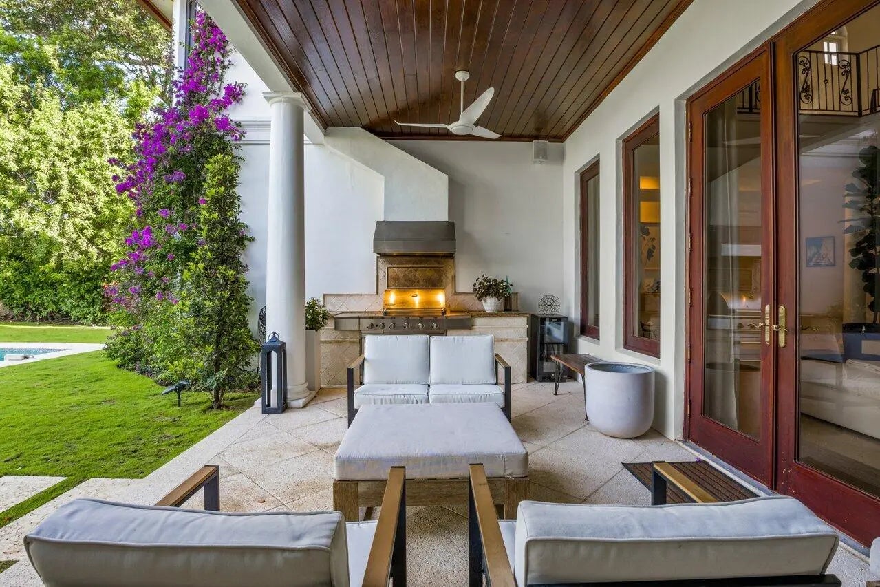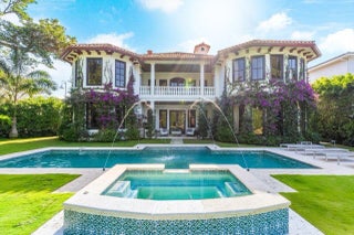 Exquisite Tuscan-Style Waterfront Estate with Private Beach and just a block away from the ocean! This Hypoluxo Island Estate comes fully furnished and occupies a large 18,731 SF lot and features 6000 SF of interior living space that includes 6 Bedrooms and 5.5 bathrooms. The brick-paved entryway through electric wrought iron gates leads to the 3 car garage and the pillared front doorway into the home. Step into another time and place with magnificent entry featuring a spectacular spiral staircase, marble floors, and ceilings capped with a custom mosaic dome. You'll love the charm of the fireplace that graces the living room as well as having the are bathed in natural light from the beautiful west facing windows and doors that provide peaceful views of the Coastal Waters.