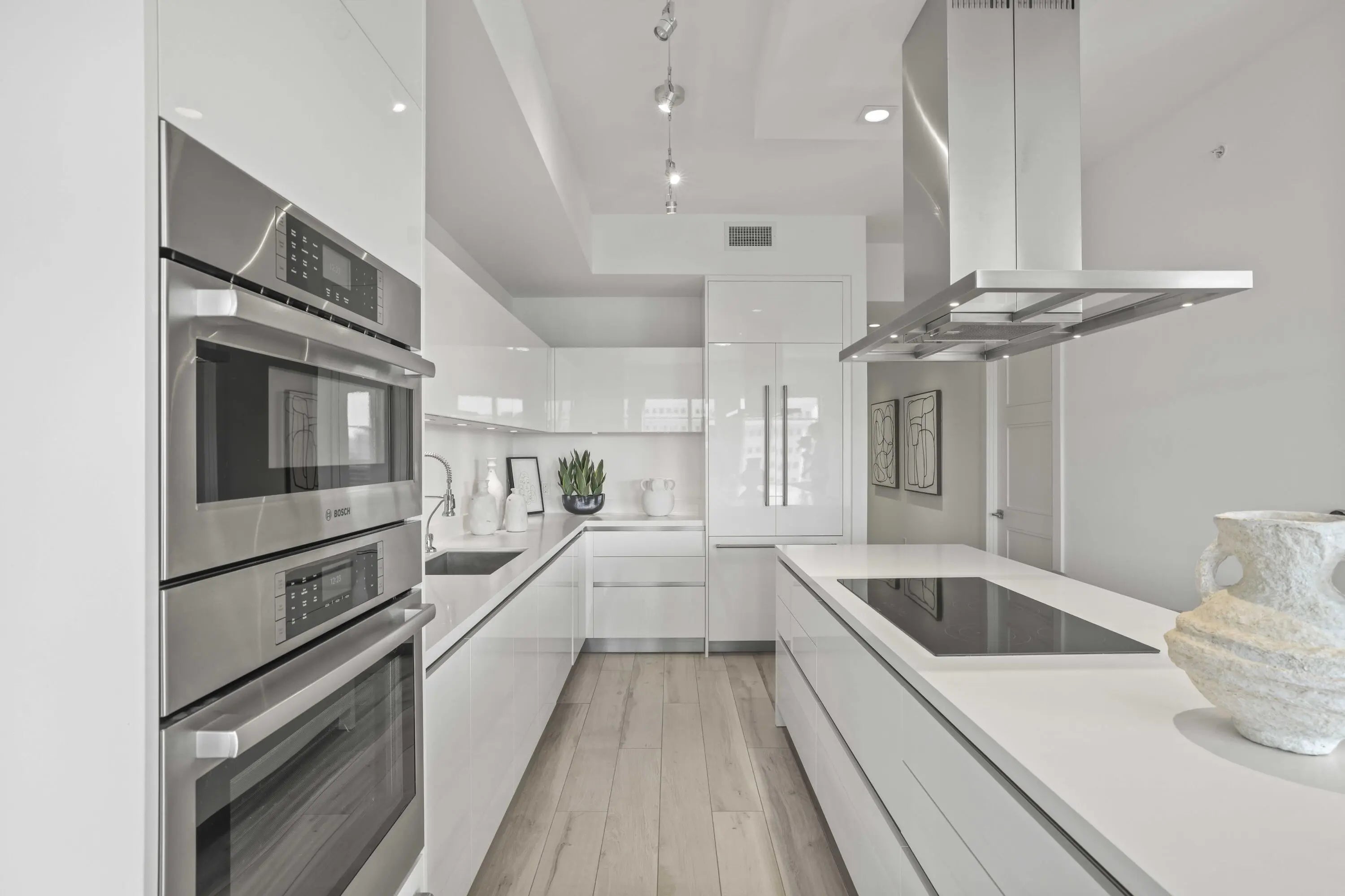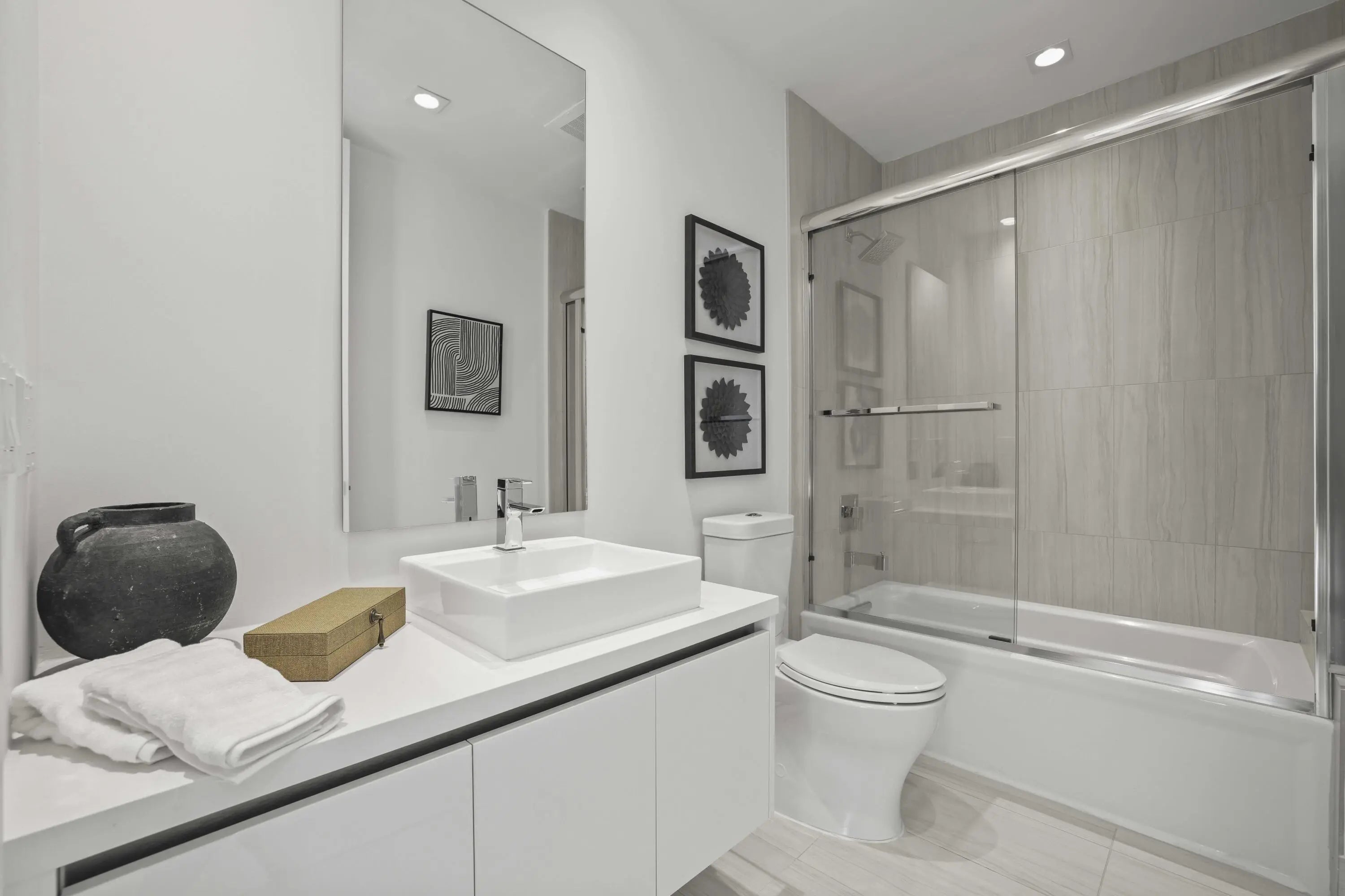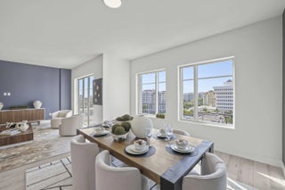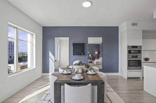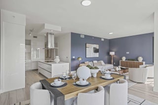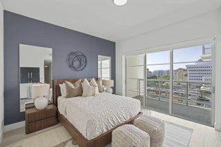 One of the newest full-service luxury condominiums in the heart of downtown Boca Raton, Tower 155 defines the Mizner Park lifestyle. Residence 814 delivers this lifestyle with a coveted southern exposure and exceptional natural light. Positioned between Mizner Park and Royal Palm Plaza, this premier address offers unmatched walkability to fine dining, upscale boutiques, cultural venues, and pristine beaches placing the very best of East Boca steps from your door. Residence 814, a sophisticated 2 bed 2½ bath home designed for elevated modern living. Soaring 10-foot ceilings and floor-to-ceiling impact glass create a bright, open atmosphere from the moment you enter. The living, dining, and kitchen spaces flow seamlessly, offering both functionality and refined style for everyday living and entertaining. Porcelain tile flooring extends throughout the main areas, enhancing the clean architectural lines of the residence. The kitchen is thoughtfully appointed with sleek Italian cabinetry, quartz countertops, a generous center island, and premium stainless steel appliances, balancing design and performance with understated elegance. The primary suite offers a serene retreat with a spacious walk-in closet and a spa-inspired bath featuring dual vanities and a frameless glass shower. The guest suite includes its own en-suite bath, providing comfort and privacy. A dedicated laundry area adds practicality to the layout. Two private south-facing terraces expand the living space outdoors, capturing vibrant city views and stunning sunsets--an ideal setting to enjoy Boca's year-round coastal climate. Two assigned parking spaces complete the residence. Tower 155 offers a full-service, resort-style experience designed by Steven G Interiors, featuring a dramatic two-story lobby, 24-hour concierge and valet, secure garage parking, heated pool, rooftop sundeck overlooking Mizner Park, jacuzzi, private cabanas, fitness center, spa with sauna and steam rooms, clubroom, and business lounge. Residence 814 is more than a home, it is a statement of contemporary luxury and upscale living in Downtown Boca Raton's most desirable address.
