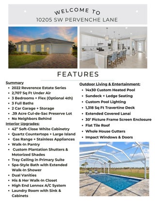 This gem is located on an oversized .39-acre premium lot with no rear neighbors and sweeping preserve views in the sought-after community of Del Webb at Tradition. Tucked at the end of a quiet cul-de-sac, this stunning pool home provides rare space and serenity and delivers the ultimate Florida lifestyle. This move-in ready 3 bed, 3 bath + flex room property offers high ceilings, open layout, impact windows + doors, natural light and many upgrades. The expansive backyard with extended lanai, picture-frame screen enclosure, 14x30 custom pool and huge travertine deck, is a true outdoor oasis. Whether entertaining, relaxing or enjoying the resort-style amenities, this home has it all. Shopping, dining and Tradition Square are just minutes away.