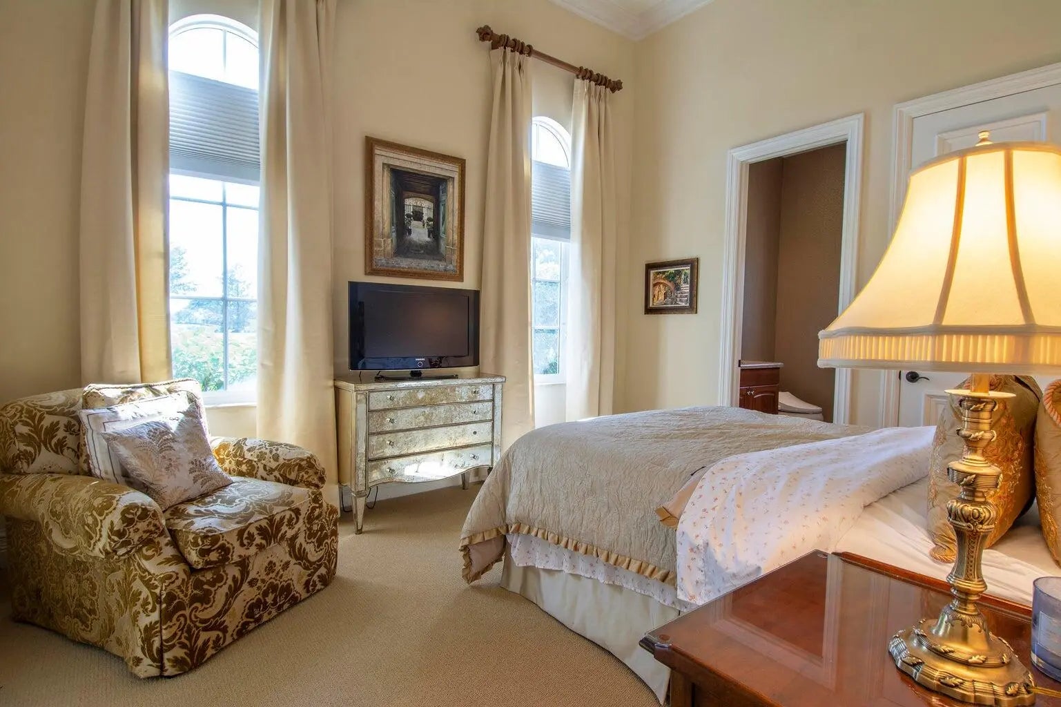 This turnkey fully furnished Tuscan-style home with a fantastic pool is ideally suited for entertaining. The extended covered porch features an outdoor kitchen with a natural gas grill & overlooks a resurfaced lap pool with a hot tub; the fire pit offers views of a preserve, the 16th fairway, and a pond. 5 French doors lead from the porch into the Great Room & kitchen. Ideally suited for entertaining. The Private Den & Dining Room features tall ceilings & windows. The Guest Bedrooms with ensuite baths, designed for maximum privacy, have been updated with new carpets. The Main BR suite has a 14 ft high tray ceiling, both his & her private baths, & 2 walk-in closets featuring custom cabinets. Updated AC's, New pool heater, Tankless water heater, EV Car & Golf Cart charger, 400 amp electric.