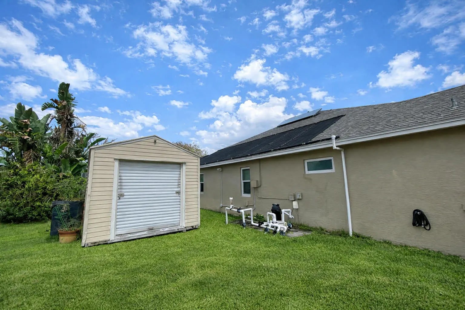 Beautiful 3/2.5/2 pool home with stunning water views! This spacious property also offers a bonus room that can serve as an office or potential 4th bedroom. Upgrades include a new roof, new AC, tankless water heater, new range, & new dishwasher. The kitchen features an island bar, planter shelf, & opens to the living areas with elegant archways & decorative wall niches. Sliding glass doors surround the pool area from the kitchen, living room, & primary bedroom, providing beautiful pool & water views. The half bath serves as a convenient cabana bath. Solar pool heater is owned. Additional features include a storage shed and treehouse. Separate laundry room. Some photos may include virtual staging to help illustrate the home's potential and possible layout ideas.