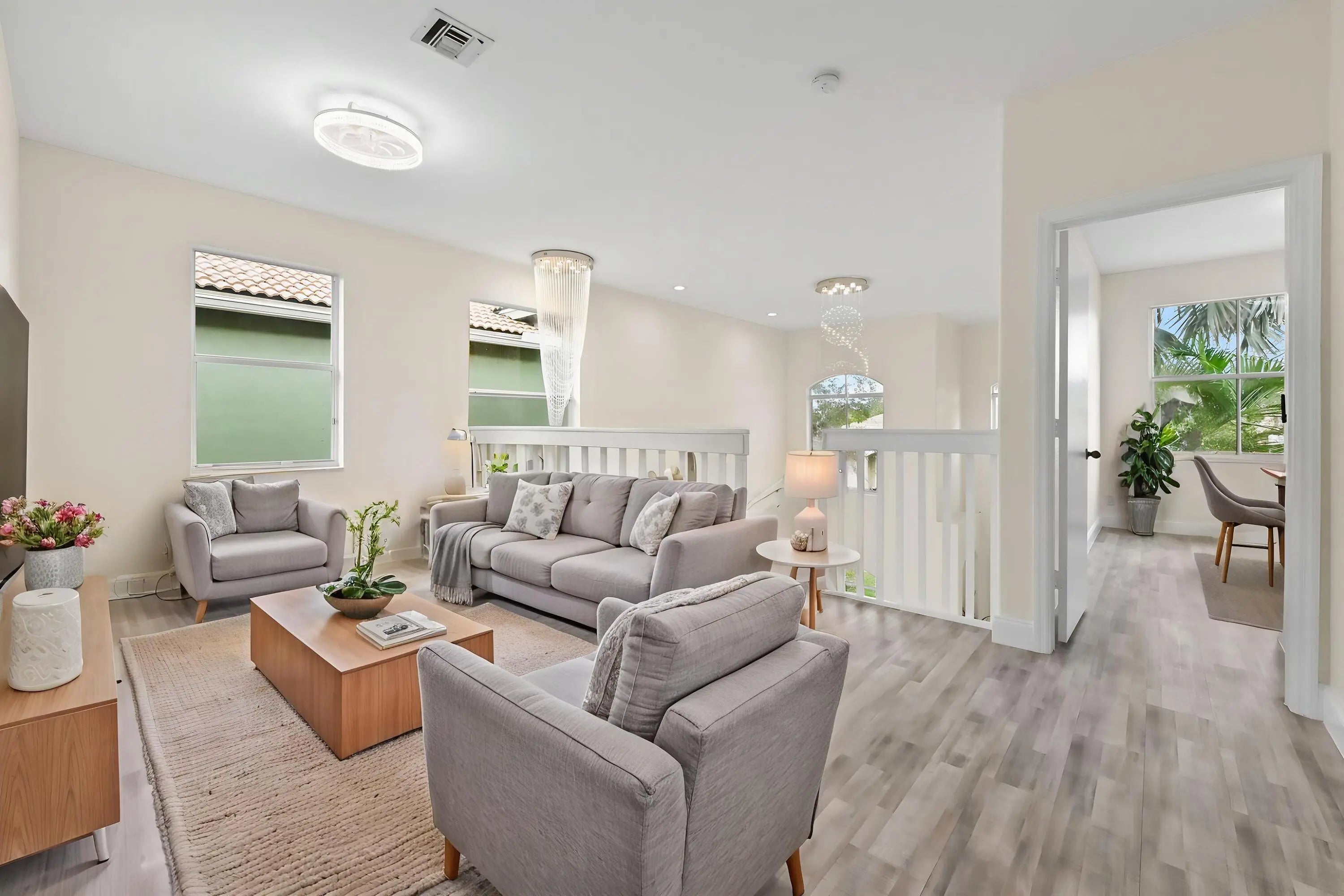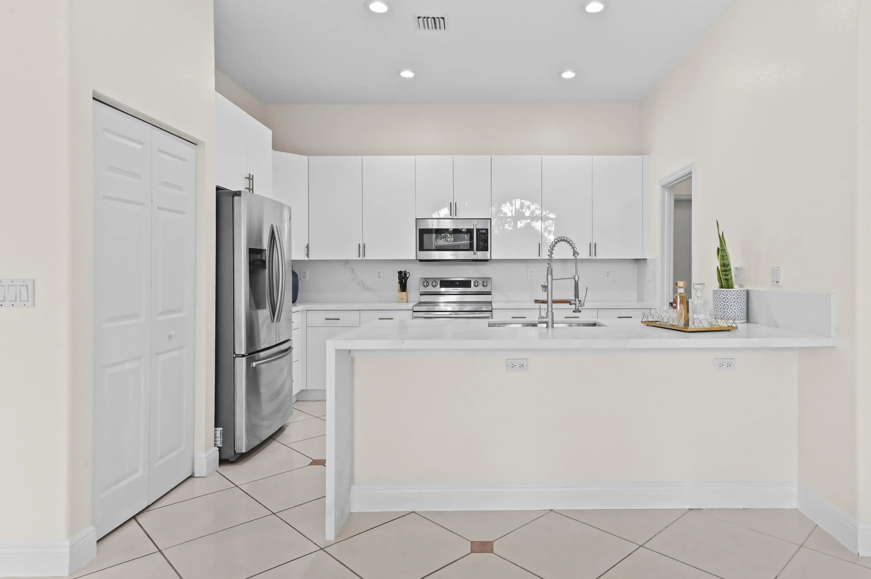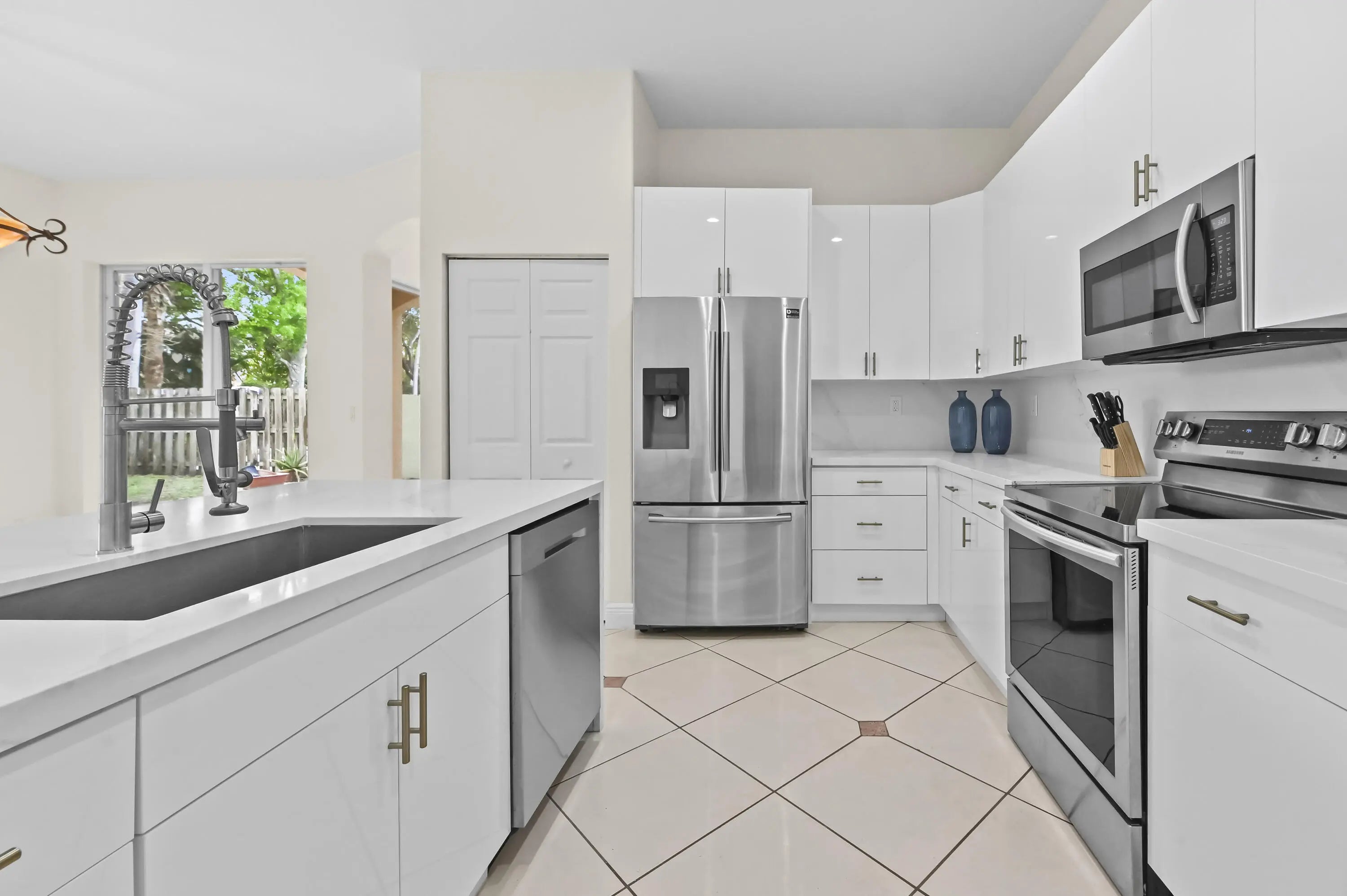 Welcome to CocoPlum, a desirable gated community offering comfort, space, and convenience. This fully renovated 2-story home features 2,111 sq ft of living space with 3 bedrooms, 2 full bathrooms, 1 half bathroom & a large loft, thoughtfully designed for everyday living. Step inside to a welcoming foyer that opens to spacious dining, family, and living areas with tile flooring throughout the main level. The newly updated modern kitchen is equipped with new stainless steel appliances, ample cabinet storage, and quartz countertop with a beautiful faucet and bar seating, perfect for casual dining and entertaining. A dedicated laundry room with a washer and dryer adds convenience along with a new hot water heater. The stairs & entire second floor boasts vinyl plank flooring. All bedrooms are located upstairs, providing privacy from the main living areas. The large primary suite features a spacious luxurious master bath with dual sinks, a separate shower, and a separate soaking tub for a relaxing retreat. Enjoy Florida living with both closed and open patio spaces overlooking the backyard, ideal for gatherings or quiet evenings outdoors. The home also includes a 2-car attached garage plus additional driveway parking. Don't miss this opportunity to own in the gated community of CocoPlum!