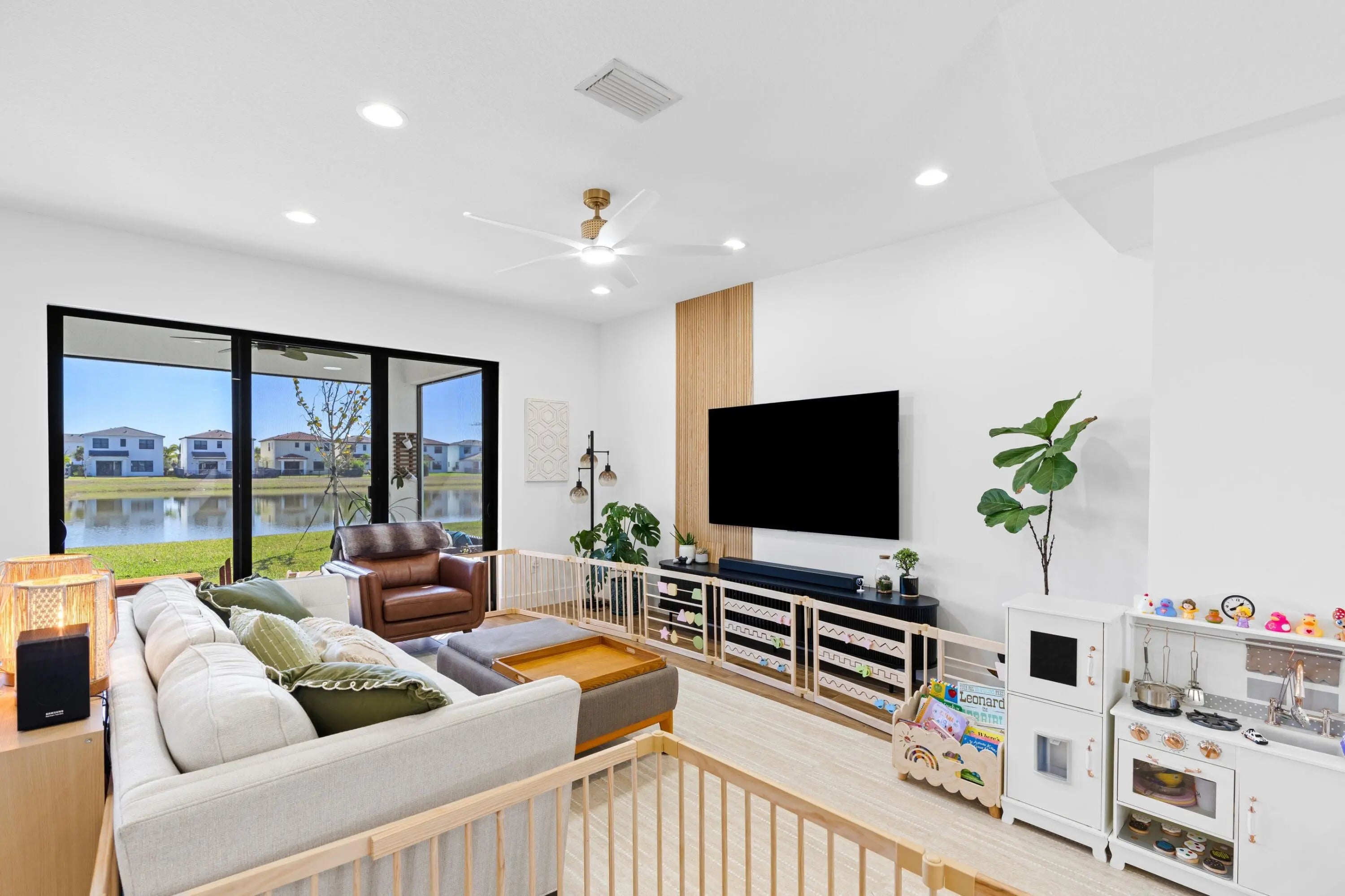 Welcome to this stunning 4-bedroom, 3.5-bathroom two-story home in the highly sought-after Skycove South in Westlake! Perfectly positioned on a beautiful lakefront lot, this home offers peaceful water views and thoughtfully designed living spaces throughout. The spacious floor plan features a fully upgraded guest suite conveniently located on the first floor, perfect for visitors. The heart of the home includes an open living area and modern kitchen designed for both everyday living, entertaining, and beautiful dining space. Upstairs, you'll find an oversized loft that provides the perfect space for a second living room, playroom, or home office. The primary suite is a true retreat, showcasing serene lake views right from the master bedroom window, creating a relaxing place to start and end your day. You'll also find a large custom closet in the primary suite. Additional highlights include a two-car garage, generous living spaces, screened in patio and beautiful waterfront scenery that makes this home truly special. Enjoy the best of South Florida living in this move-in ready lakefront home located just minutes from shopping, dining, and all the amenities Westlake has to offer.