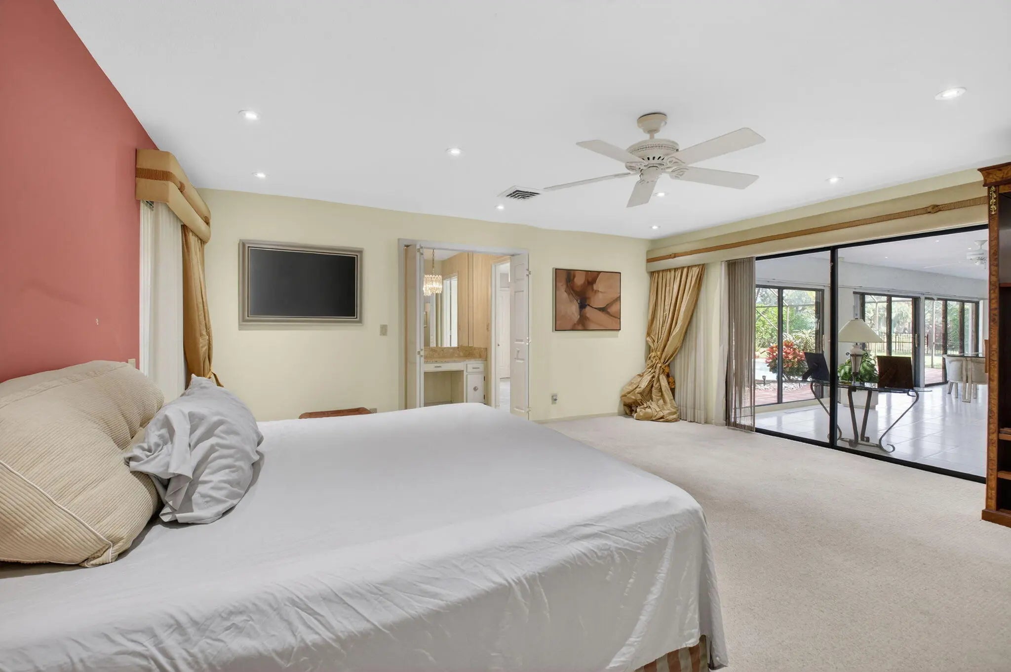 This spacious 1 story pool home on a large corner lot, over half an acre, boasts 4 bedrooms and 3 baths and an oversized two car garage. The seller is the original owner, and it has been cared for diligently. Nestled on a quiet street in highly desirable Boca Bath and Tennis, the home has an ample yard and a substantial amount of parking with it's circular driveway. The home is ready for your personal touches throughout. The roof was redone in 2022. Boca Bath and Tennis is a gated community conveniently located in central Boca Raton. It has 243 homes with over 53 acres of parks and green space. The clubhouse and gym are newly renovated. The community has 8 har-tru tennis courts, a playground, pickleball, volleyball & basketball courts, 3 lakes and a heated and cooled Olympic-sized pool.