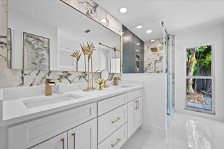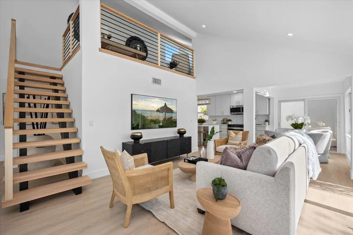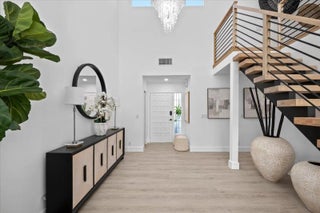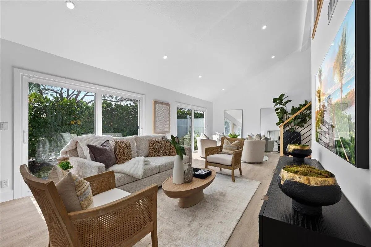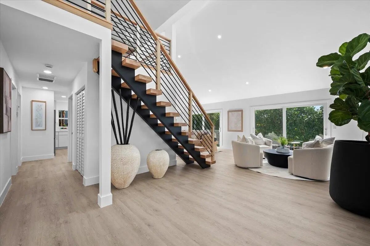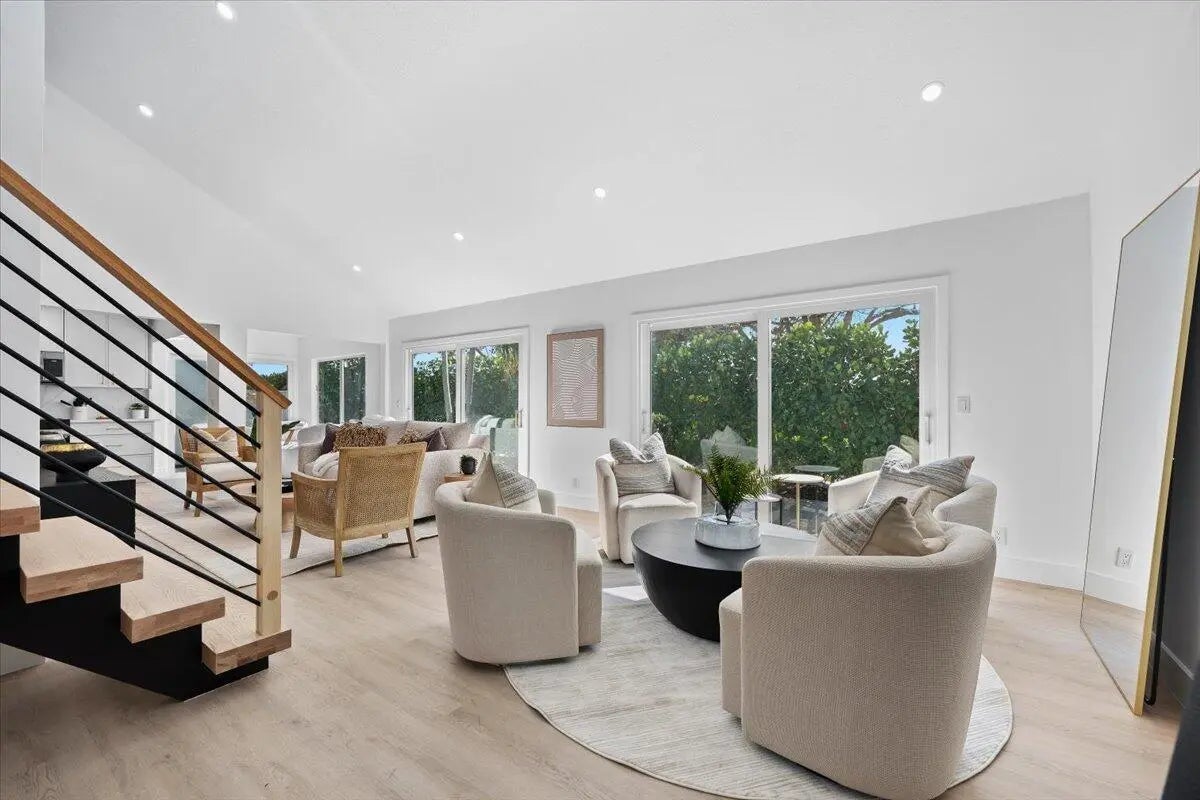 Located in the highly desirable community of Jonathan's Landing, this beautifully renovated home offers a seamless blend of modern style and everyday comfort. Completely updated and move-in ready, the home has been thoughtfully redesigned with quality finishes and attention to detail throughout. Step inside to a bright, open floor plan with soaring vaulted ceilings that fill the living spaces with natural light and create an inviting, airy atmosphere. A striking designer staircase adds an architectural focal point to the home and leads to a loft space that is perfect for an additional living area, home office, or creative workspace. The stunning kitchen is designed for both entertaining and daily living, featuring custom cabinetry, a full quartz countertop and matching quartz backspl premium stainless steel appliances, and a large island with a dramatic quartz waterfall edge. The kitchen also includes a dedicated coffee bar, creating a stylish and functional space for everyday living. Elegant designer lighting adds warmth and sophistication throughout. The bathrooms offer a spa-like experience with frameless glass showers, upscale vanities, and sophisticated tile work. Throughout the home you'll find wide plank flooring, modern fixtures, and fresh interior paint that elevate the overall design. Impact windows and doors provide protection, energy efficiency, and peace of mind, while the home is topped with a durable 2021 slate roof. Outdoor living is effortless with two private patios set against fresh landscaping and ample yard space, offering the perfect setting for relaxing or entertaining. A two-car garage and spacious lot complete the property. This turn-key residence combines sophistication, thoughtful design, and comfort within the sought-after gated community of Jonathan's Landing.