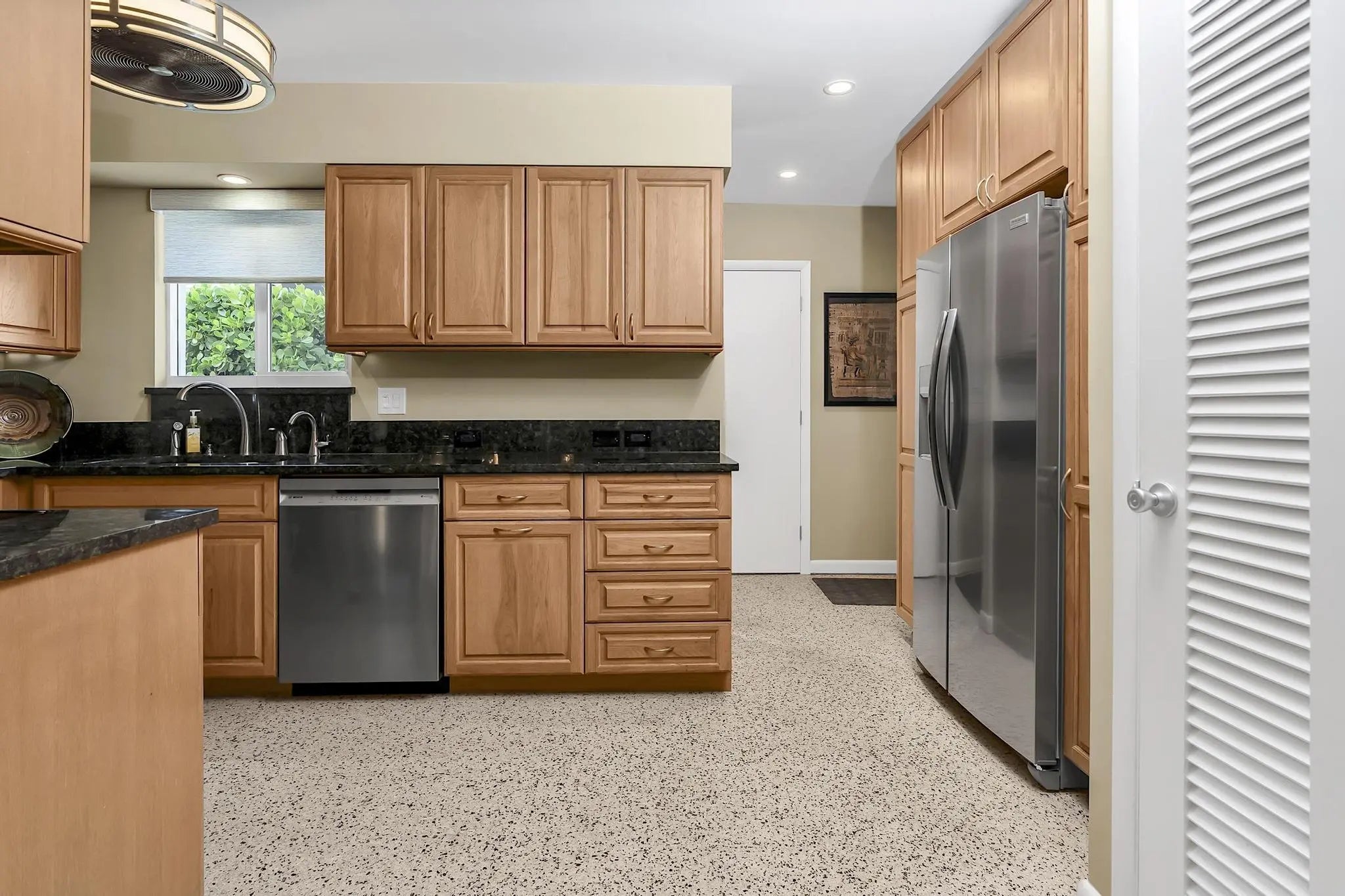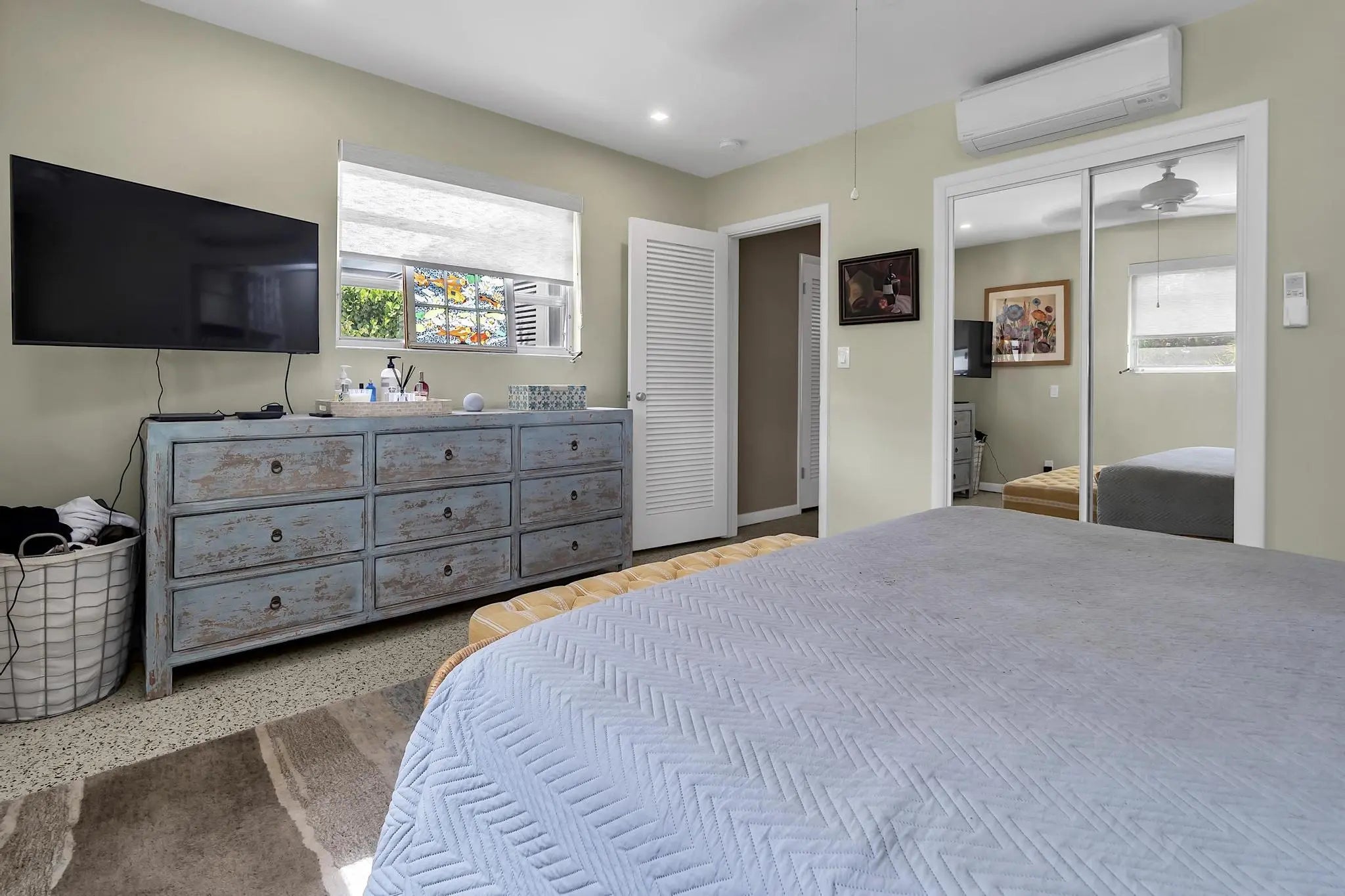Immaculate Mid Century Modern in highly sought-after College Park! This beautifully maintained 2 bedroom, 2 bath home blends timeless design with thoughtful upgrades. Original restored terrazzo floors run throughout, adding classic character and elegance. The home features super efficient reverse cycle mini-split systems for year round comfort and energy savings. The brand new kitchen appliances make cooking a pleasure, while the home's bright and airy layout captures the charm of mid century architecture. Step outside to gorgeous, professionally maintained landscaping that creates a private tropical setting. The rear patio is perfect for entertaining, complete with a retractable awning ideal for shaded outdoor dining. Minutes from downtown LWB, dining, shopping, West Palm Beach, Palm Beach and our beautiful Florida beaches.