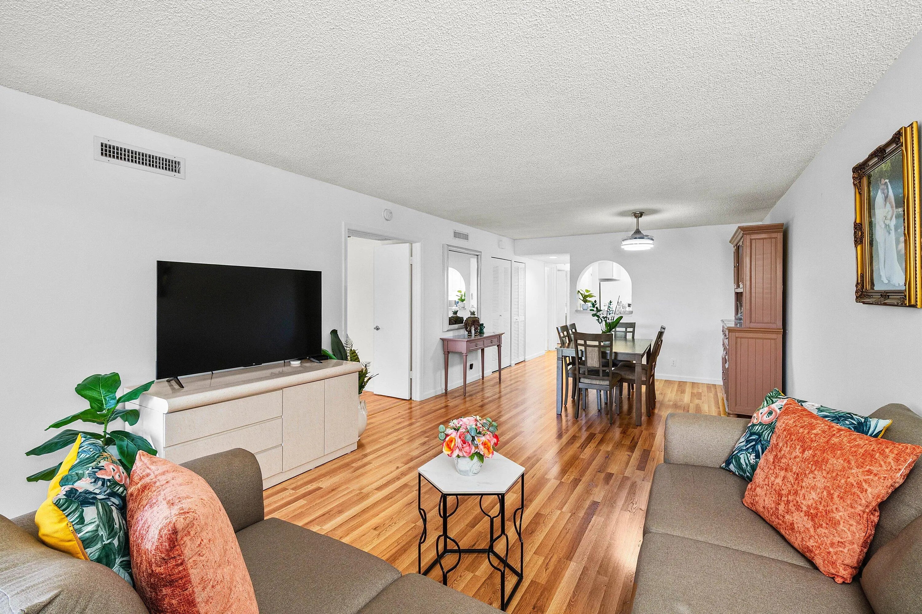 THIS PRISTINE & IMMACULATE 2 BED 2 BATH CONDO IS IN THE VERY ACTIVE GATED COMMUNITY OF BANYAN SPRINGS. NEW ENGINEERED WOOD FLOORING THROUGHOUT THE CONDO GIVES THE FEELING OF CONTINUITY AND SPACIOUSNESS. THE PRIMARY BEDROOM HAS SLIDING GLASS DOORS THAT ALLOW NATURAL LIGHT & LEAD OUT TO THE SCREENED LANAI AND THE PRIMARY BATHROOM IS NICELY UPDATED. RELAX OR ENTERTAIN FRIENDS ON THE SCREENED LANAI. ACCORDION HURRICANE SHUTTERS (just in case)... BANYAN SPRINGS HAS AN AMAZING CLUBHOUSE w/ CAFE/RESTAURANT, 2 RESORT STYLE POOLS & 2 SPAS, FITNESS CENTER, SAUNA & STEAM ROOM, SHOW HALL FOR PARTIES, SHOWS & DANCES, ART STUDIO, TENNIS & PICKLEBALL (pro onsite), BEAUTY SALON, BOCCE, MANY CARD GAMES & CLUBS TO JOIN! CLOSE TO SHOPPING, RESTAURANTS AND BEACHES. GREAT CENTRAL LOCATION! SUPER CLEAN!