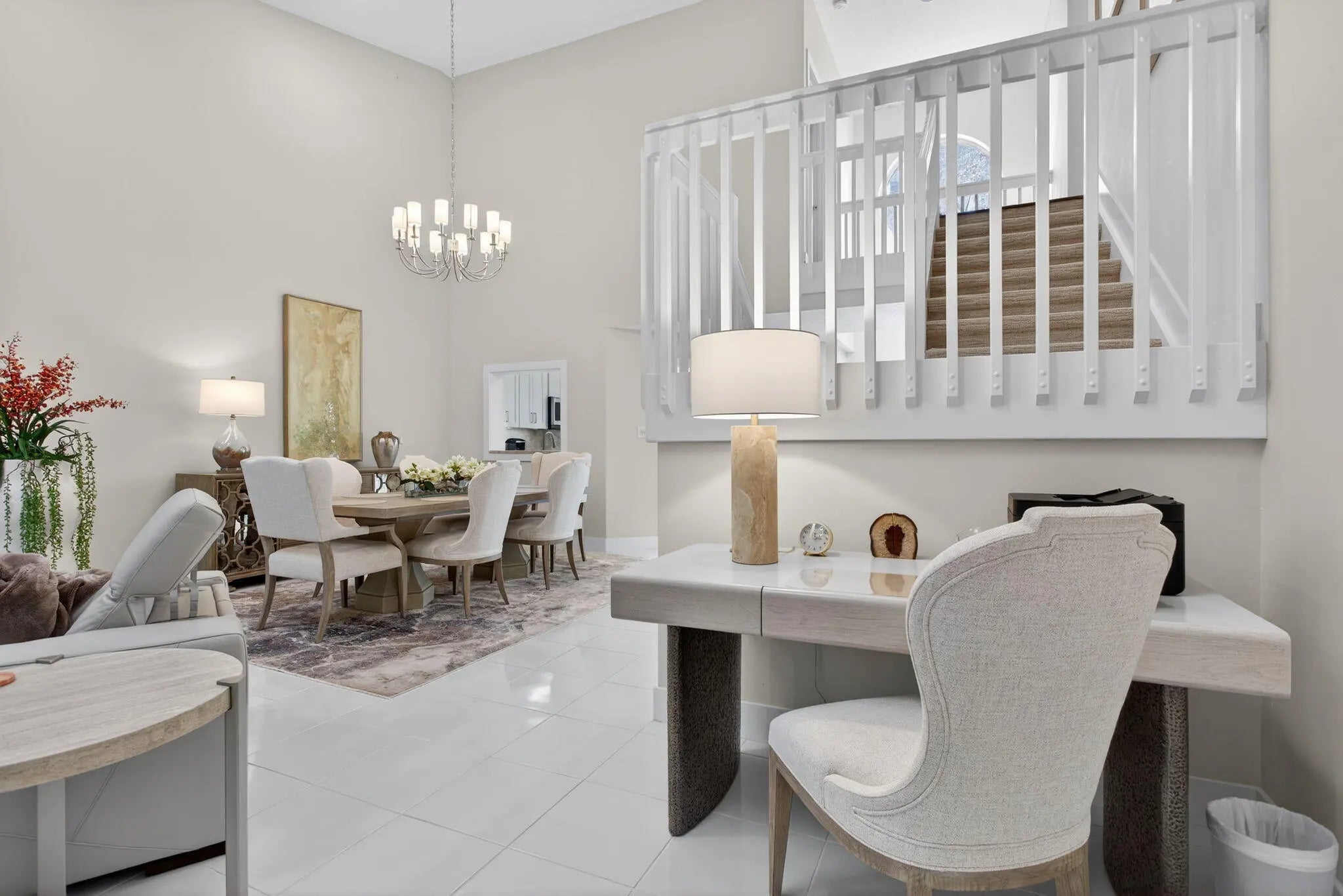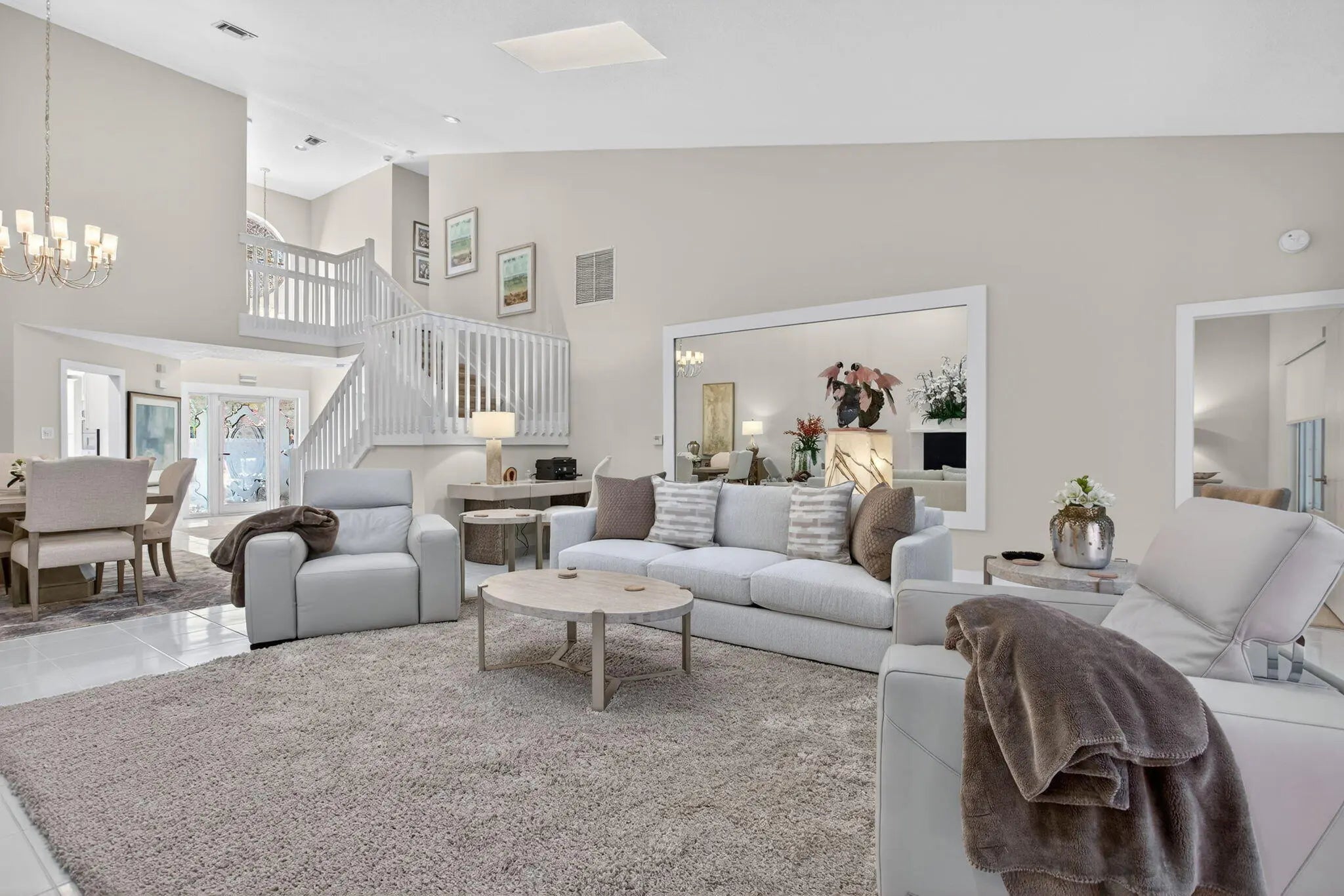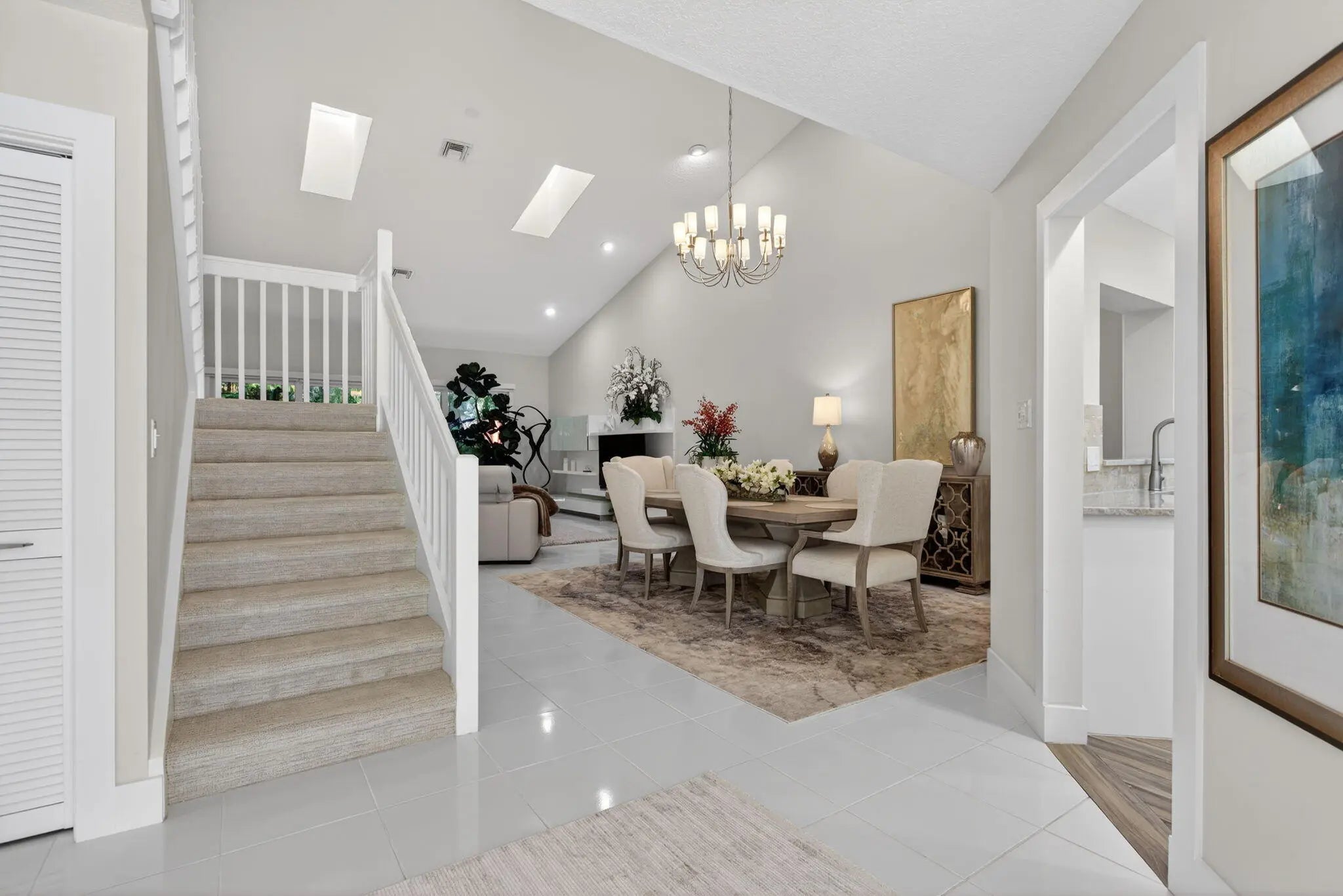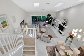 Private courtyard home in the highly desirable Misty Oaks section of Palm Aire offering 2,278 sq ft under air plus garage. Bright interior features a dramatic great room with soaring ceilings, skylights, and elegant staircase creating an impressive open living and dining space filled with natural light. Spacious kitchen with granite countertops, double ovens, breakfast area, and abundant cabinetry. Ground floor primary suite with walk-in closet. Each bedroom has access to its own bath, three ensuite and a fourth just outside the bedroom. Major updates include tile roof (2023), impact windows and doors, Rheem 4-ton A/C, and generator-ready electrical panel. Enjoy indoor outdoor living in the private tiled courtyard and lanai with awning. Community pool and cabana nearby.