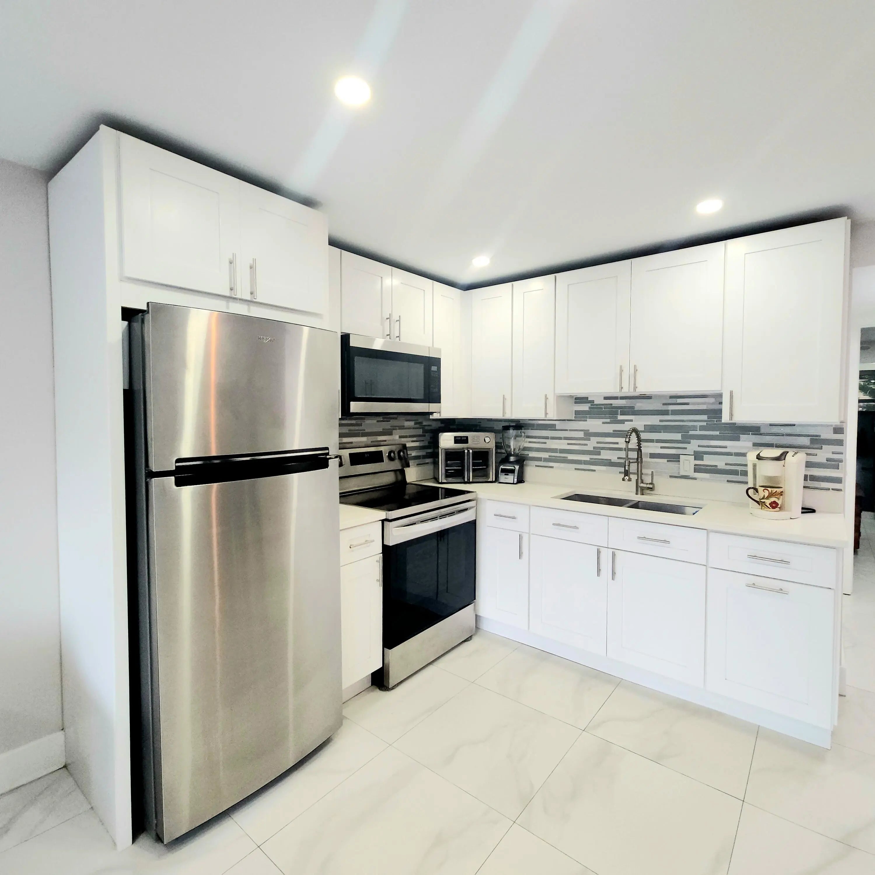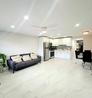 Spectacular renovated 1st floor condo in the active 55 community of Century Village. Rentable Immediately. Go through the nicely designed front door, to this large open concept living area with bright recessed lighting throughout the condo. All tiled floors, Kitchen features double sink newer appliances beautiful white cabinets with nicely done backsplash. Plenty of space in dining area and living area for entertaining all your family and friends. AC unit has heat for the cooler days and evening. Sparkling bathroom with pretty vanity and sliding glass shower door. Shower also has a convenient niche surrounded by stylish tile. Bath also has recessed lighting. Hallway has a large pantry and storage area. Impact windows to include bedroom slider door. The gorgeous furniture is included so just move right in. Century Village is a 55 and over community with plenty of activities for all to enjoy. Just to name a few: Clubhouse Amenities: -Shuffleboard -Bocci Ball -1200 seat theater for shows and movies. -Numerous clubs to join, to include trips in the US and Europe -Hasting's elite fitness center with complete, heated pool, the Lazy River resistance pool chair yoga, pool aerobics plus much more. -Sailing on the lakes of Century Village, don't know how to sail, no worries they have lessons. -Tennis/Pickleball -Indoor saltwater swimming pool, plus 8 swimming pools to choose from throughout the community -Duck Island with pier: picnics, barbeques, gatherings or just relaxation. -Community bus to transport you inside the village and outside the village for shopping, dining and much more. Hair salon, barber and manicure pedicure inside the village. -Library -Dance/Party room -Pool table and ping pong room -And so much, call me today for your private showing!