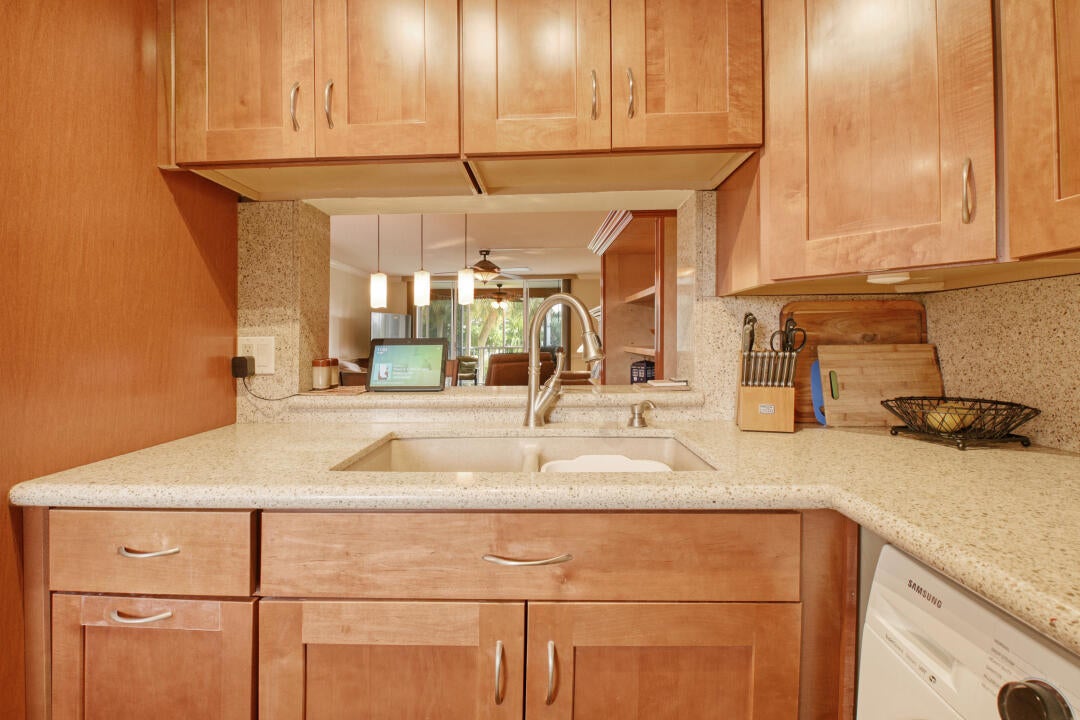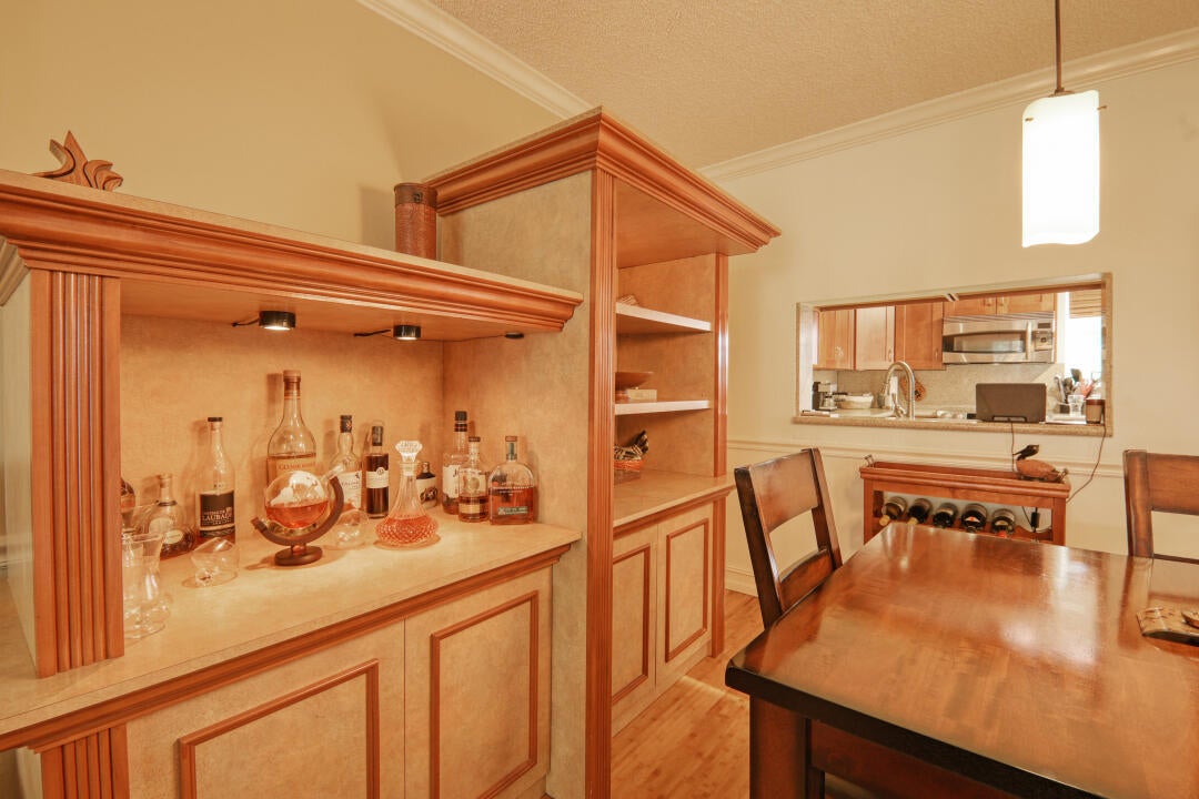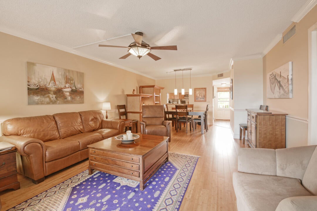 Look! A RARE GEM in desirable Tropic Isles neighborhood. 55+ community. Close to the beach, Atlantic Avenue, restaurants and shopping. Besides a serene garden view, this updated condo offers 42'' kitchen cabinets, silestone countertops, bamboo floors, crown mldg., W/D in unit as well as laundry room. Marina, 3 salt pools, 2 clubhouses, fitness center, carport, and much more. Don't wait to view this property. See it now.