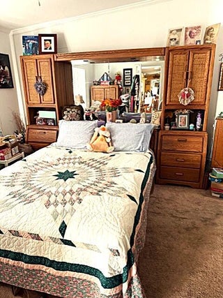 Beautiful well maintained 3 bedroom 2 bath manufactured home in Spanish Lakes Community with lake views. Custom Palm Harbor Model built in 2005 located at the end of a cul-de-sac. Home is 1,853 sqft of living with a den that could be a fourth bedroom with a separate entrance. Home features include drywall finish with extra insulation between walls and floor. Wood laminate floors in the family room, dining room and den. Title in kitchen and bathrooms. Island in kitchen with corian sink. Master suite has separate shower and jacuzzi tub. Family room has a wood burning fireplace. All stainless steel appliances and upgraded Cherry cabinets. Laundry room inside with large pantry. Brand new water heater, Brand New A/C unit and Home has 6 solar tubes for nature light throughout the home.Home comes partially furnished and a must see. Land Lease, buyer must be approved by the HOA to purchase. Home is in the pet section.