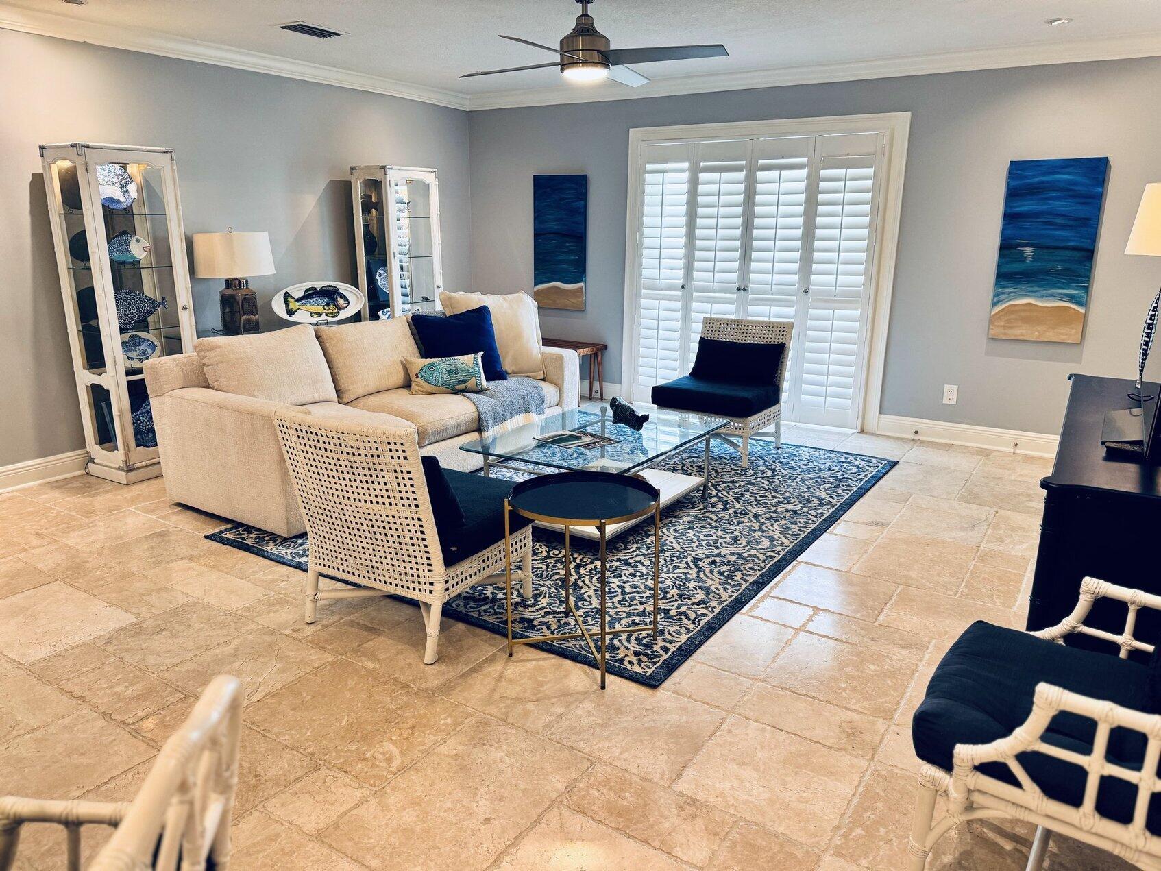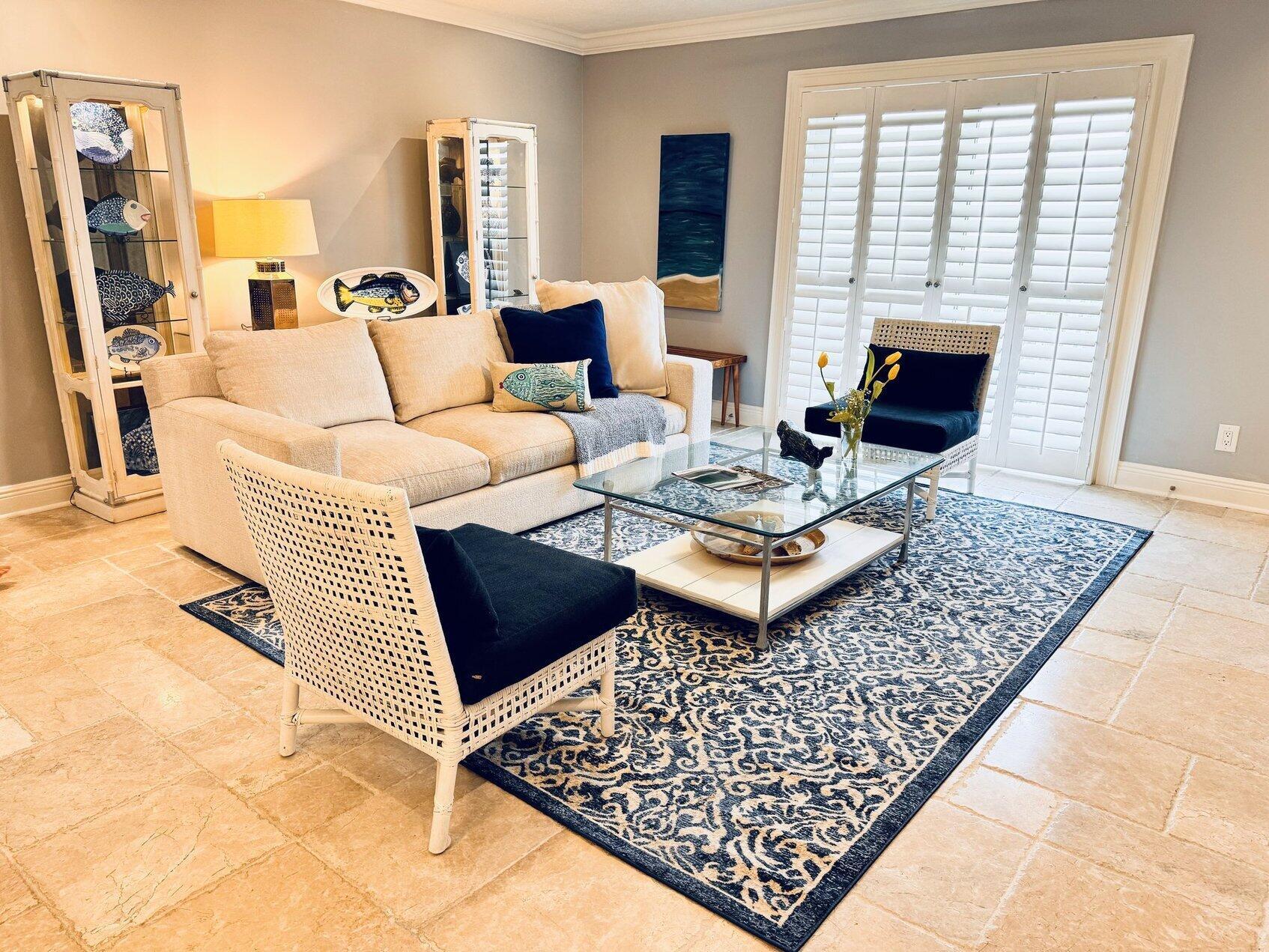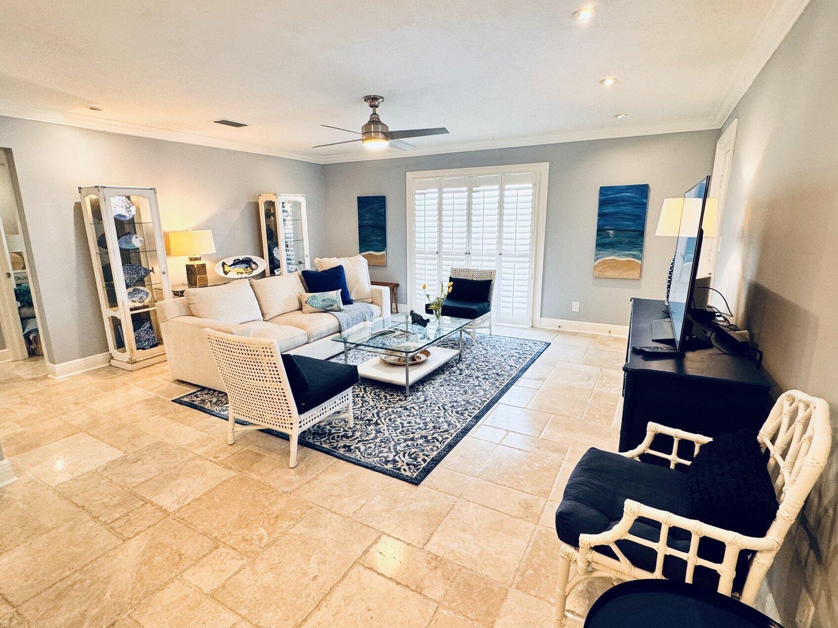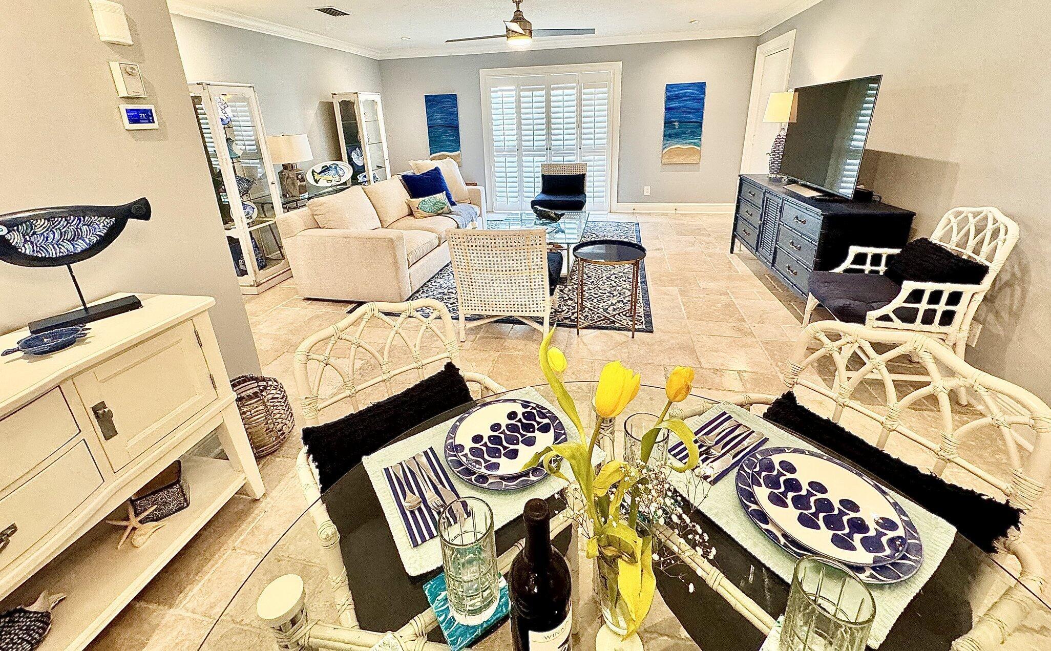 Furnished annual rental. This is a perfect beach get away on Old Ocean Blvd that is a scenic lane along the Atlantic Ocean. Available for 3-6 months. 2 bedroom two full baths and washer dryer inside the unit. Has Ocean Views from this second-floor balcony. Small, charming boutique complex only 20 units. This has been tastefully renovated and furnished and has gorgeous, chiseled marble floors throughout.