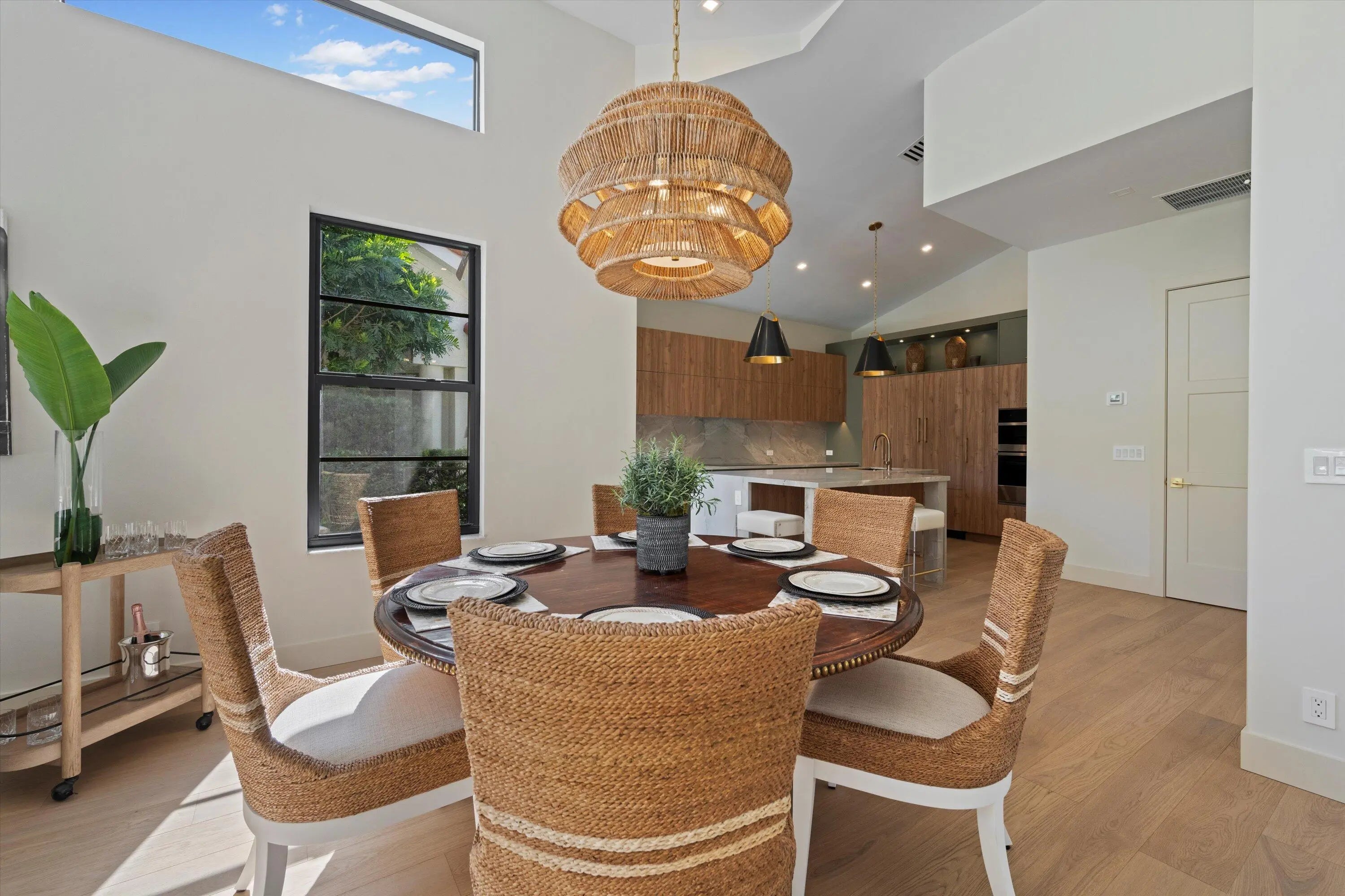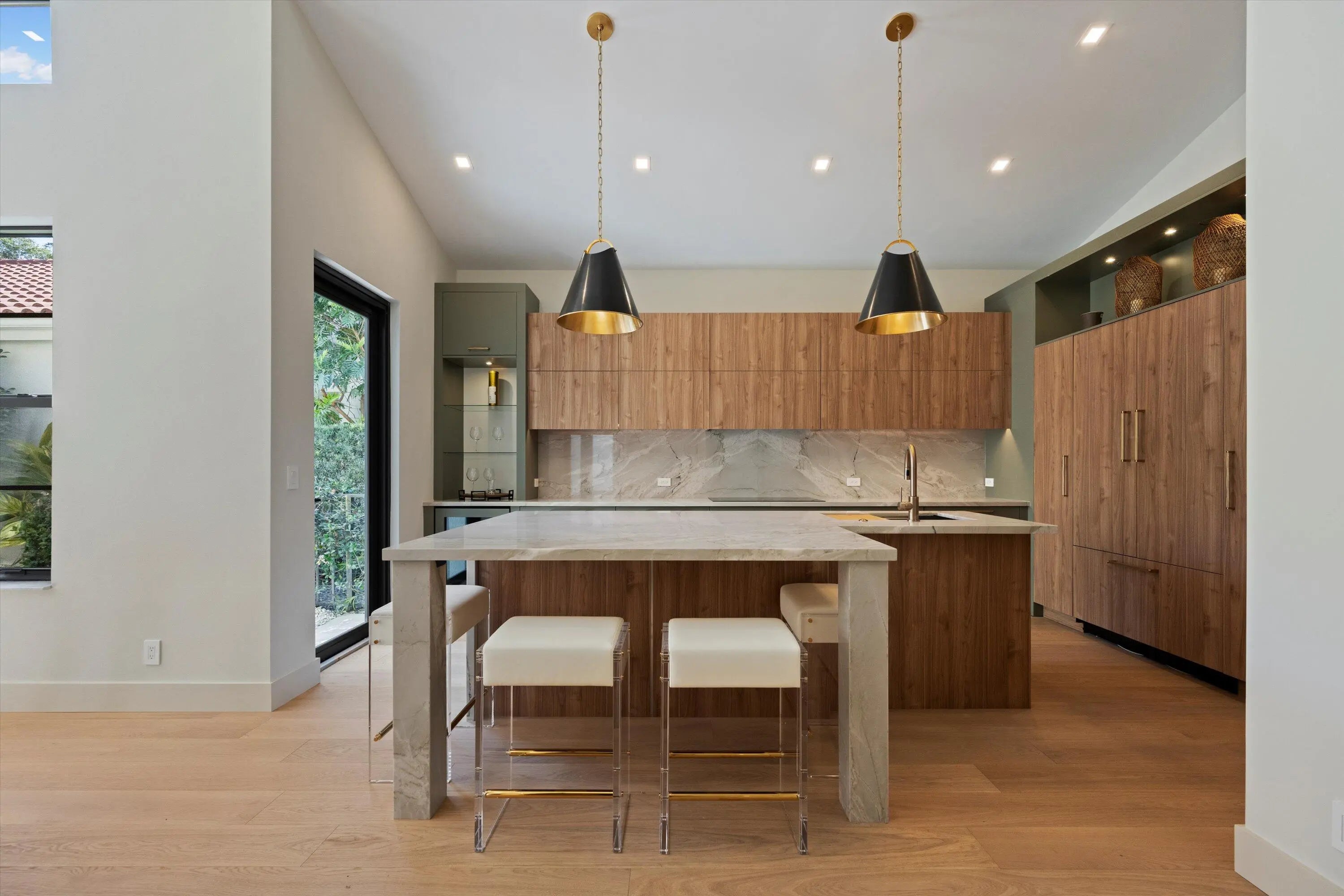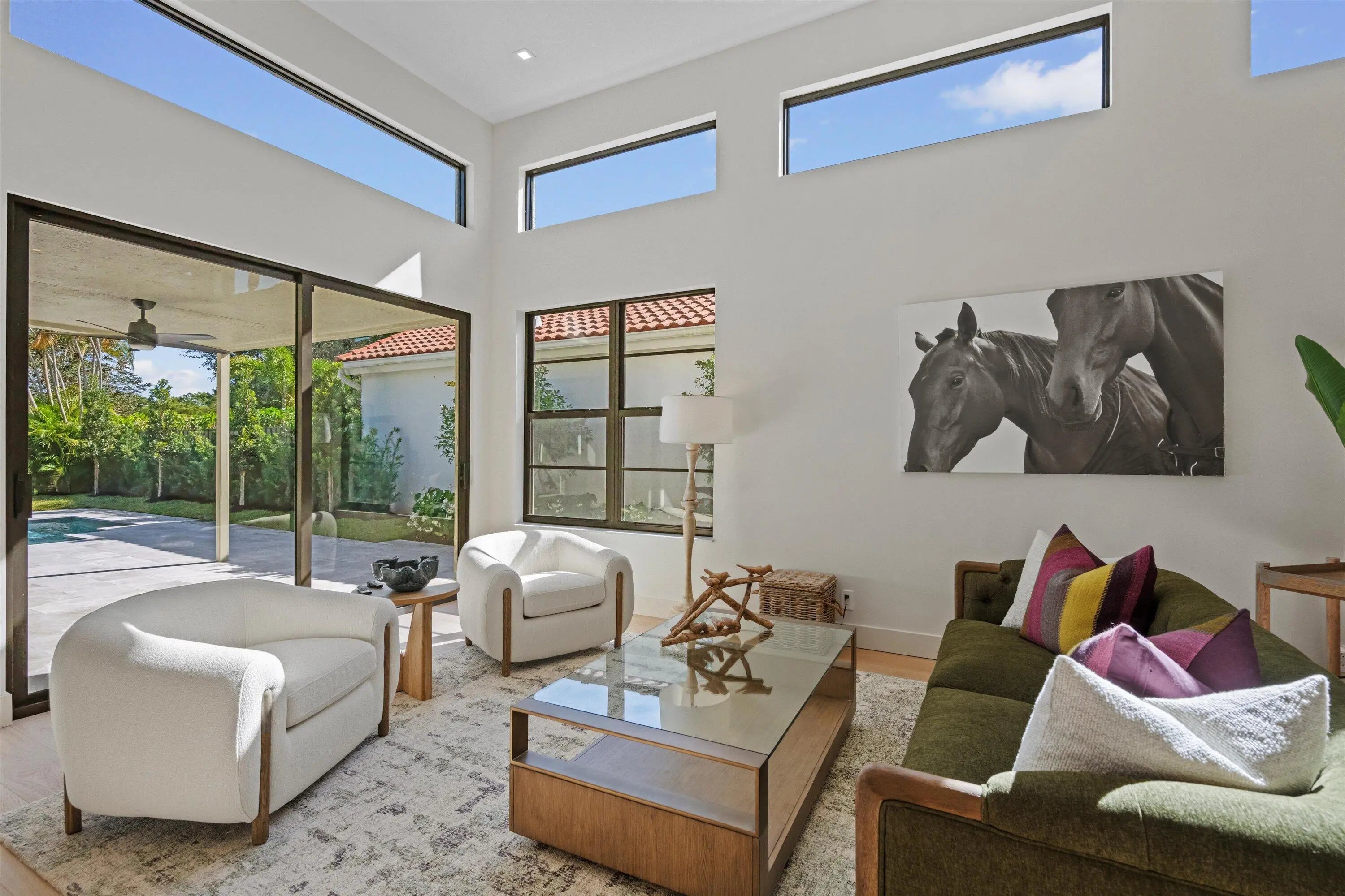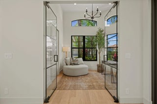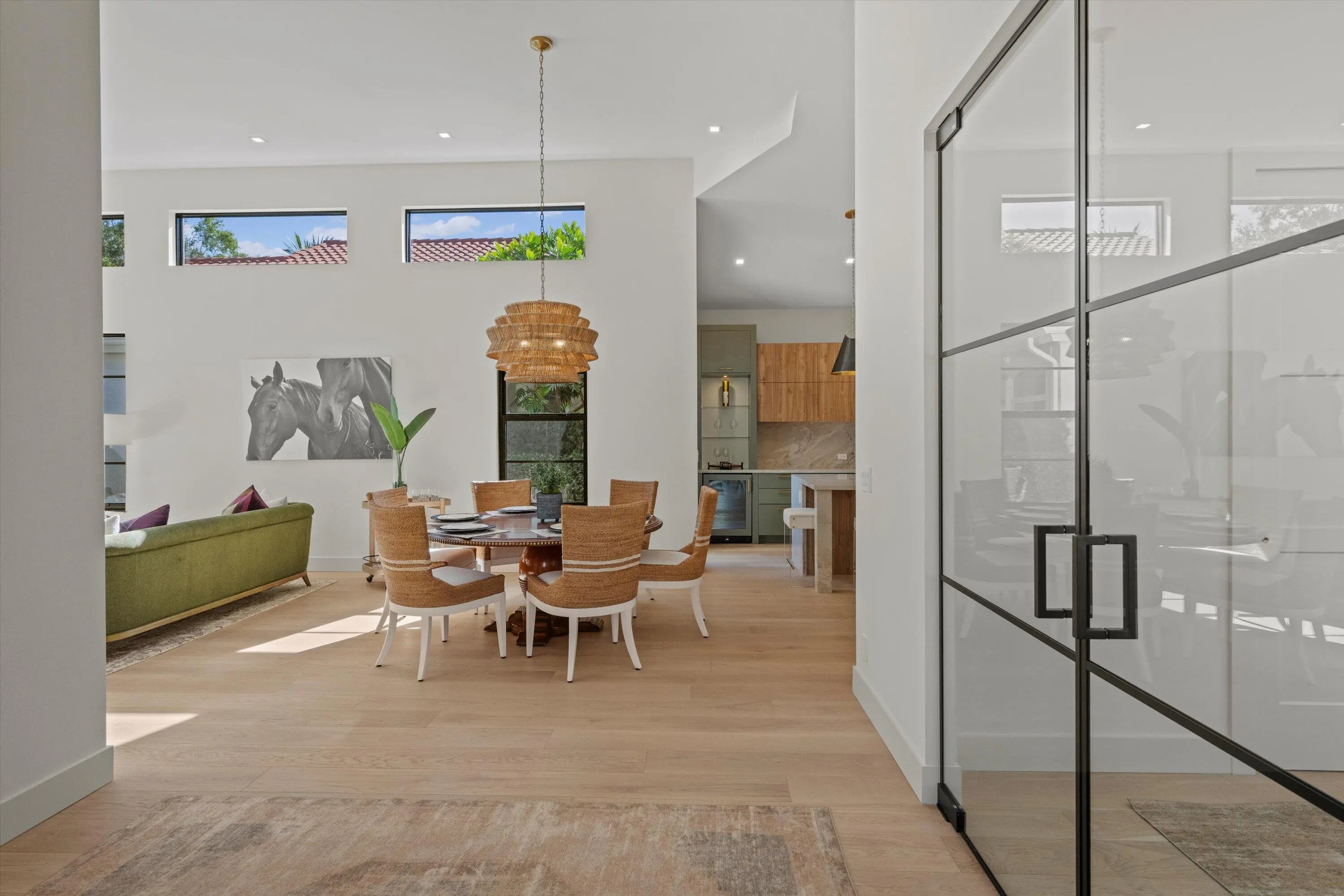 Exquisitely designed to embody Organic Modern sophistication, this residence celebrates natural materials, refined craftsmanship, and effortless elegance.Nestled in the prestigious Chukker Cove of the Palm Beach Polo gated community, this 3-bedroom, 2-bathroom home spans 1,822 sq. ft. of meticulously curated living space and is offered fully turn-key--move-in ready for the discerning buyer.The chef's kitchen is a statement of style and function, featuring bespoke cabinetry, premium JennAir appliances, and a 42'' fully integrated armoire refrigerator with a sleek black interior. Quartzite countertops, a wine bar, and an under-counter beverage center elevate entertaining to an art form.Throughout the home, engineered French oak flooring, custom glass French doors,