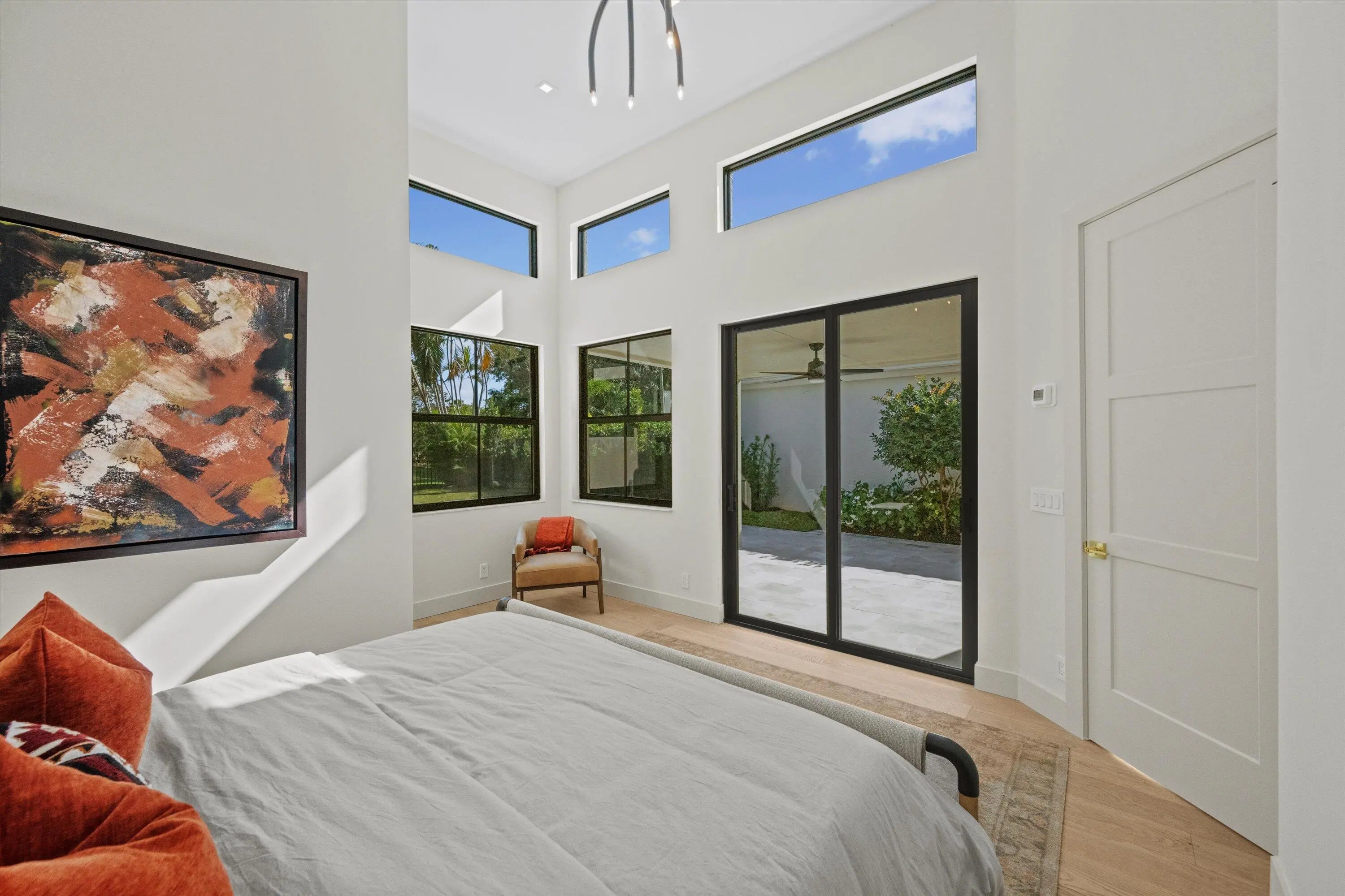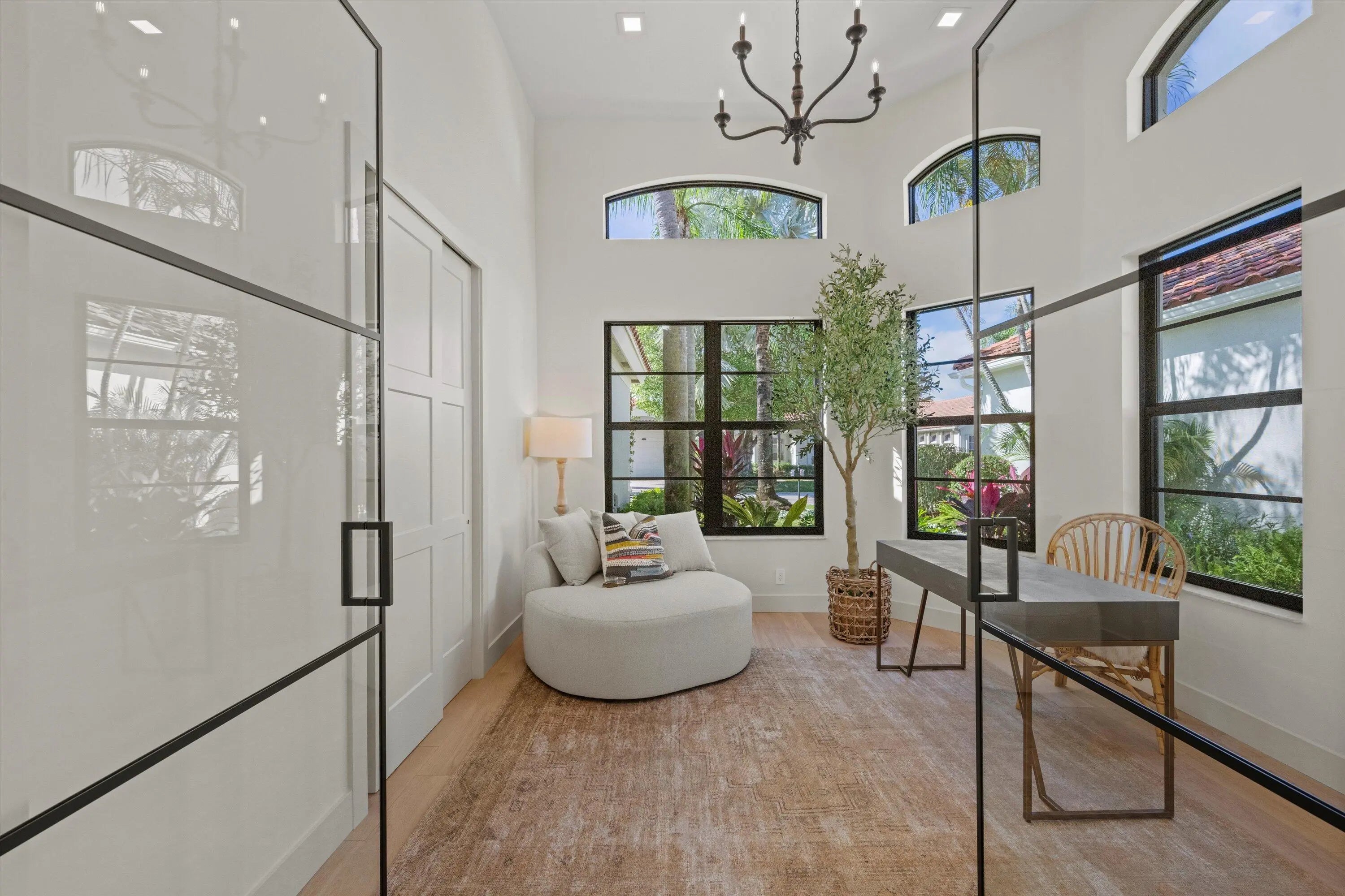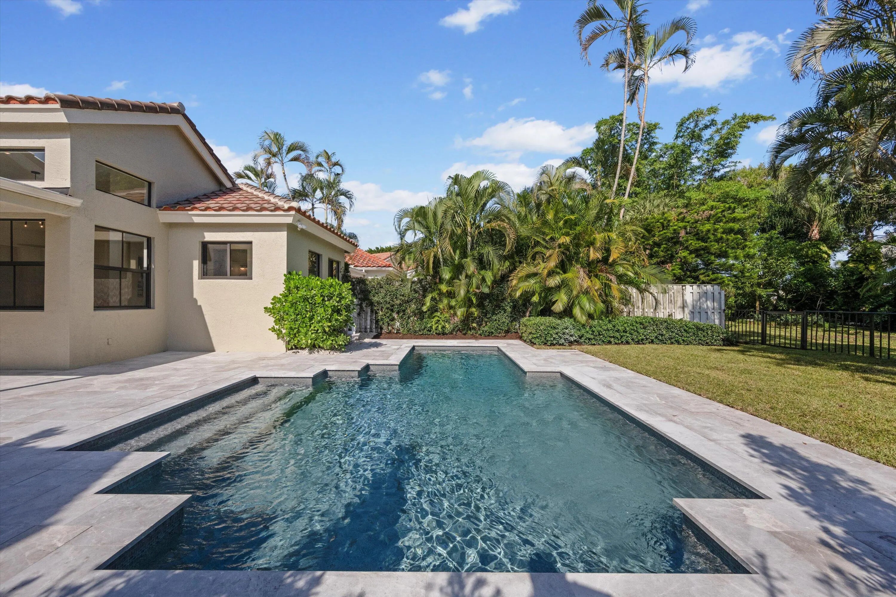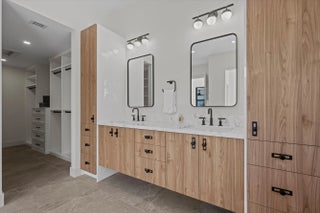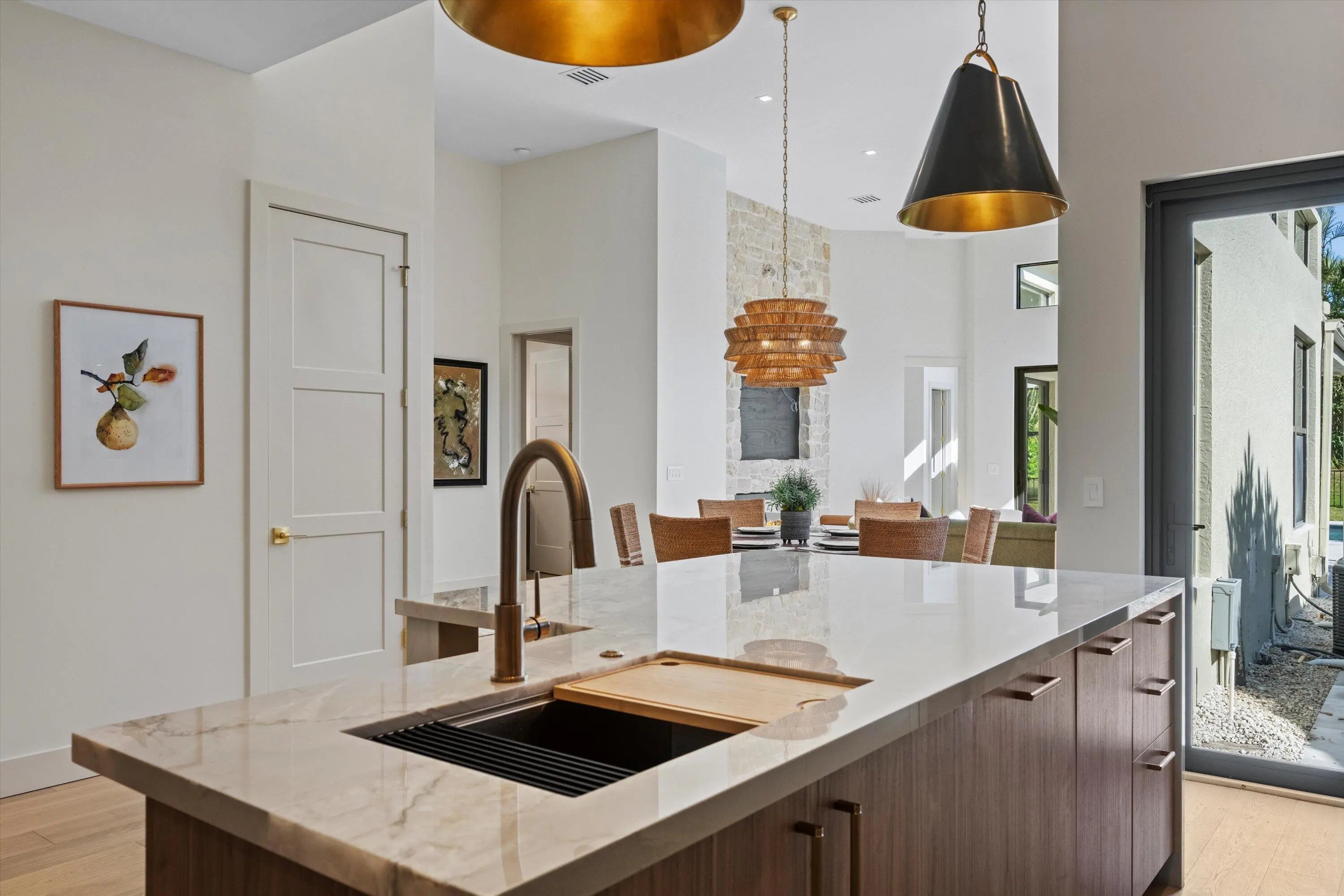 Exquisitely designed to embody Organic Modern sophistication, this residence celebrates natural materials, refined craftsmanship, and effortless elegance.Nestled in the prestigious Chukker Cove of the Palm Beach Polo gated community, this 3-bedroom, 2-bathroom home spans 1,822 sq. ft. of meticulously curated living space and is offered fully turn-key--move-in ready for the discerning buyer.The chef's kitchen is a statement of style and function, featuring bespoke cabinetry, premium JennAir appliances, and a 42'' fully integrated armoire refrigerator with a sleek black interior. Quartzite countertops, a wine bar, and an under-counter beverage center elevate entertaining to an art form.Throughout the home, engineered French oak flooring, custom glass French doors,