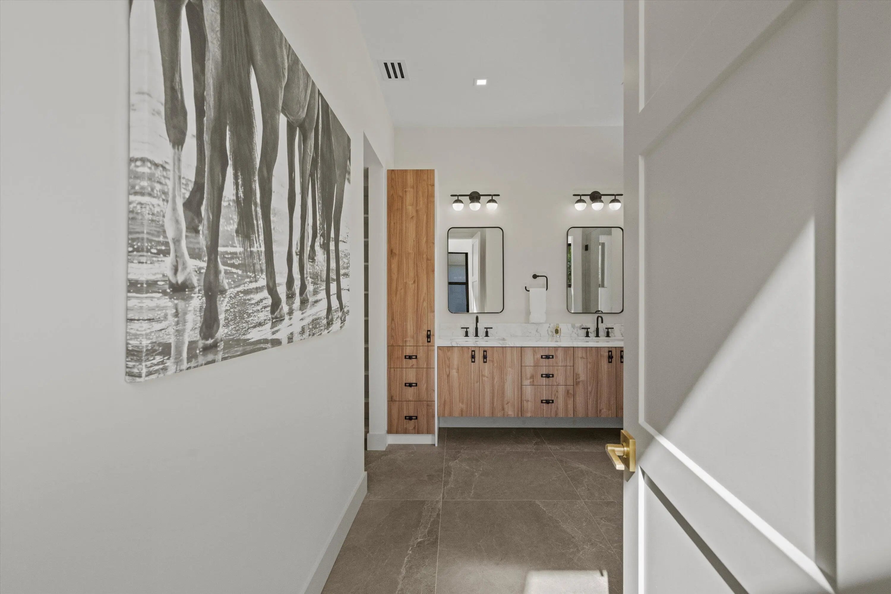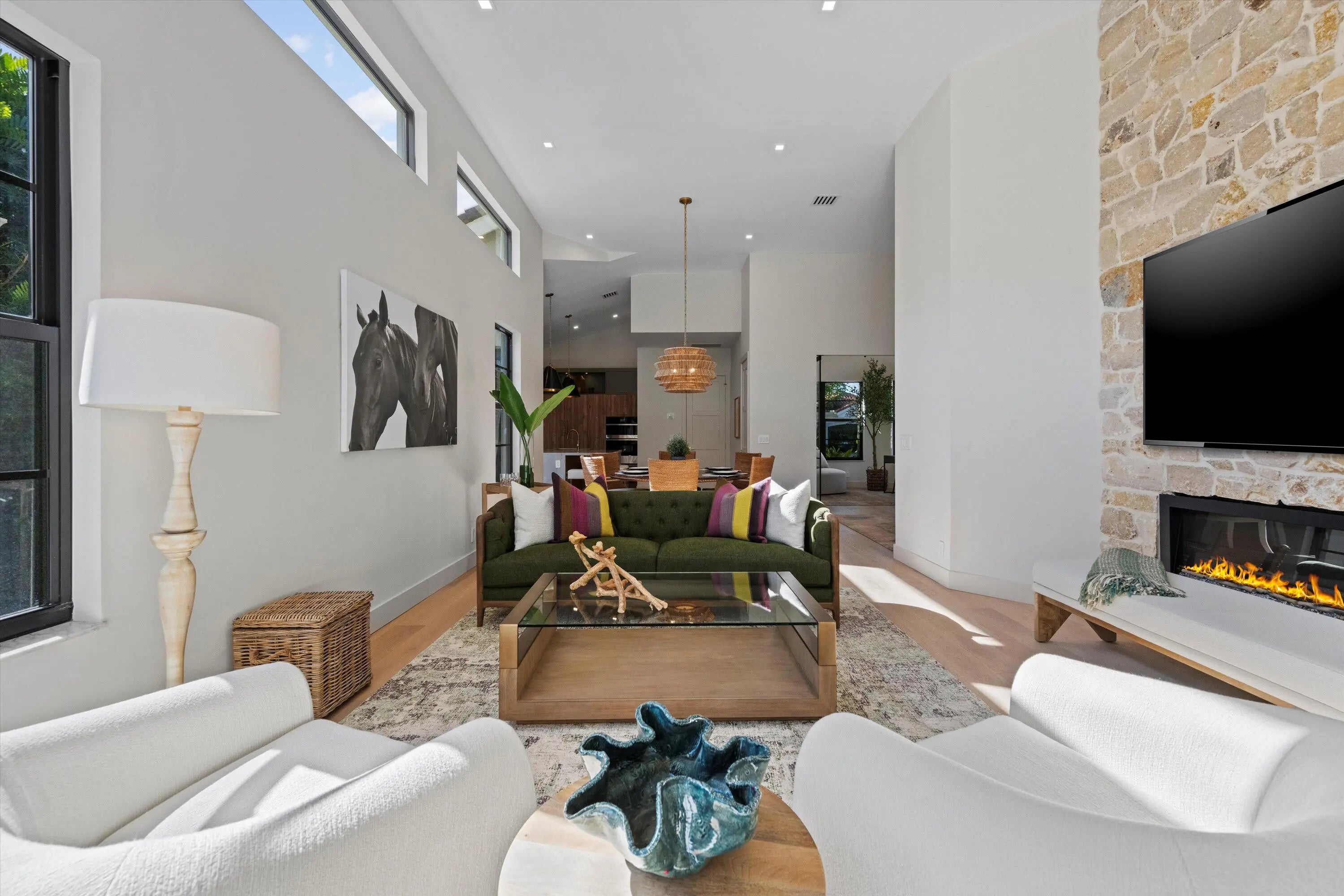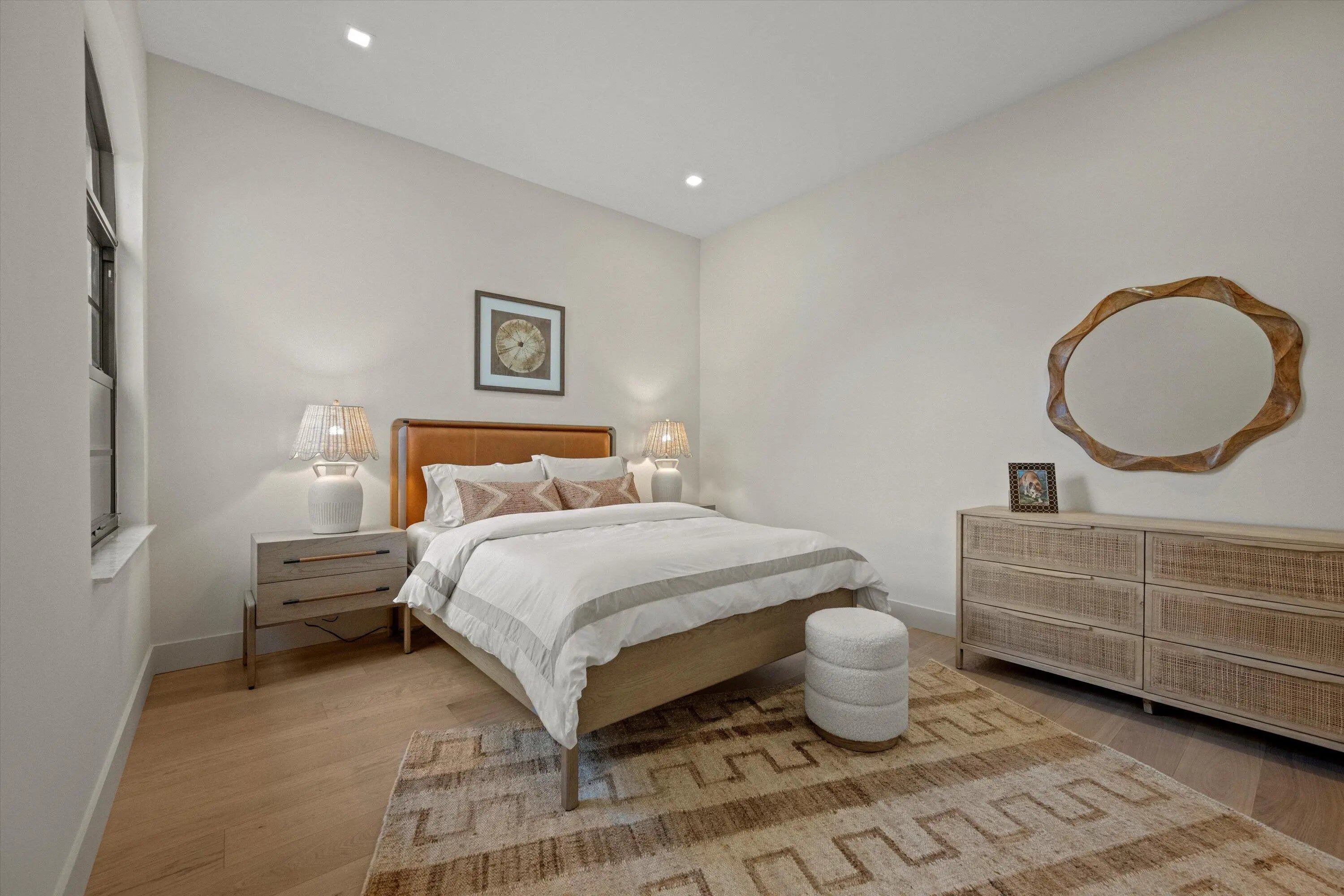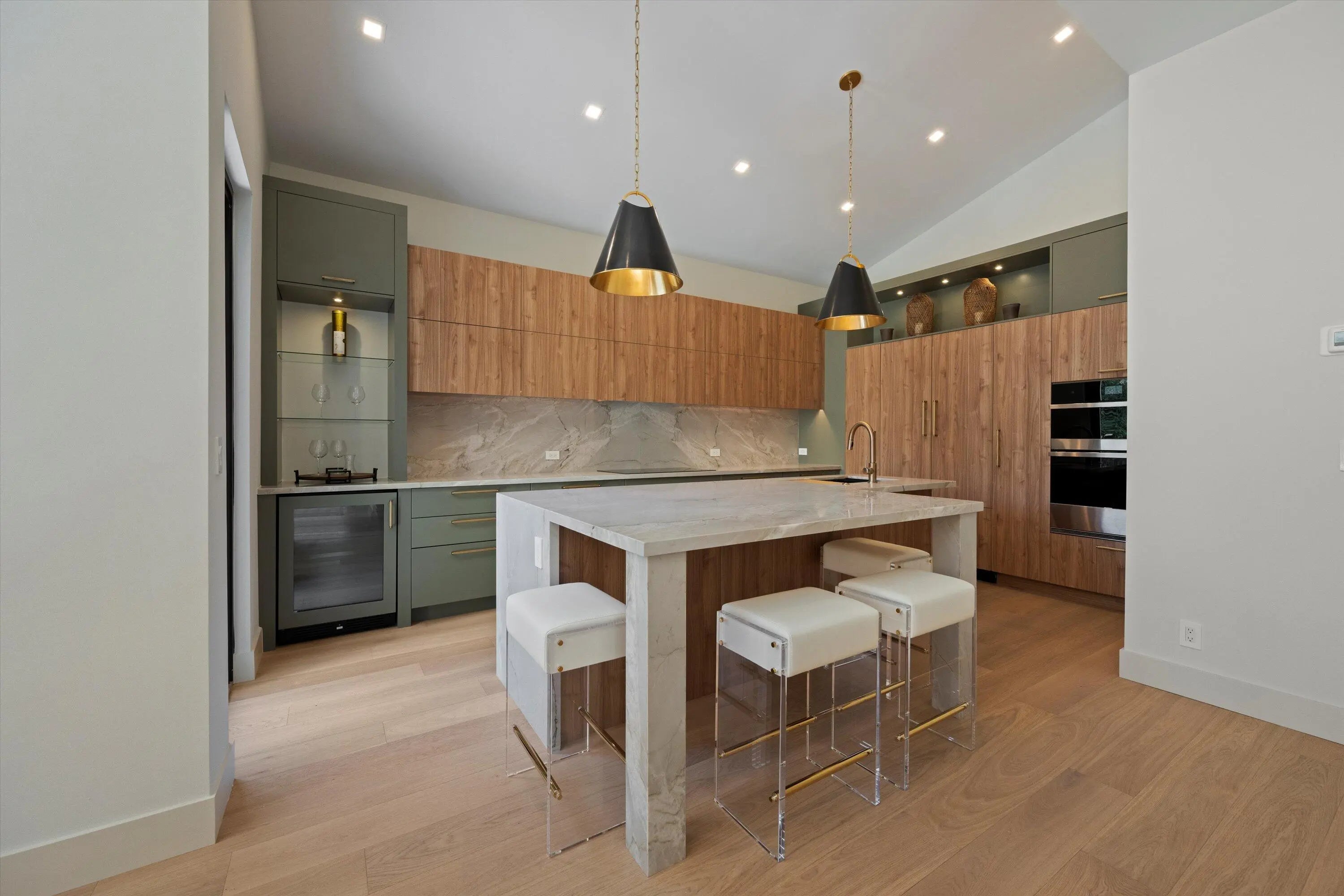 Exquisitely designed to embody Organic Modern sophistication, this residence celebrates natural materials, refined craftsmanship, and effortless elegance.Nestled in the prestigious Chukker Cove of the Palm Beach Polo gated community, this 3-bedroom, 2-bathroom home spans 1,822 sq. ft. of meticulously curated living space and is offered fully turn-key--move-in ready for the discerning buyer.The chef's kitchen is a statement of style and function, featuring bespoke cabinetry, premium JennAir appliances, and a 42'' fully integrated armoire refrigerator with a sleek black interior. Quartzite countertops, a wine bar, and an under-counter beverage center elevate entertaining to an art form.Throughout the home, engineered French oak flooring, custom glass French doors,