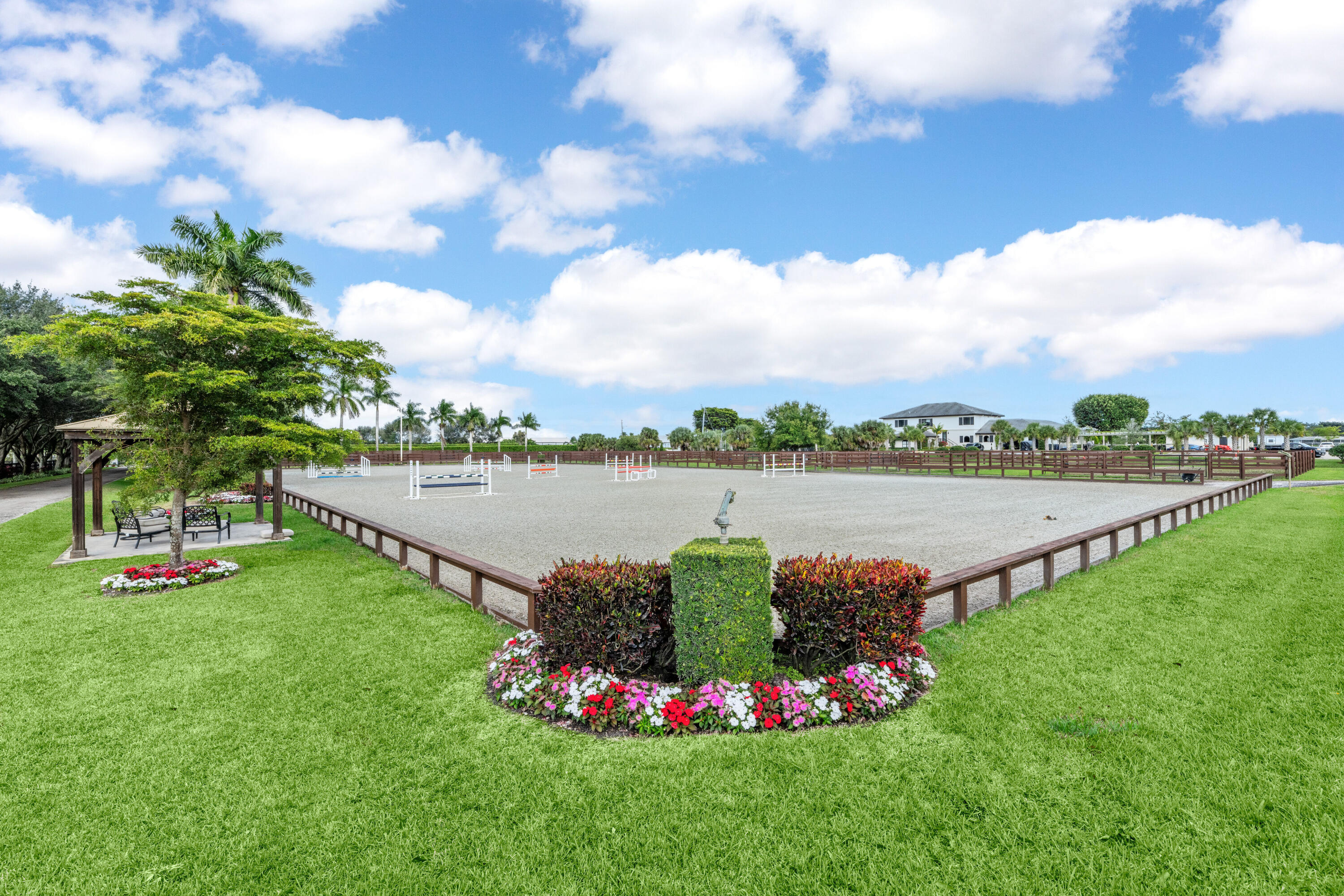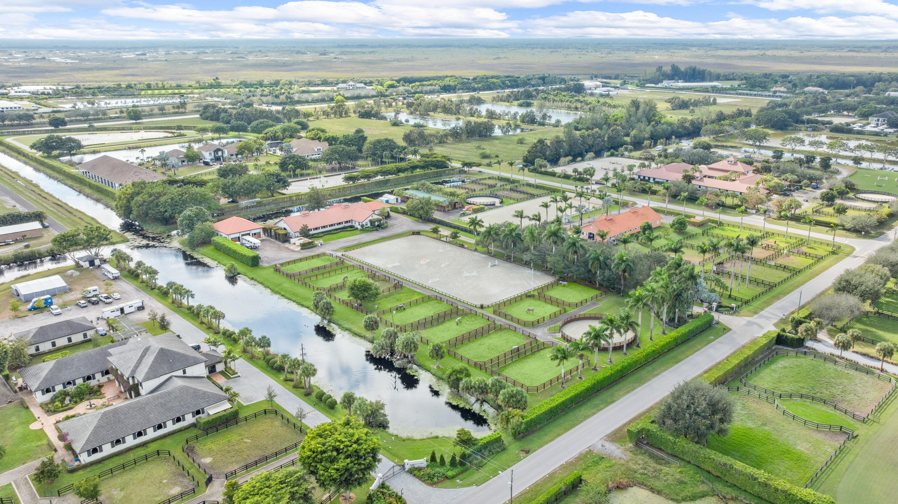 🌟 A rare equestrian jewel in Wellington's most coveted location! Positioned minutes from the new South entrance to WEF and Parcel F, where the show expansion is redefining the equestrian experience, this 5-acre estate offers unparalleled prestige and performance.Step inside a world-class facility boasting 23 custom stalls, 9 manicured paddocks, a professional round pen, and a spectacular 136' x 270' riding arena completed in 2023. Designed for both elegance and efficiency, the property also features 2+ bedroom staff quarters, RV accommodations, dual tack rooms, dual laundry centers, and a dedicated storage building for hay, grain, trunks, and more.✨ The grand canopy entrance sets the tone--an architectural statement that is truly one-of-a-kind in Wellington. A Must See Pr