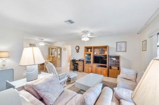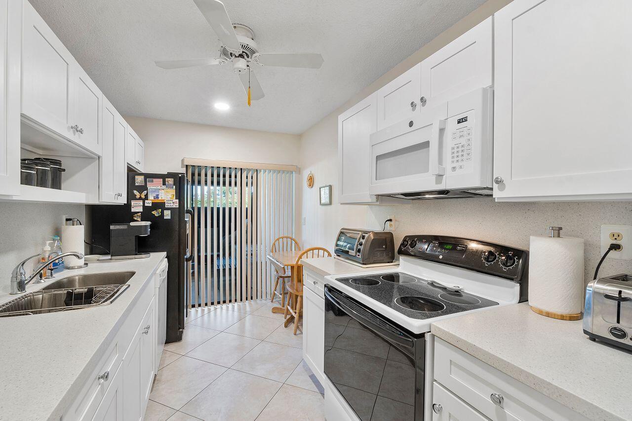 Enjoy easy Florida living in this California style 2 BR 2BA corner villa with WASHER/DRYER situated in High Point of Delray West Sec. 3. Centrally located in Delray Beach, this villa features a front screened patio entrance. The remodeled kitchen has white wood Shaker cabinets with quartzite countertops and a perfect space for a small kitchen table or coffee bar. The living areas have large diagonal tile blending seamlessly with the leveled and enclosed air-conditioned Florida room which also serves as a Family Room. The laundry closet in the hallway features a full size washer/dryer. The walk-in primary closet has pull-down stairs leading to great attic storage. Both bedrooms are carpeted. No current assessments in Section 3