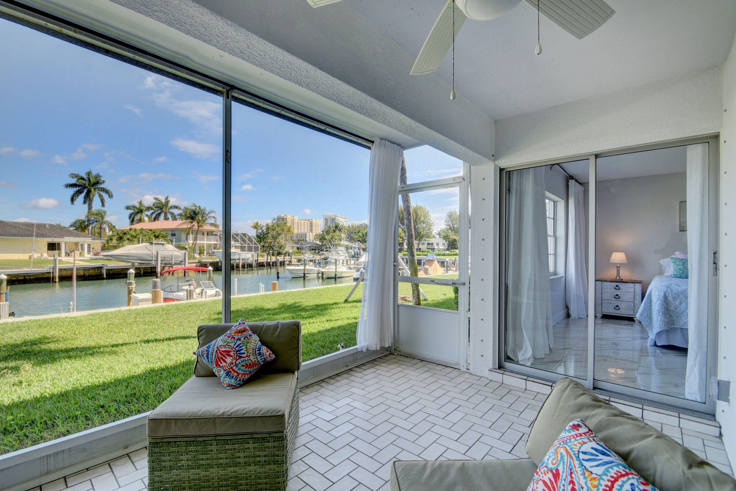 Available for Lease April 1, 2025- December 31, 2025! Rarely available 1st floor waterfront home with large screened patio. As you enter the home you will notice the white & bright updated open kitchen and white marble look modern marble flooring throughout. A large great room overlooks your water/marina view and oversized screened patio. Two large bedrooms complete this perfect island home in one of the most desirable locations, Singer Island. The master bathroom features a large stall shower and walk in closet. The guest bathroom features a tub/shower. The community boasts deeded beach access, a large community clubhouse with the largest pool on Singer Island. This is a TURNKEY listing. Rented turnkey for 3 months min.