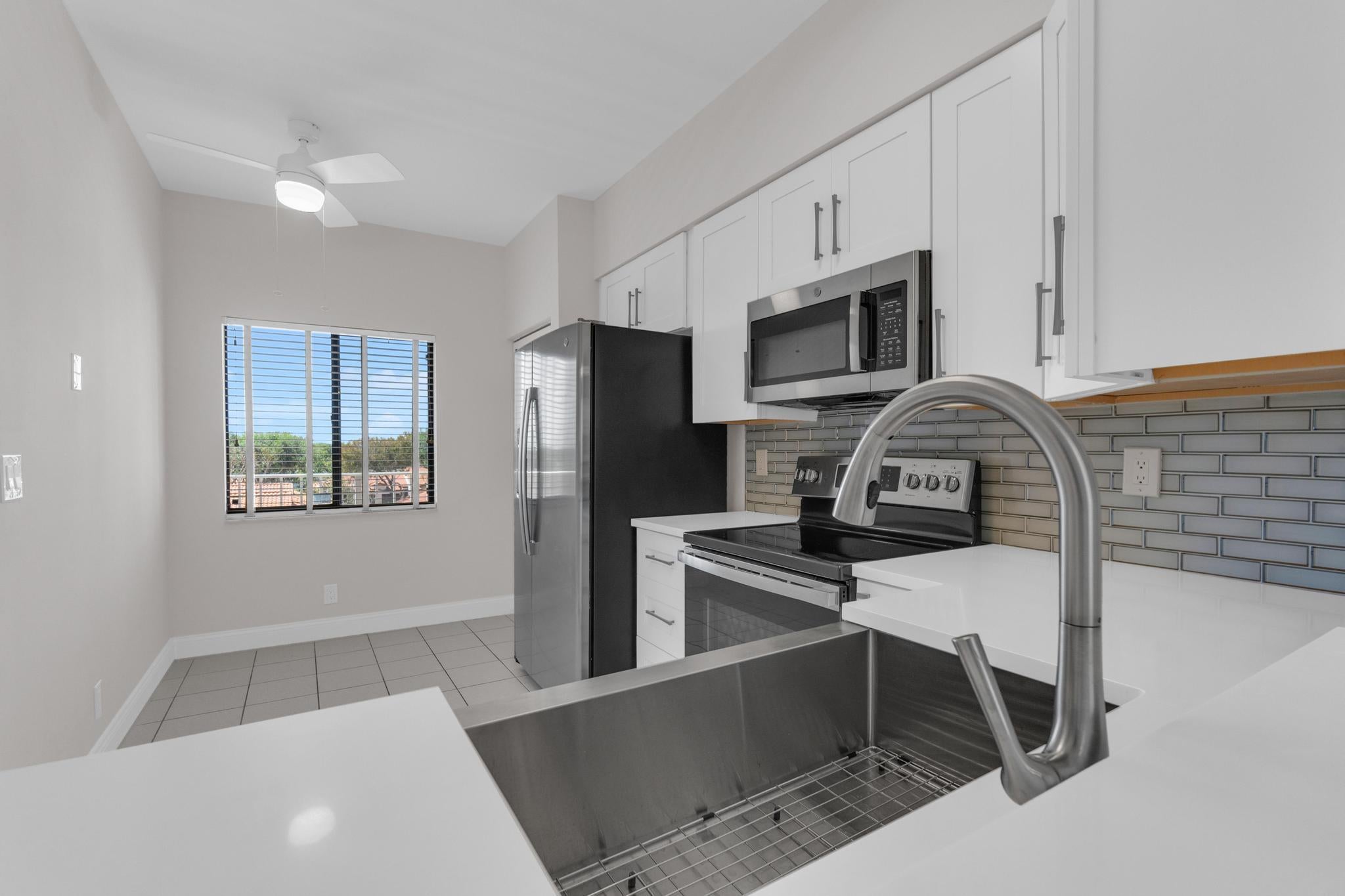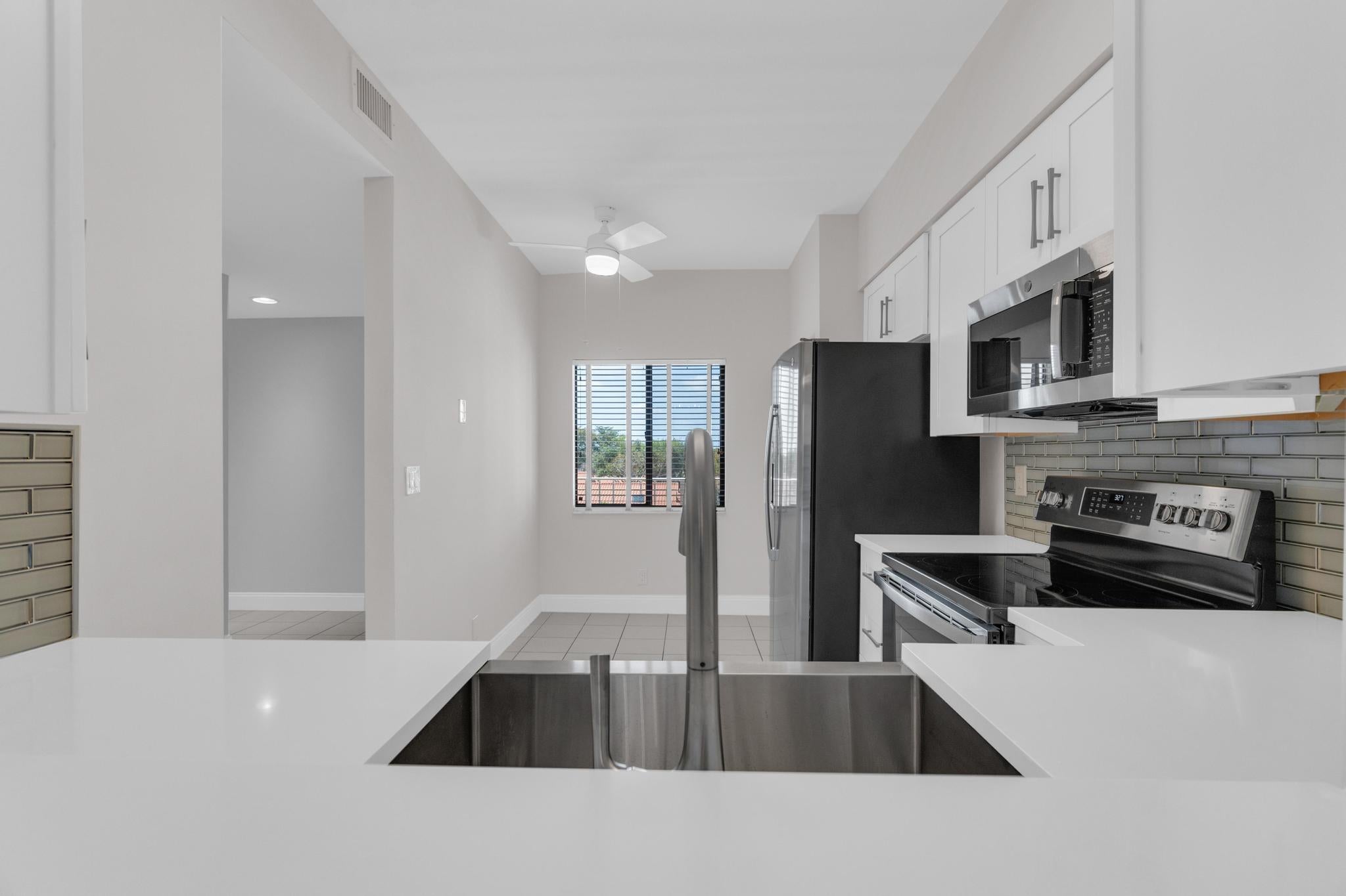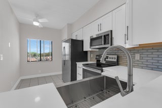 Priced for immediate sale, fantastic deal for a remodeled Penthouse unit. Resort style Active 55+ community. Top floor unit with extra tall ceilings, classy updates, brand new kitchen, baths, A/C, graceful and stylish millwork, natural marble bath. Elegant finishes, not a cookie-cutter. Dining and MBR crystal fan-chandelier are included. In-unit Washer/Dryer, balcony overlooks lake scenery.