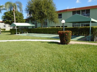 Very clean 2 bedroom 1.5 bath unit. Great view from the screened porch. Laminate floor in the living room carpet in the bedrooms.All the furniture stays. Regal Palms is an active 55+ community featuring clubhouse, pool, shuffleboard billiards and more. Well maintained grounds centrally located near shopping, airport, beaches and pharmacy.All figures are approximate.
