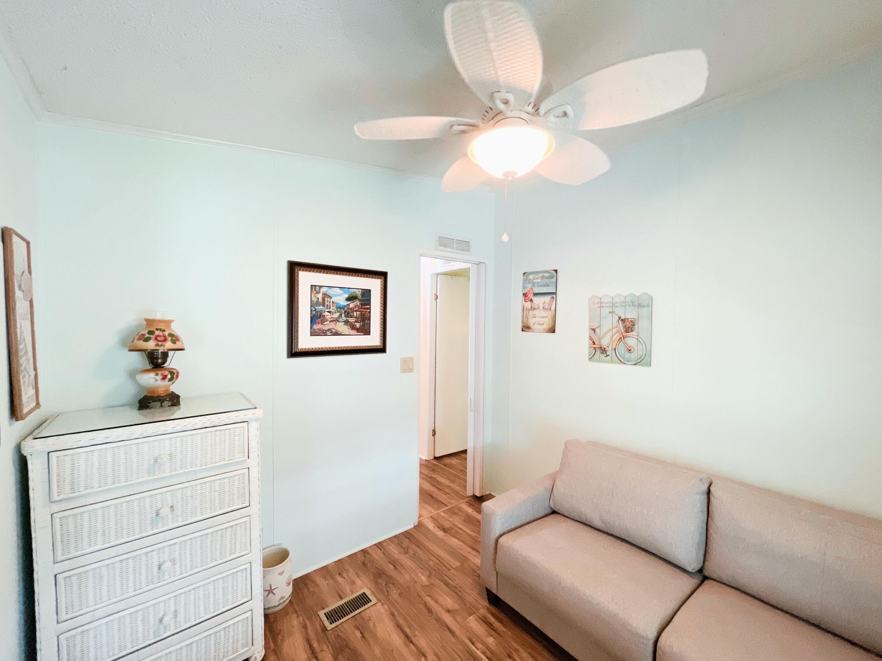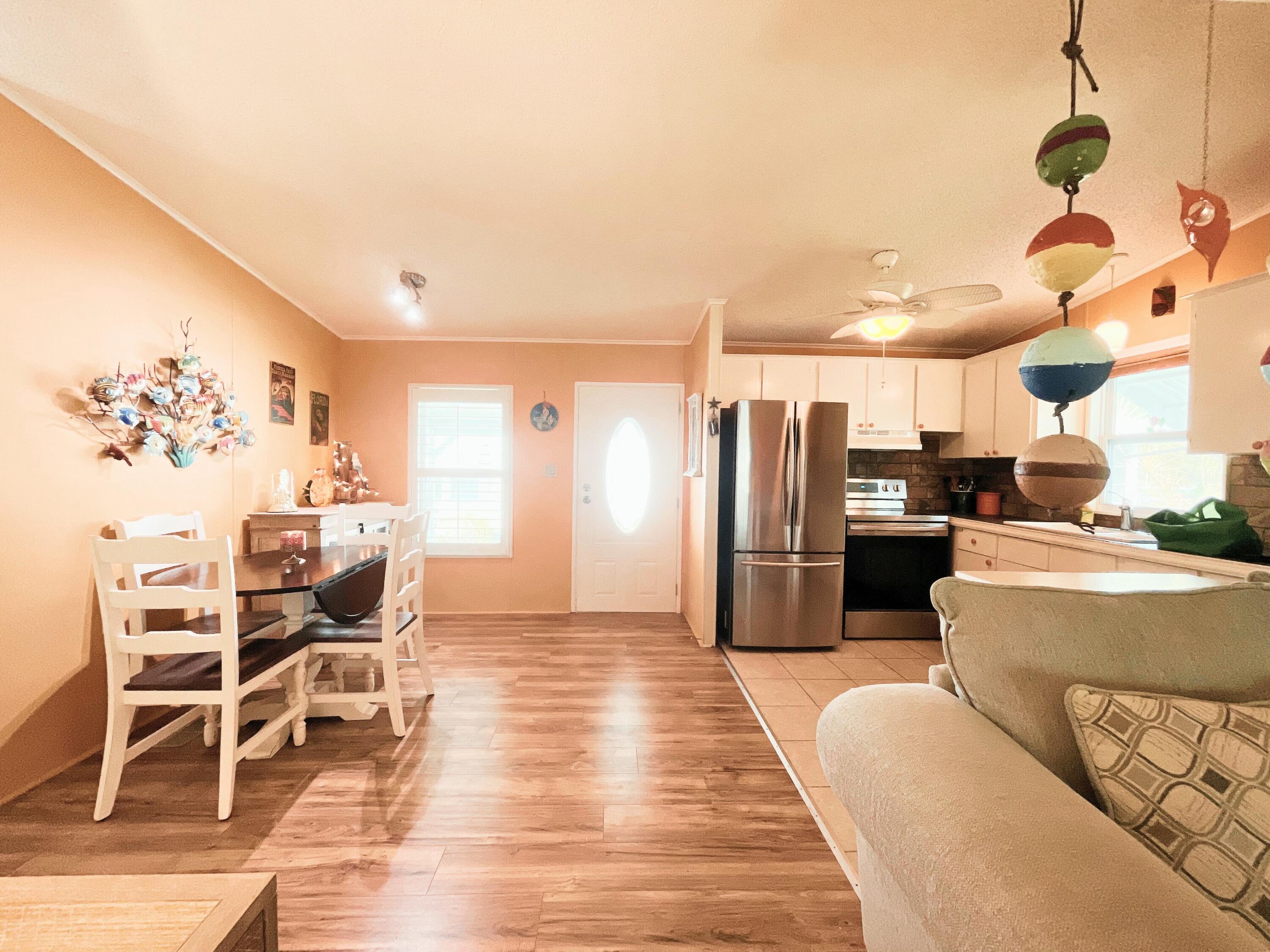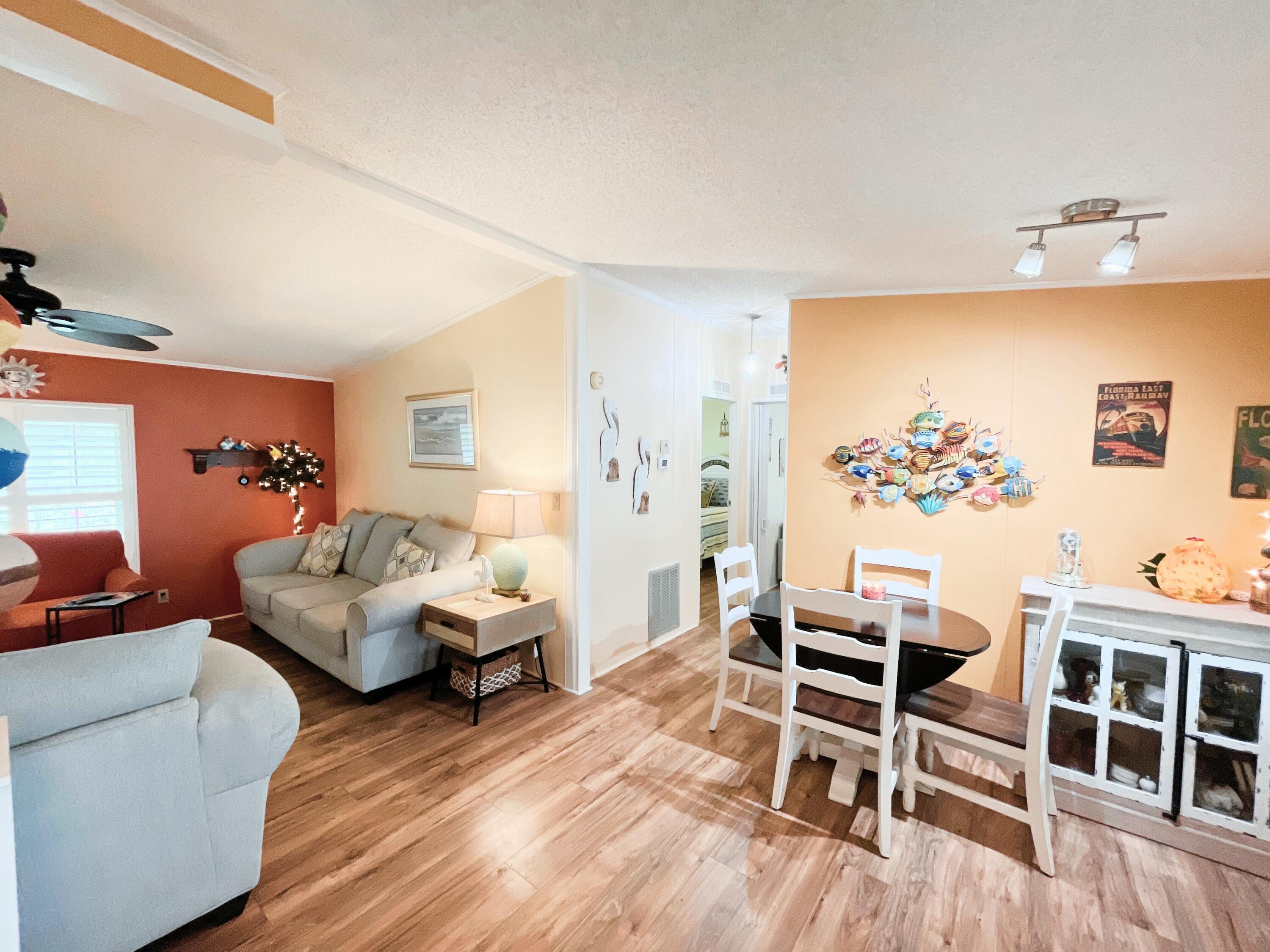 MOTIVATED SELLER! Bring your offers! Semi-private yard with tree-lined rear view. This 2-bedroom, 2-bath home in the sought-after Tropical Isles 55+ community offers comfort and modern updates. Featuring a 2021 AC, 2019 roof, and 2018 windows and doors, this home is well-maintained and ready for new owners. Both bathrooms were beautifully updated in 2018. The kitchen boasts new stainless steel appliances (no dishwasher), and the enclosed east-facing sun porch is perfect for enjoying morning coffee or peaceful afternoons. New plantation shutters add style and privacy throughout. A brand-new 2025 vapor barrier enhances durability. Outside, the double-wide driveway provides ample parking. Land lease is $608/month. Schedule your showing today.