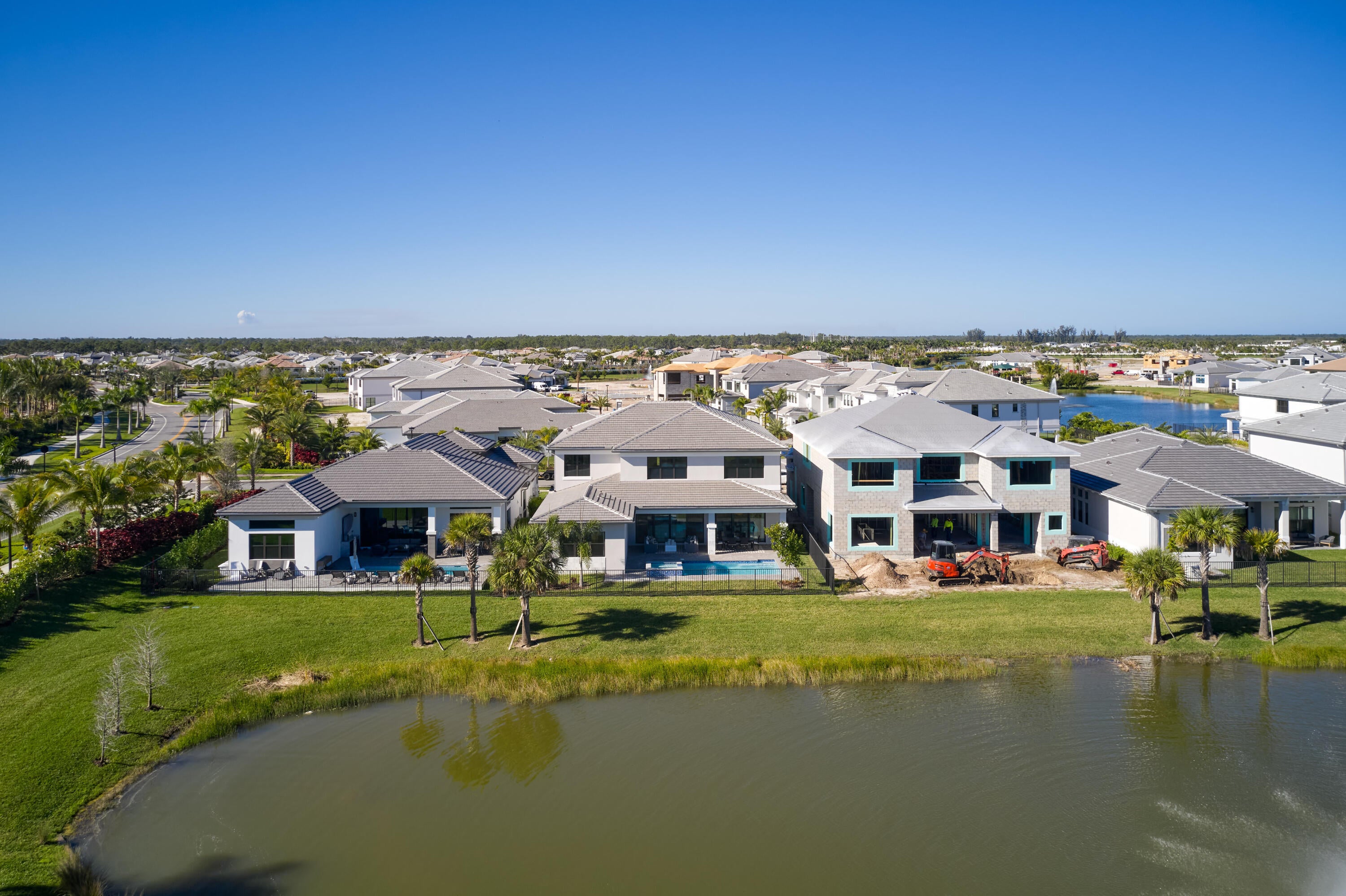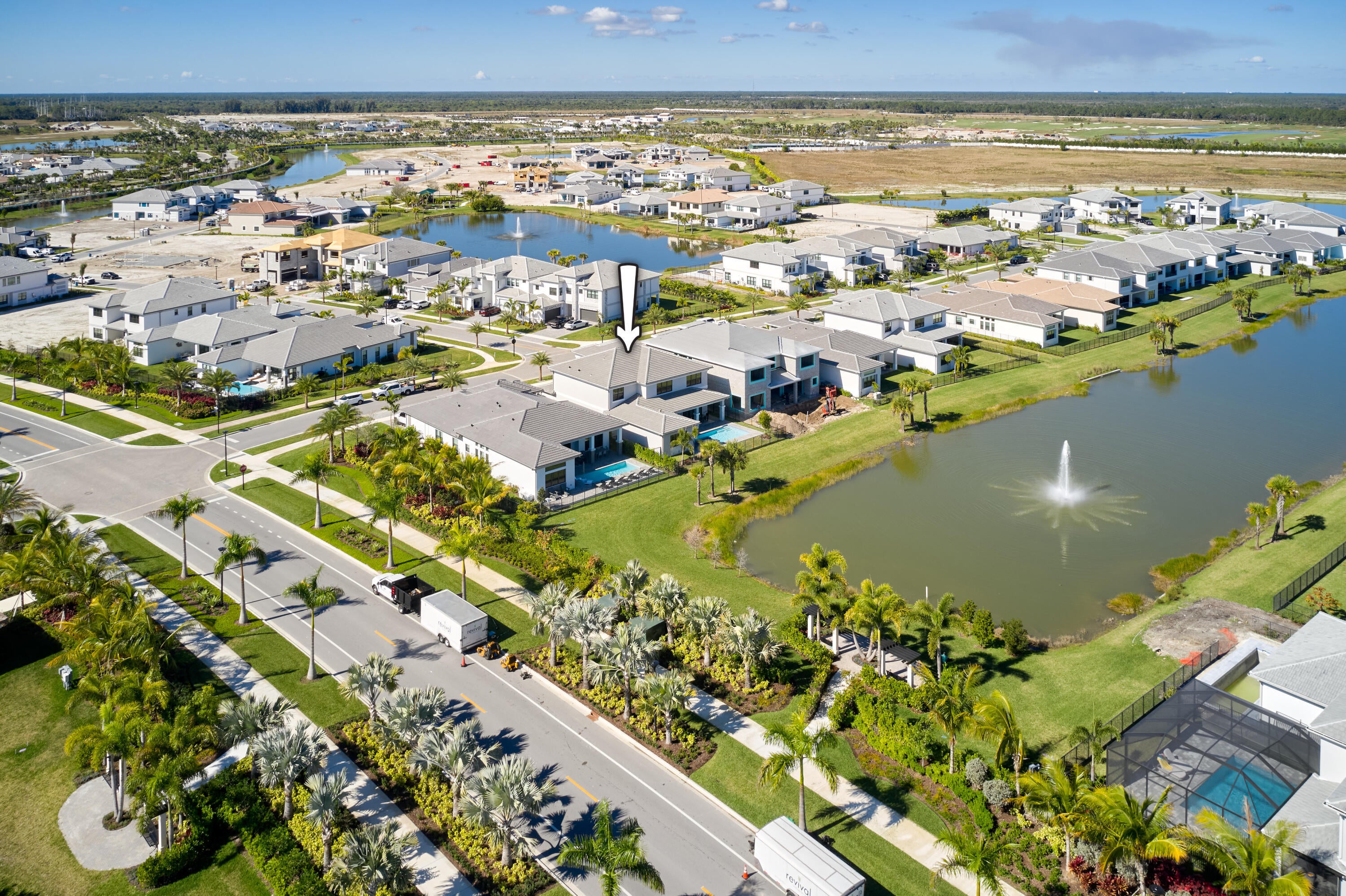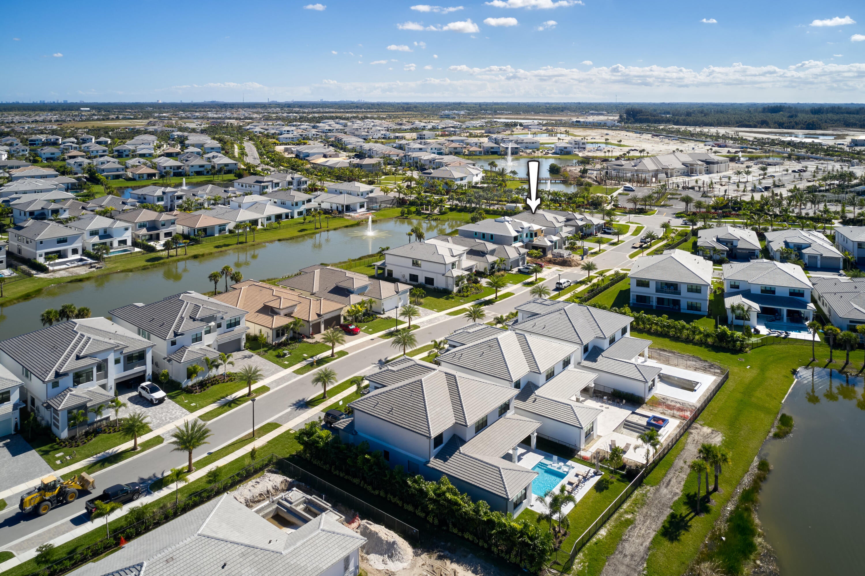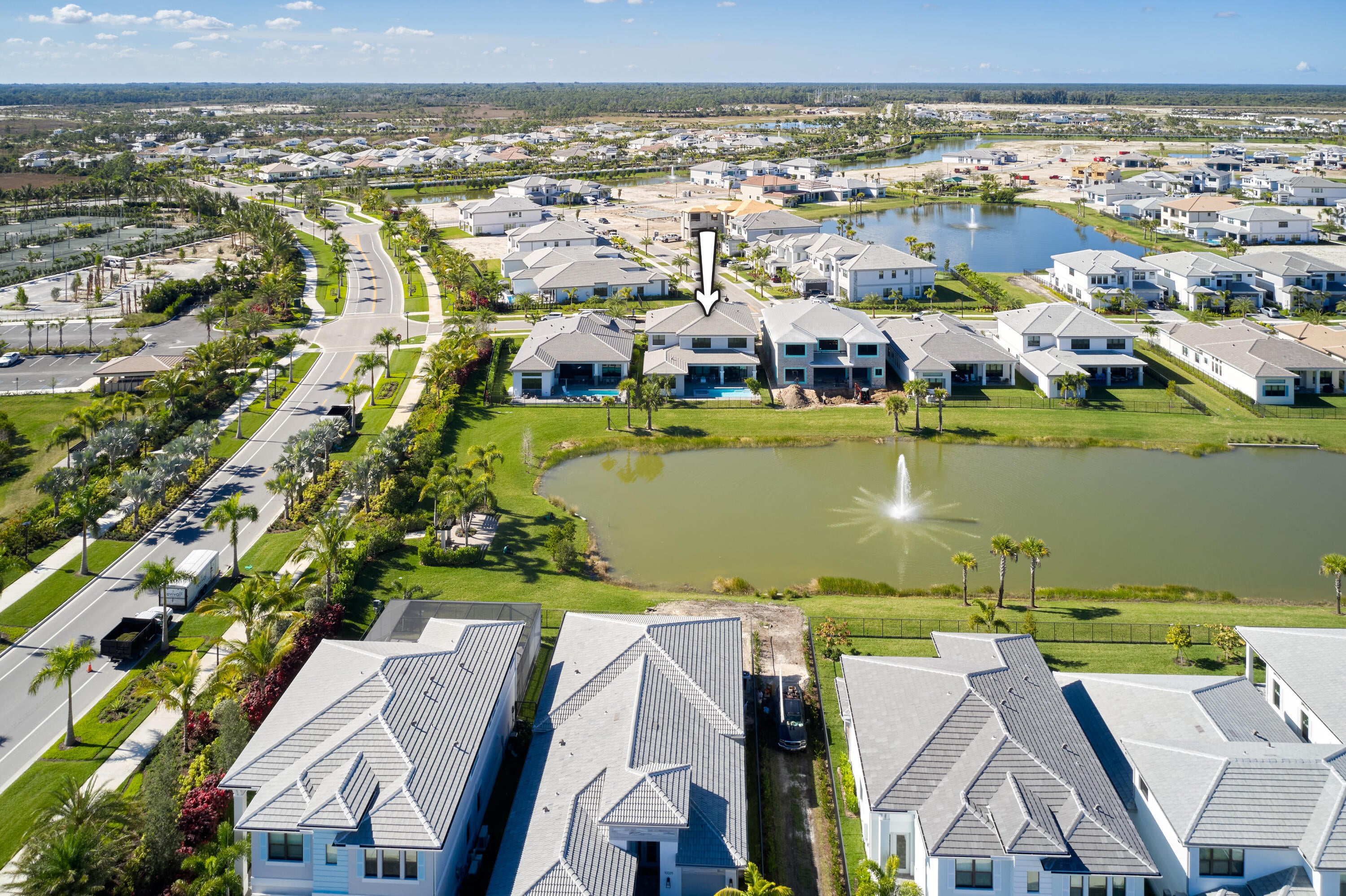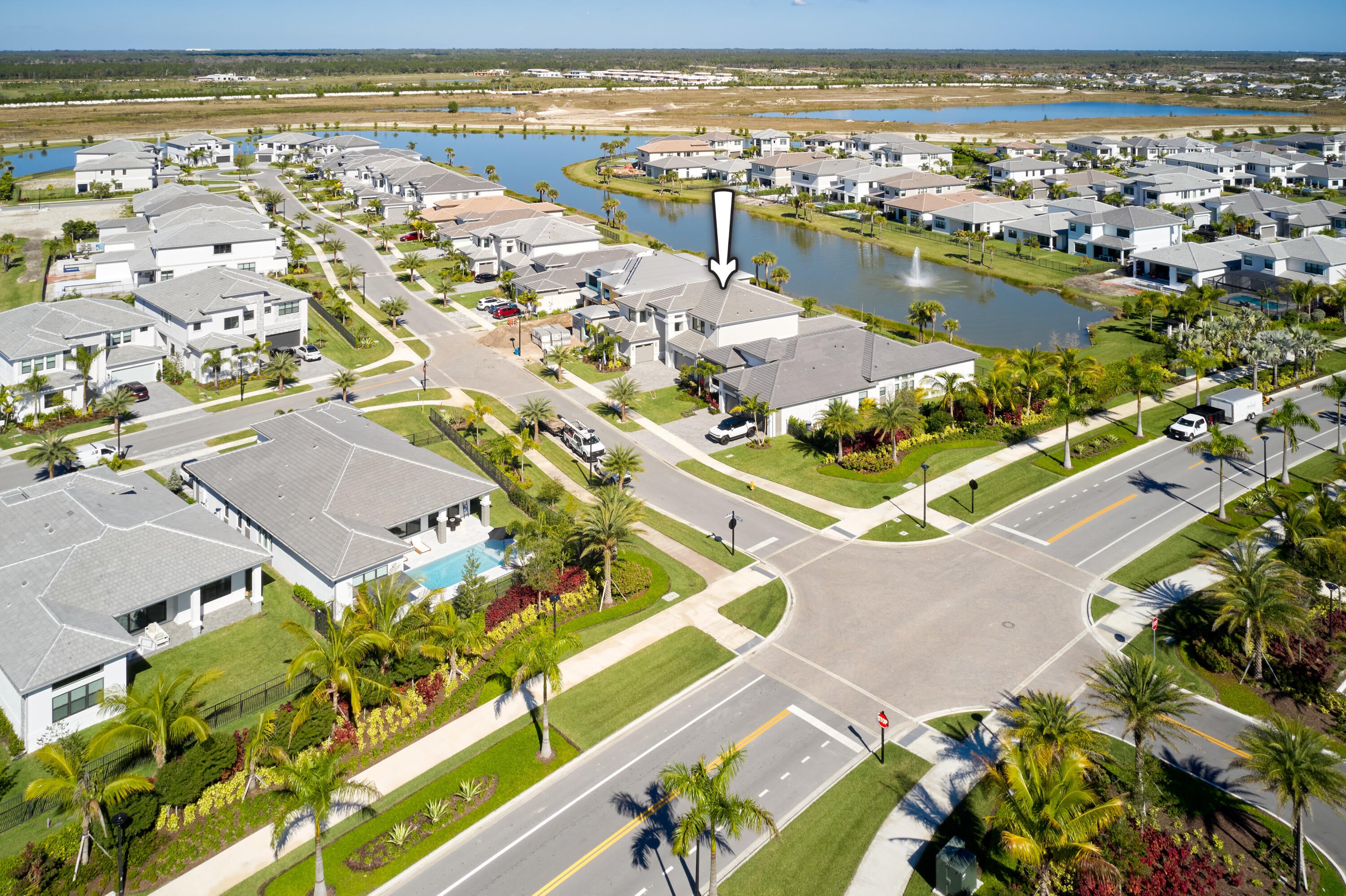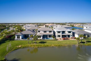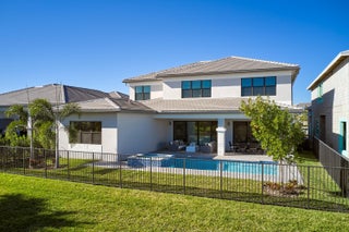 Modern Luxury in Apex at Avenir. Highly desirable Olympus model this 5 Bedrooms, 5.5 Baths, Den, Loft, Media Room, Split 3-car garage estate has all the features you need including a luxurious porcelain floor tile package in key areas, grand staircase, gourmet kitchen featuring upgraded cabinetry and sleek quartz countertops with a flat polished edge, complemented by a full backsplash. This culinary haven is equipped with a GE appliance package, including a gas cooktop, and boasts a spacious kitchen island with seating, making it perfect for both cooking and entertaining. The laundry room offers an upgraded cabinet package with quartz countertops, and a built-in laundry sink for added convenience.Standard manufacturer warranties on all appliances, the air conditioning compressor, and the air handler unit. For modern security and connectivity, the home comes equipped with an in-home wireless alarm system, featuring wireless magnet contacts on all operable windows and doors (excluding exterior garage doors), along with a 7" touchpad and a secondary auxiliary touchpad placed according to the purchaser's specifications. The garage includes 20 AMP dedicated receptacles for a future refrigerator, while a USB/C receptacle is conveniently located in both the kitchen and primary bedroom. An empty conduit from the electric panel to the garage is also in place for future EV charger installation. Exceptional Lifestyle and ideal proximity to all the best parts of Palm Beach County!