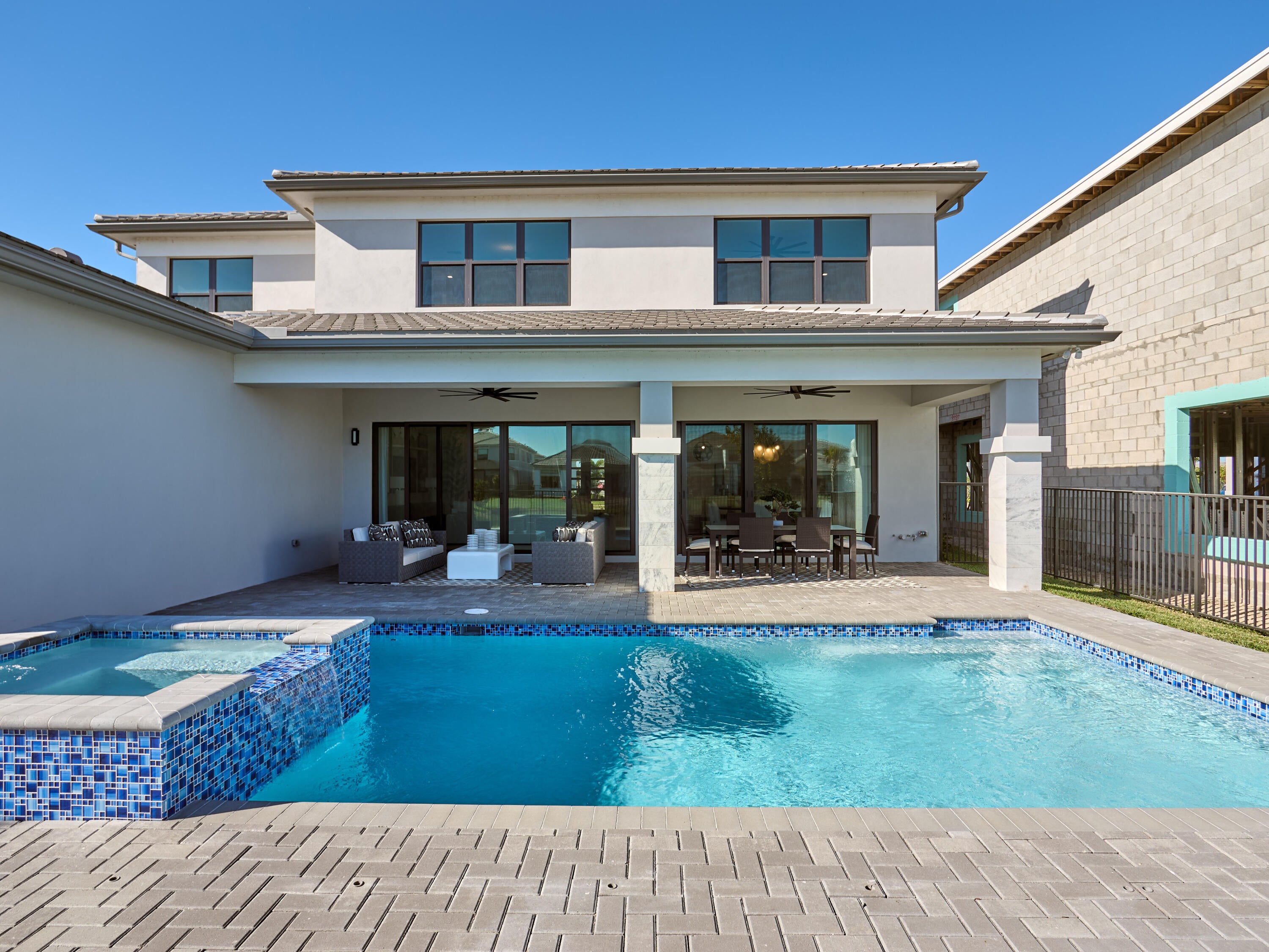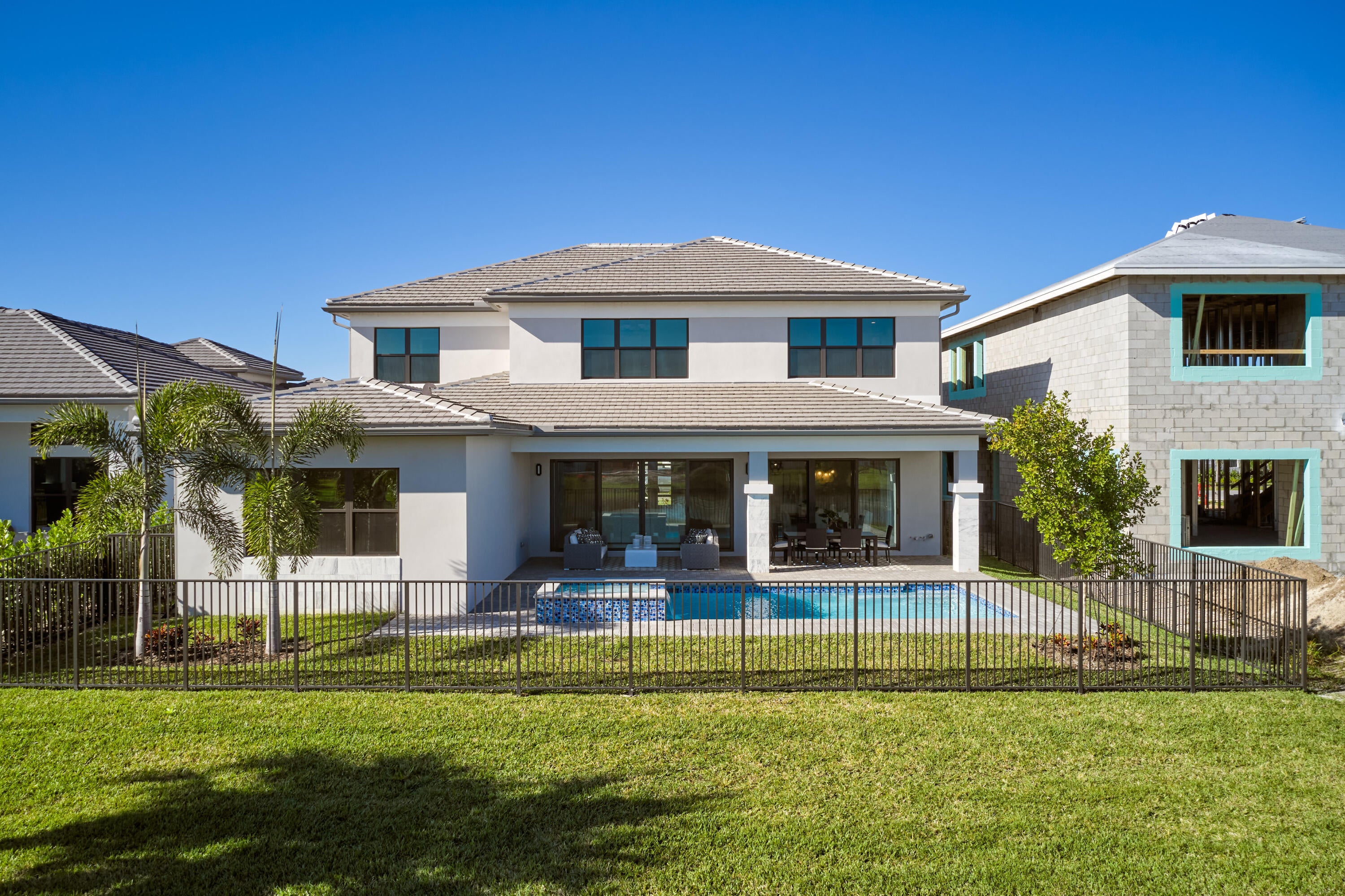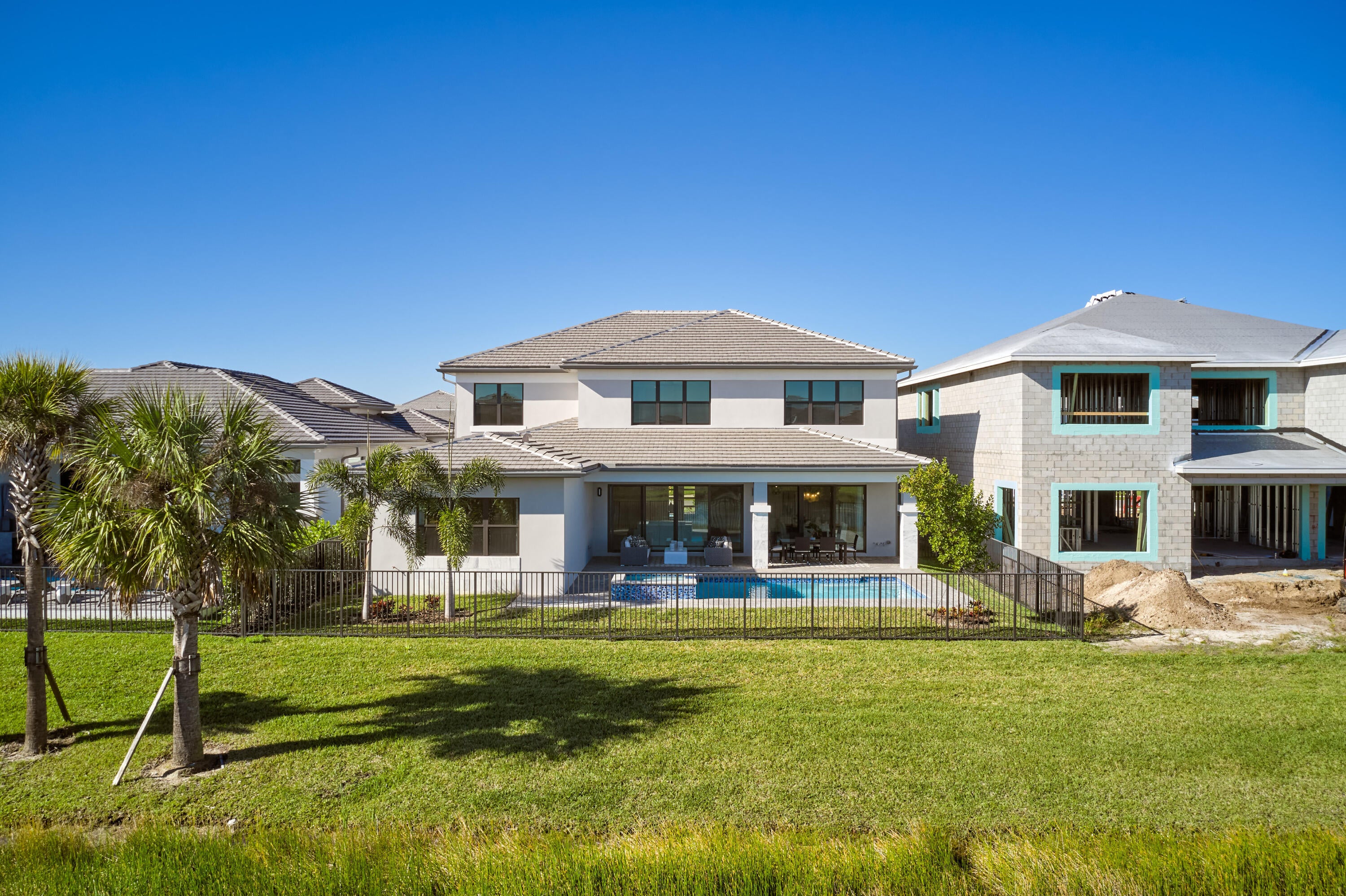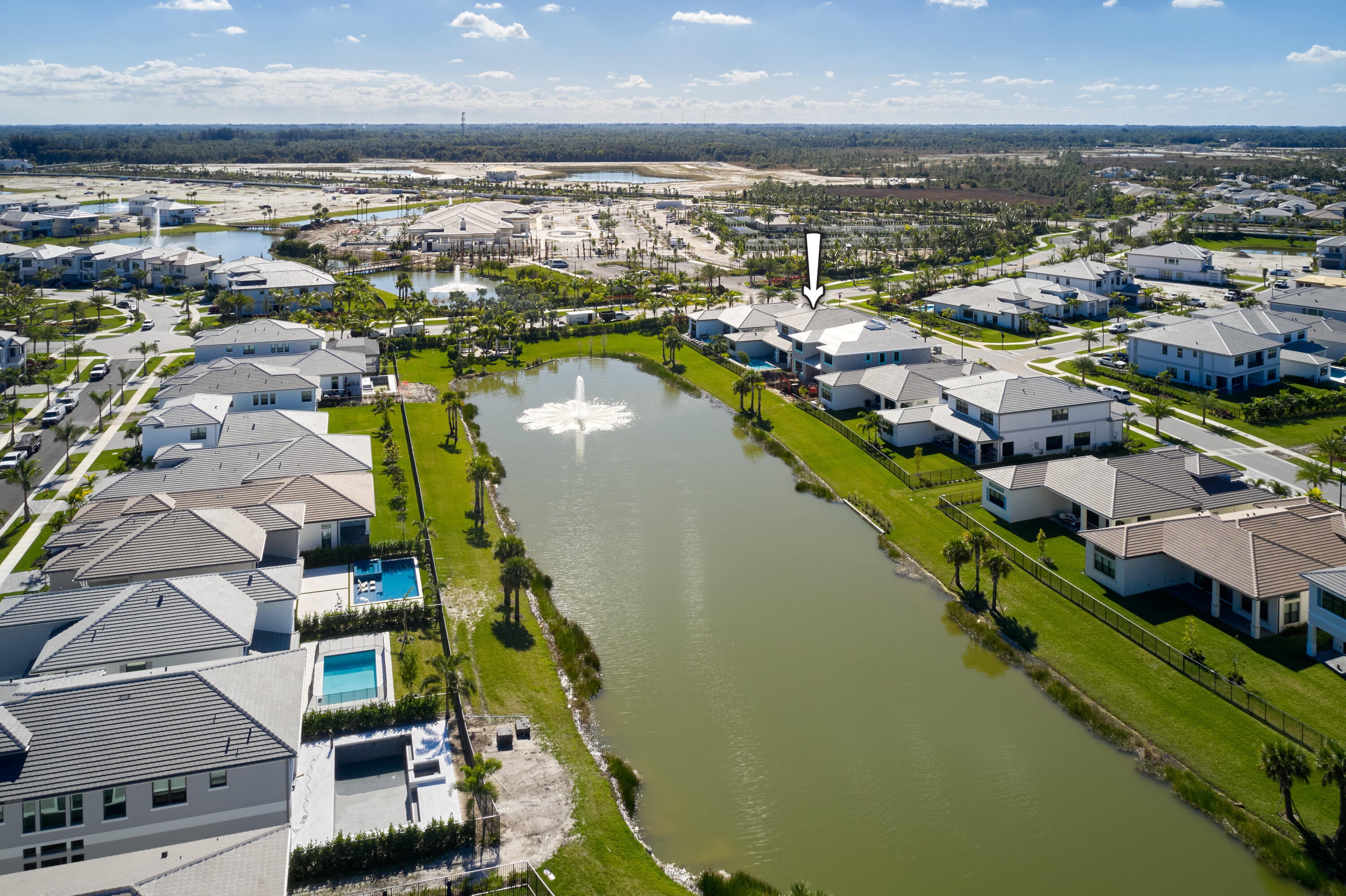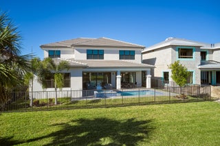 Modern Luxury in Apex at Avenir. Highly desirable Olympus model this 5 Bedrooms, 5.5 Baths, Den, Loft, Media Room, Split 3-car garage estate has all the features you need including a luxurious porcelain floor tile package in key areas, grand staircase, gourmet kitchen featuring upgraded cabinetry and sleek quartz countertops with a flat polished edge, complemented by a full backsplash. This culinary haven is equipped with a GE appliance package, including a gas cooktop, and boasts a spacious kitchen island with seating, making it perfect for both cooking and entertaining. The laundry room offers an upgraded cabinet package with quartz countertops, and a built-in laundry sink for added convenience.Standard manufacturer warranties on all appliances, the air conditioning compressor, and the air handler unit. For modern security and connectivity, the home comes equipped with an in-home wireless alarm system, featuring wireless magnet contacts on all operable windows and doors (excluding exterior garage doors), along with a 7" touchpad and a secondary auxiliary touchpad placed according to the purchaser's specifications. The garage includes 20 AMP dedicated receptacles for a future refrigerator, while a USB/C receptacle is conveniently located in both the kitchen and primary bedroom. An empty conduit from the electric panel to the garage is also in place for future EV charger installation. Exceptional Lifestyle and ideal proximity to all the best parts of Palm Beach County!