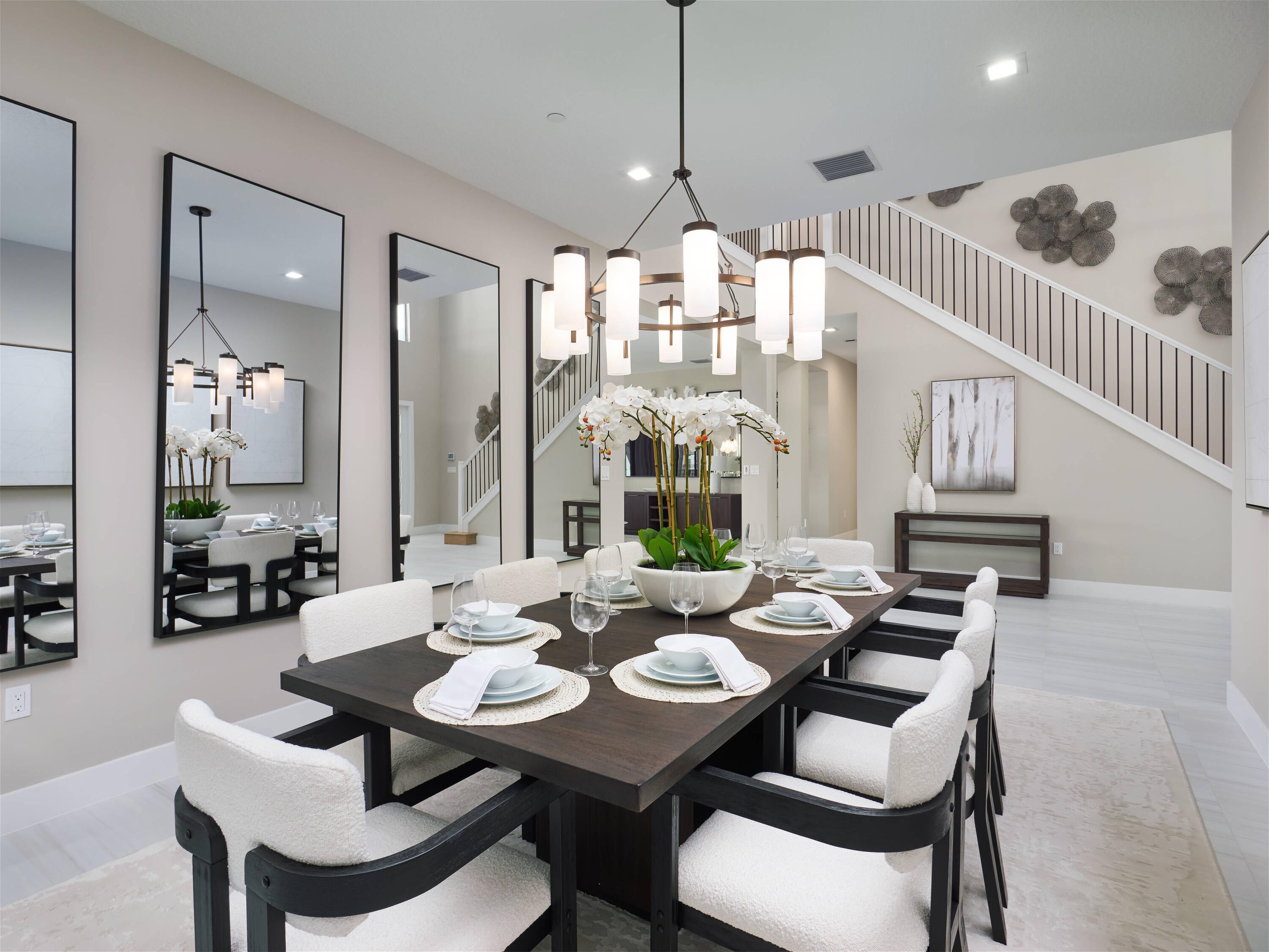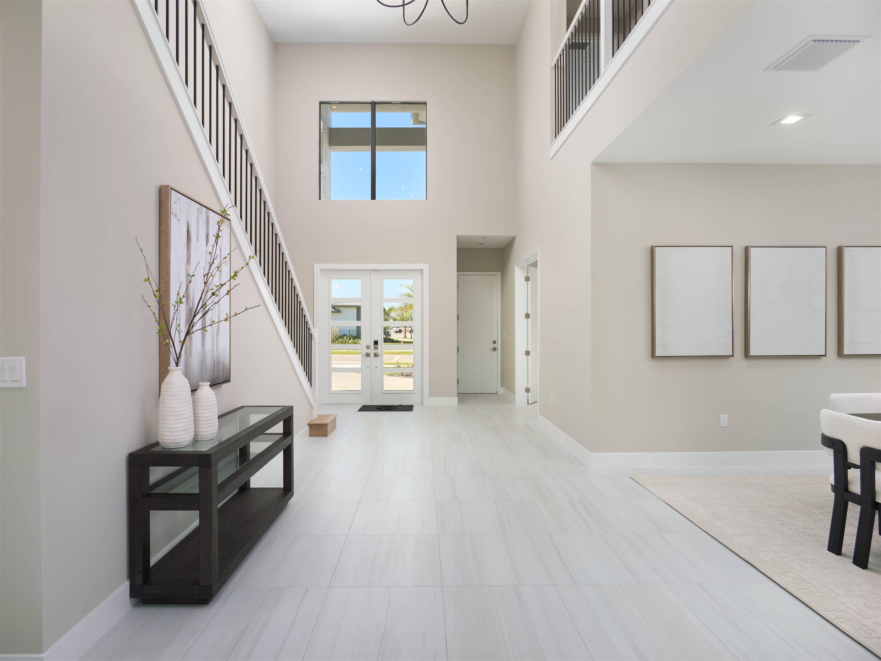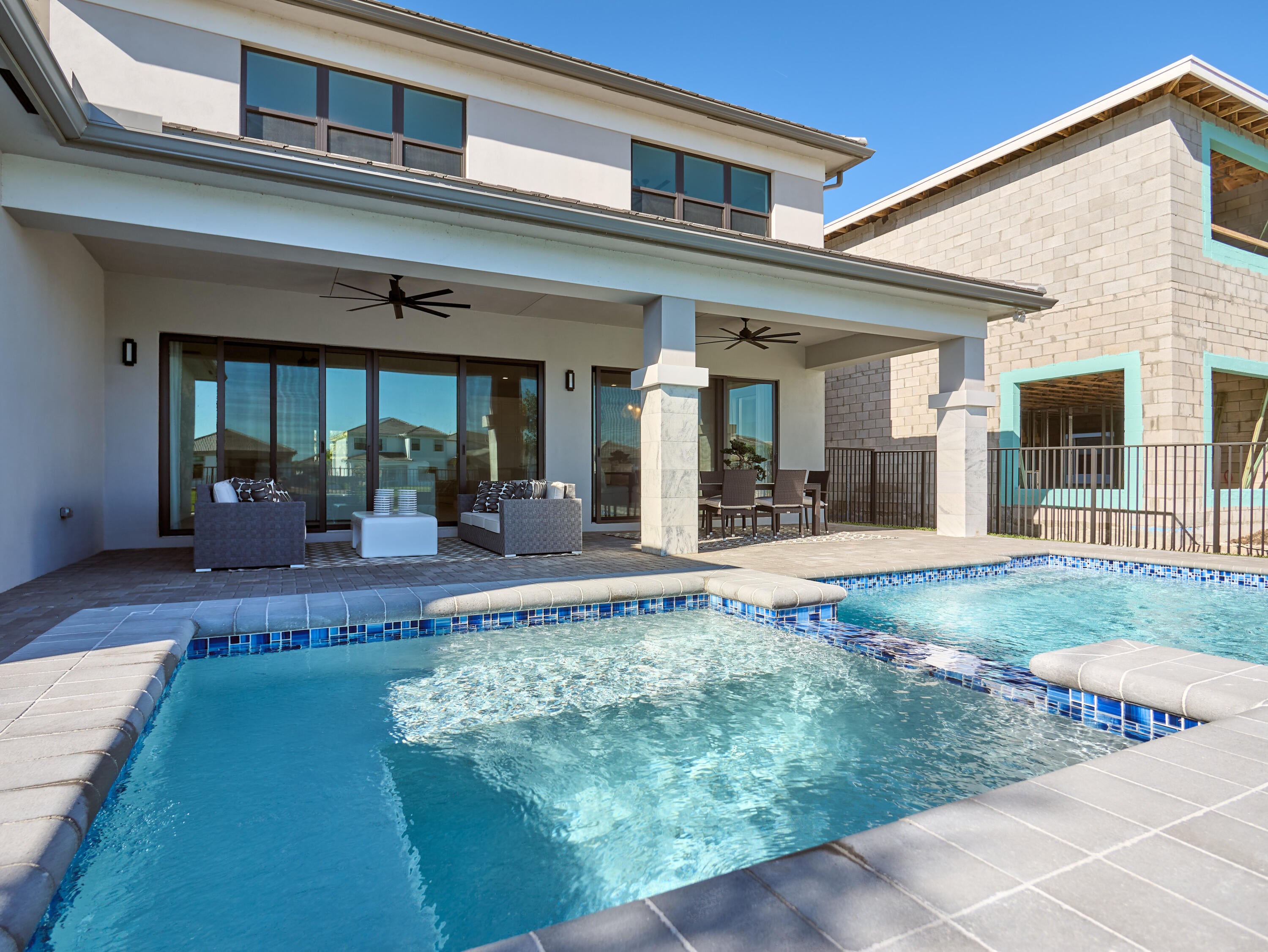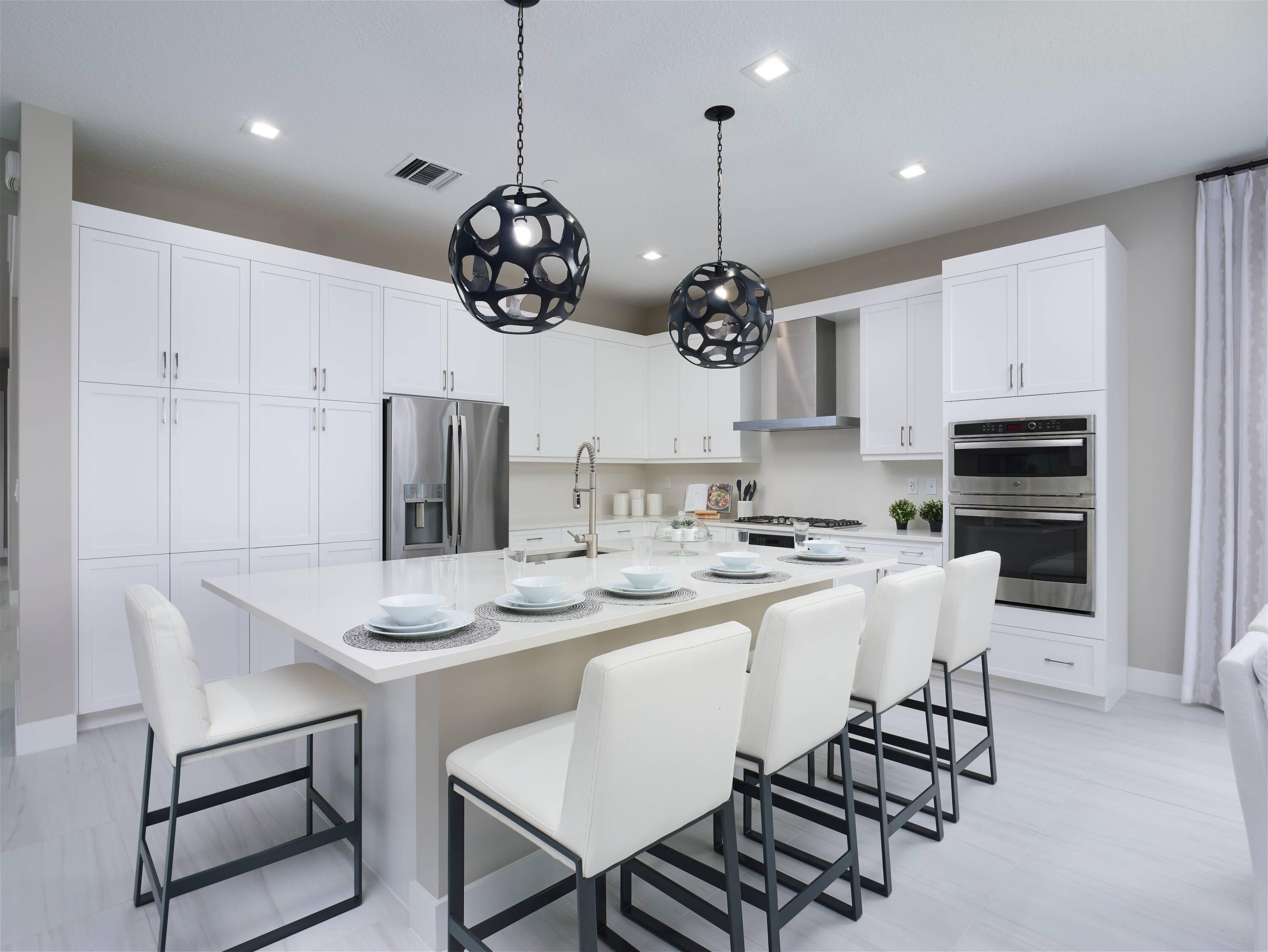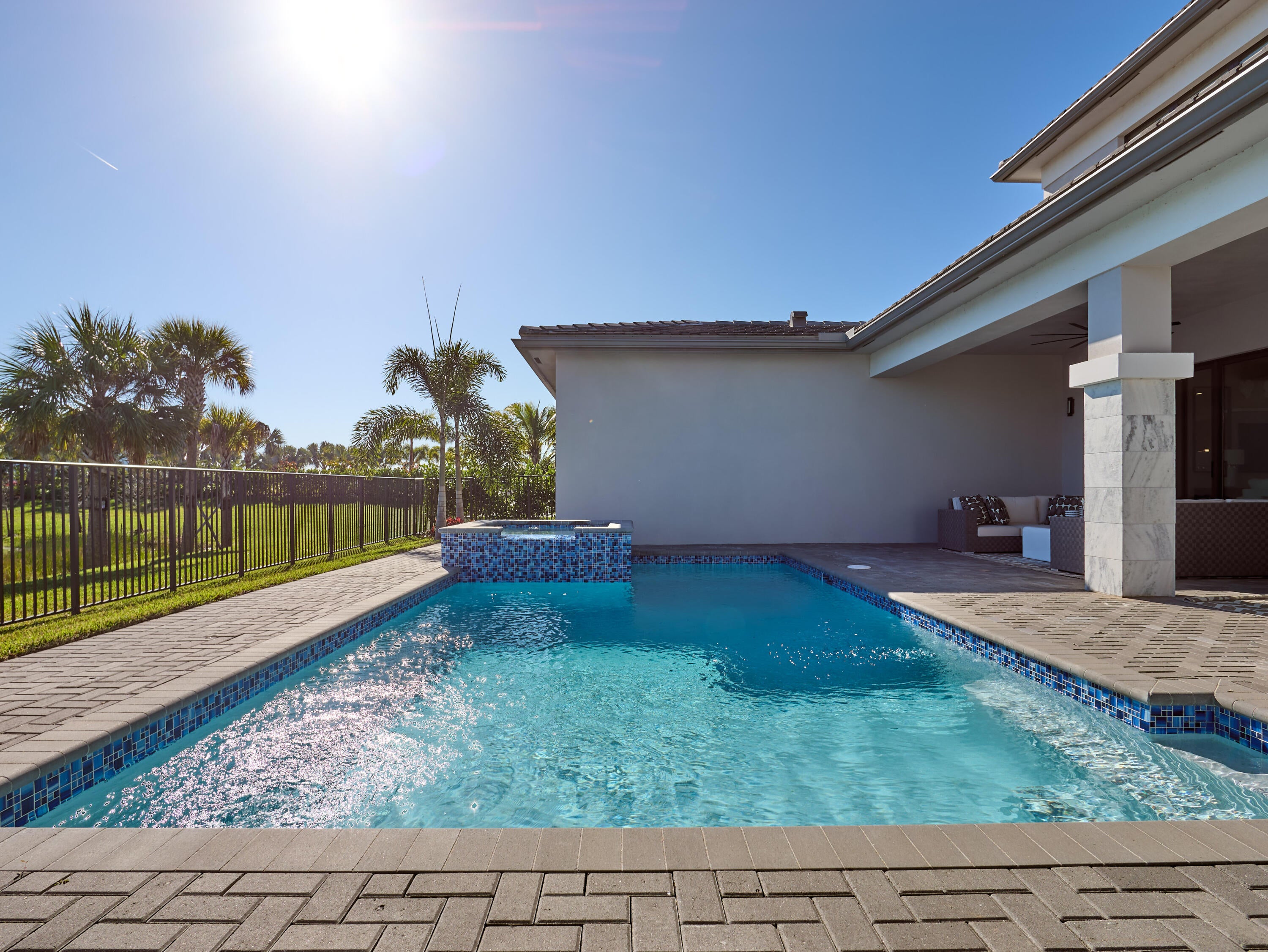 Modern Luxury in Apex at Avenir. Highly desirable Olympus model this 5 Bedrooms, 5.5 Baths, Den, Loft, Media Room, Split 3-car garage estate has all the features you need including a luxurious porcelain floor tile package in key areas, grand staircase, gourmet kitchen featuring upgraded cabinetry and sleek quartz countertops with a flat polished edge, complemented by a full backsplash. This culinary haven is equipped with a GE appliance package, including a gas cooktop, and boasts a spacious kitchen island with seating, making it perfect for both cooking and entertaining. The laundry room offers an upgraded cabinet package with quartz countertops, and a built-in laundry sink for added convenience.Standard manufacturer warranties on all appliances, the air conditioning compressor, and the air handler unit. For modern security and connectivity, the home comes equipped with an in-home wireless alarm system, featuring wireless magnet contacts on all operable windows and doors (excluding exterior garage doors), along with a 7" touchpad and a secondary auxiliary touchpad placed according to the purchaser's specifications. The garage includes 20 AMP dedicated receptacles for a future refrigerator, while a USB/C receptacle is conveniently located in both the kitchen and primary bedroom. An empty conduit from the electric panel to the garage is also in place for future EV charger installation. Exceptional Lifestyle and ideal proximity to all the best parts of Palm Beach County!