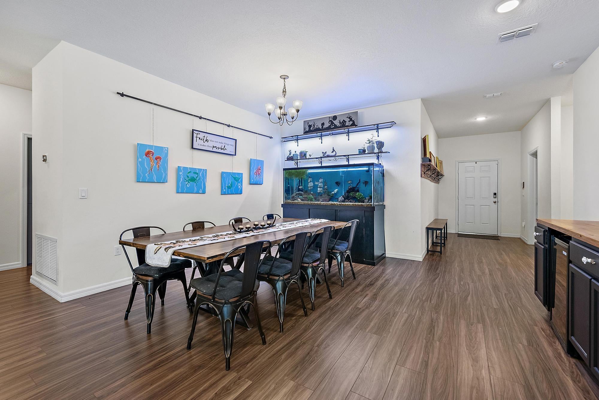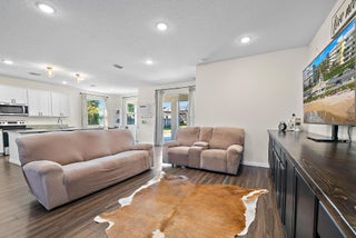 This beautiful two and a half year old home, is nestled on a sprawling corner lot and offers both luxury and functionality. Boasting four spacious bedrooms, three full bathrooms and a versatile enclosed office that could easily serve as a fifth bedroom, this property is ideal for growing families or multi-generational living. The three-car garage provides ample space for vehicles, a workshop and additional storage. Open concept living complete with modern kitchen, large island, a cozy breakfast nook, a generous living area, and a dining room that is perfect for hosting. Outdoor entertaining is effortless on the extended 22' x 20' backpatio, shaded by elegant pergolas and offering plenty of room for barbecues and outdoor dining. This home is packed with upgrades, including a whole-home water softener and filtration system, solar panels*, ADT security, a Nest thermostat and screened in front porch. Custom-built shelving in the pantry, laundry room, and garage helps keep everything organized, while upgraded 42" kitchen and bathroom cabinets and life-proof vinyl flooring throughout the main living areas add both style and durability. The lush fruit tree grove features mango, citrus, avocado, banana and pineapple plants is just a few weeks away from harvest. On the opposite side of the property, a blank canvas awaits your vision, with ample space for a play set, pool or outdoor games. Just two and a half years old, this meticulously kept, expansive and upgraded home is priced to sell. Sellers will offer $$ for interior repainting. Washer & dryer do not convey. *Buyer to take over solar loan or add payoff amount to mortgage financing.