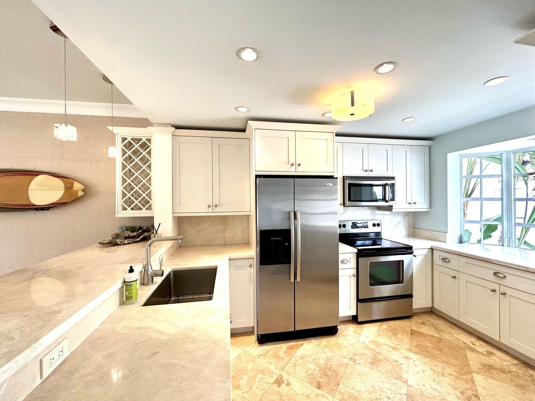 Rarely available, this beautifully remodeled townhouse. Is situated directly on the intracoastal waterway on the island, just blocks to the beach, shops, restaurants and bars. Perfect for a pied-a-terre, corporate retreat, beach cabana or retirement home. The townhouse boasts two en-suites, a downstairs power room, a garage, courtyard, a new AC, a tankless hot water heater, stone flooring throughout, a stainless steel kitchen, indoor/outdoor sound systems, an outdoor shower, a full-size washer/dryer and large primary bath with a jacuzzi tub, marble and dual sinks. Enjoy stunning views of never ending boat parades and the nature preserve from the comfort of your couch, kitchen and bedroom. This very low HOA property sits in a small four-unit complex and includes a deed for a deep waterdock and lift. It is conveniently located between Boca and Hillsboro inlet. You must see this spectacular location!!!